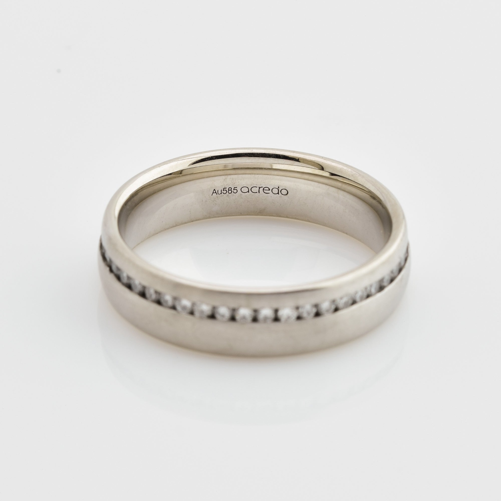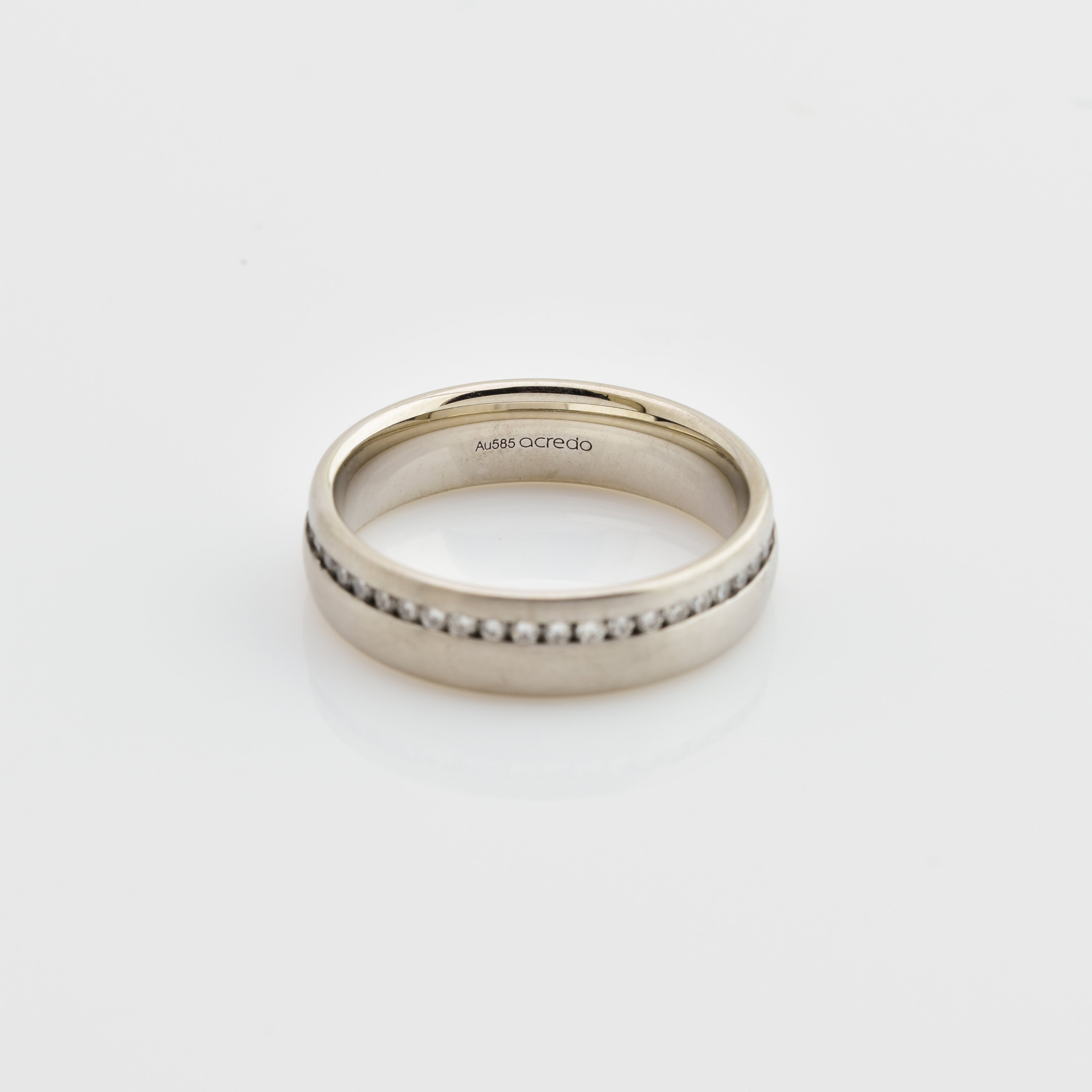 Bei dem Schmuckstück handelt es sich um einen Ring der Marke Acredo aus 585 Weißgold mit 45 Diamanten von zusammen ca. 0,225 ct in der Qualität Weiß mit kleinen Einschlüssen (W/si).