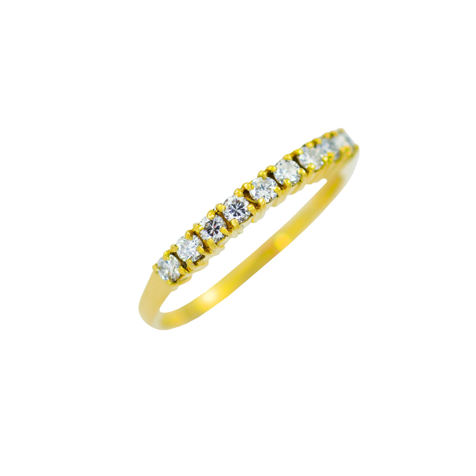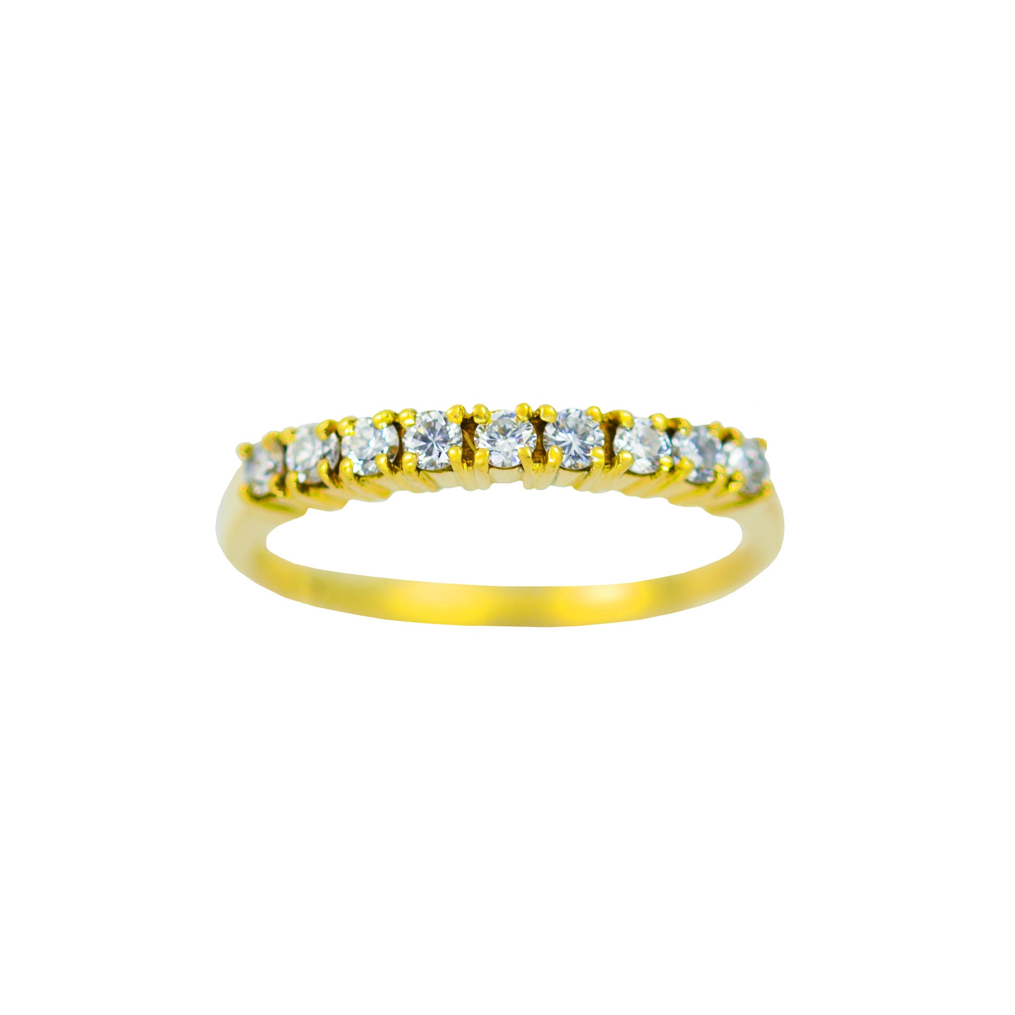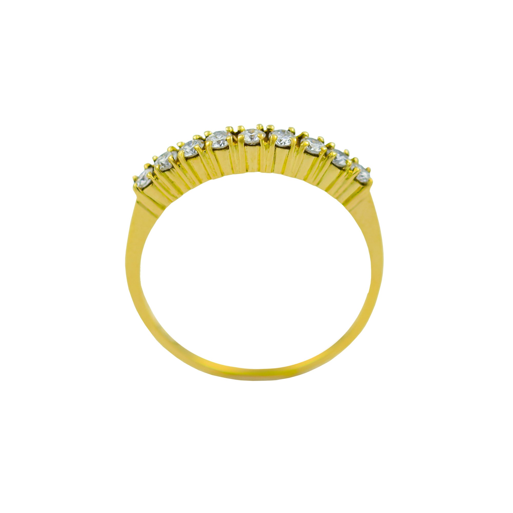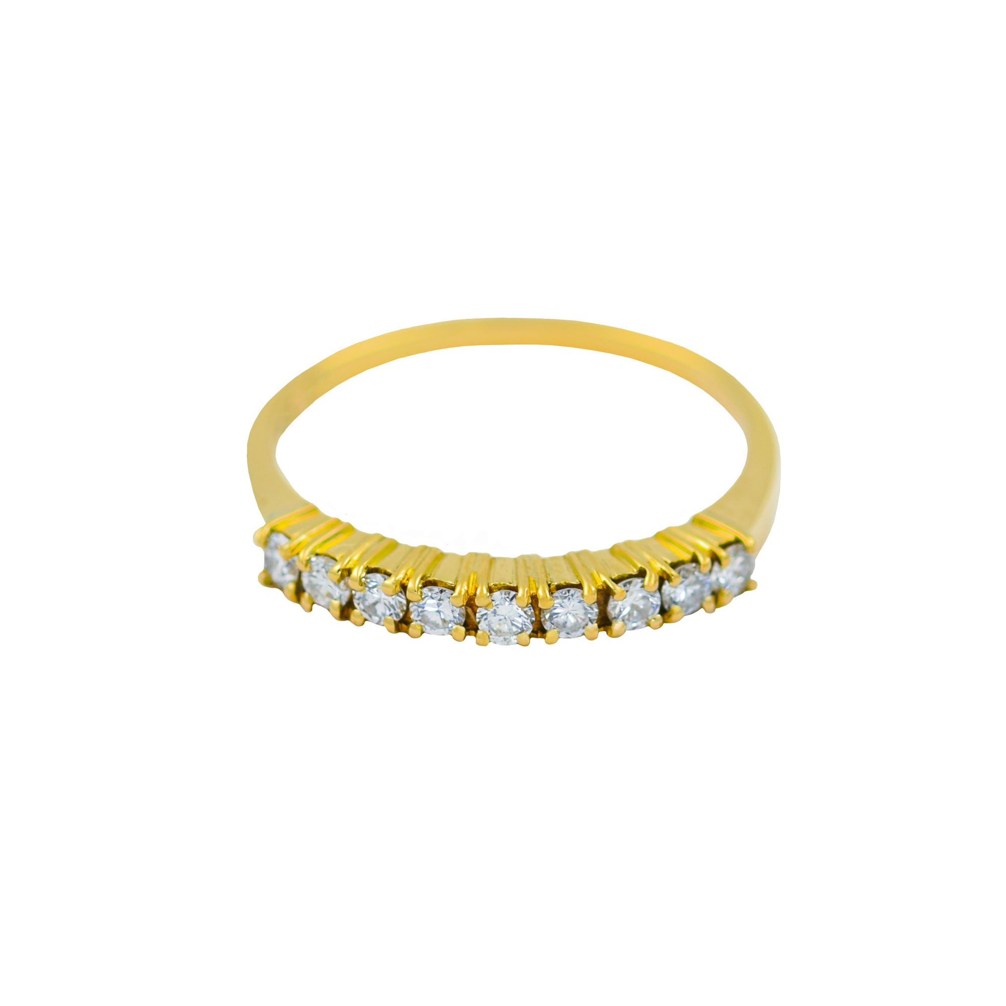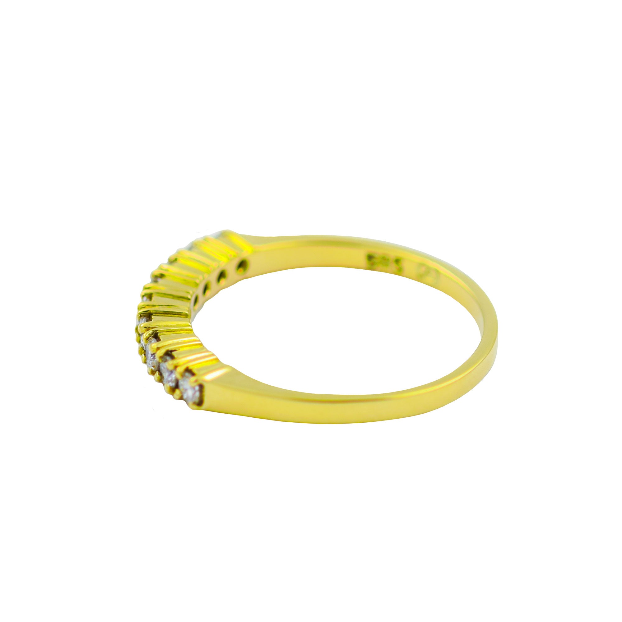Bei dem Schmuckstück handelt es sich um einen Allianzring aus 585 Gelbgold mit neun Brillanten von zusammen ca. 0,27 ct in der Qualität Weiß mit kleinen Einschlüssen (W/si).