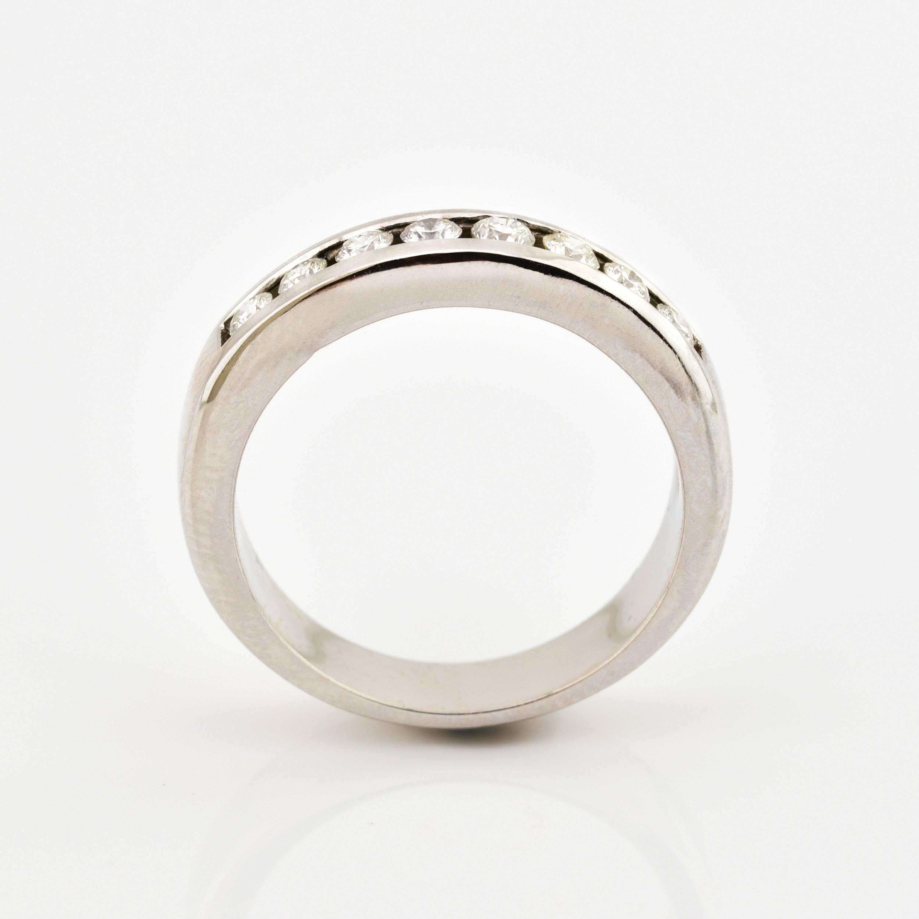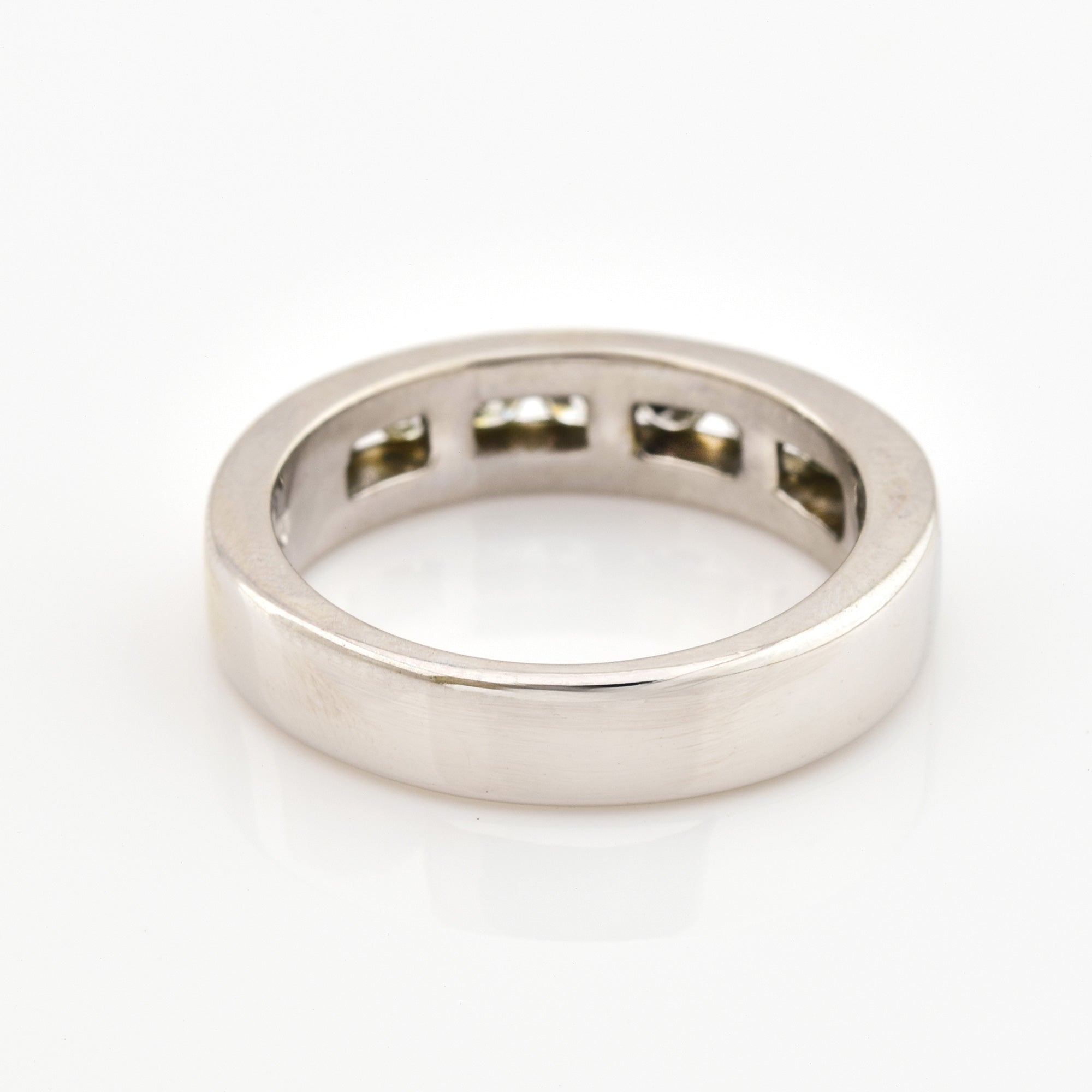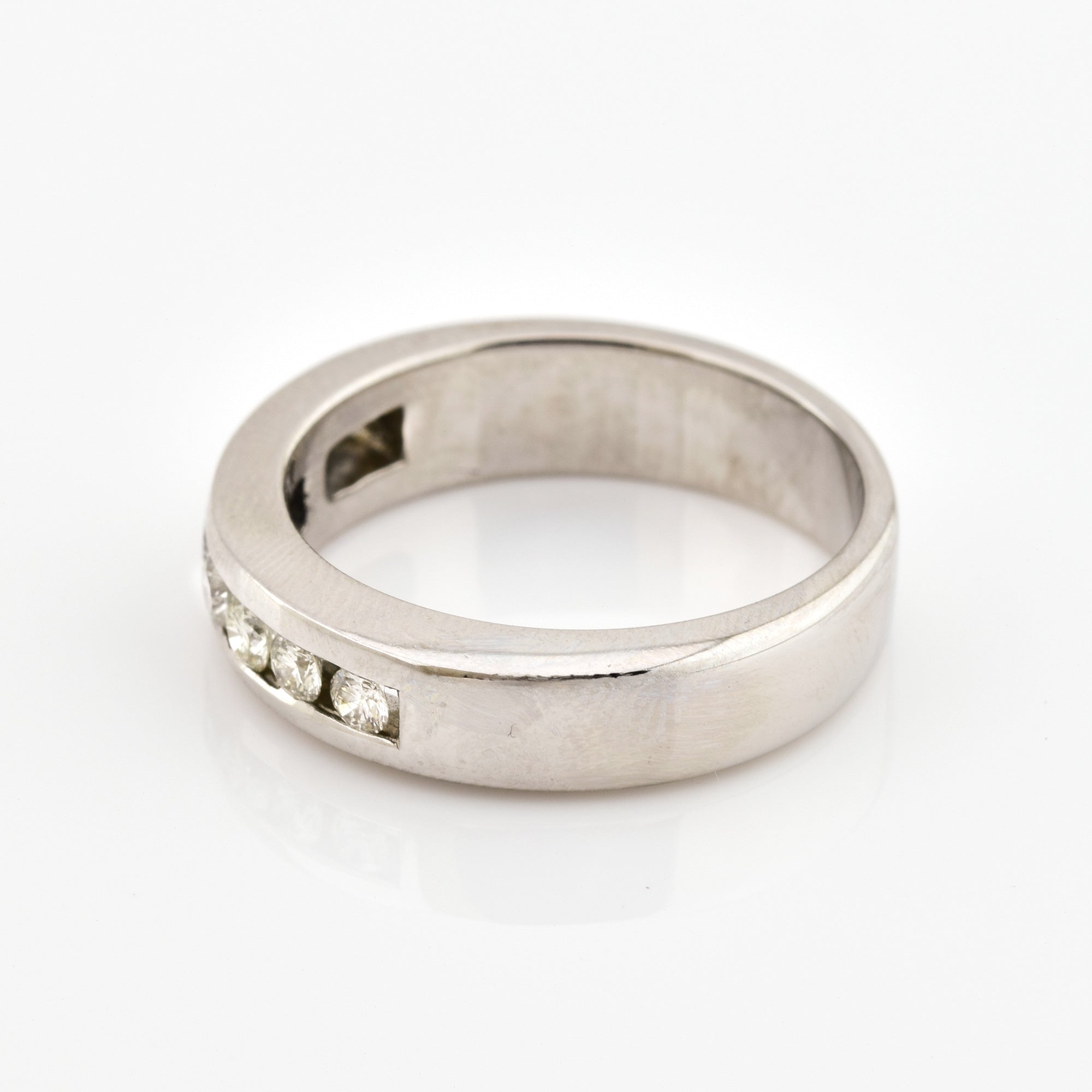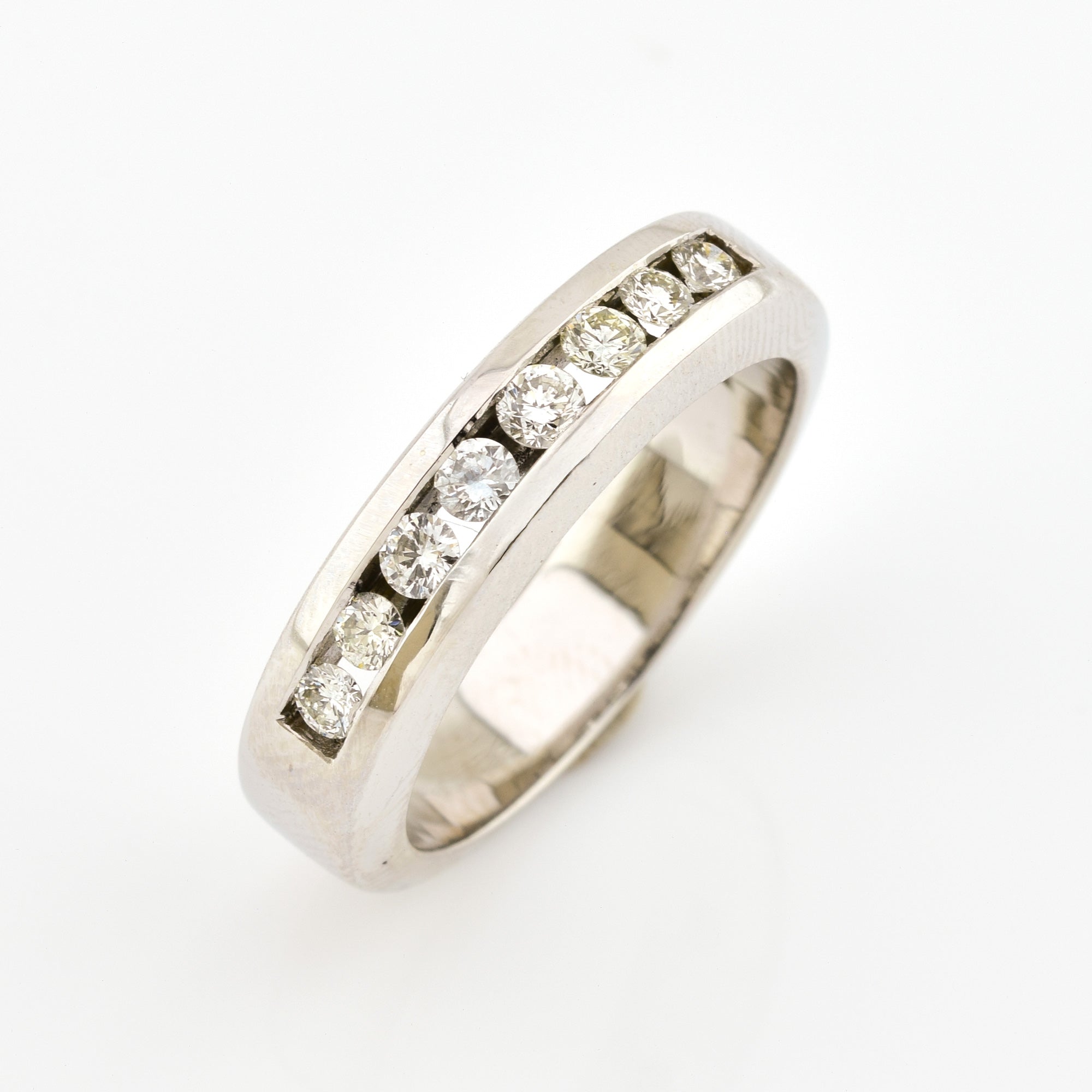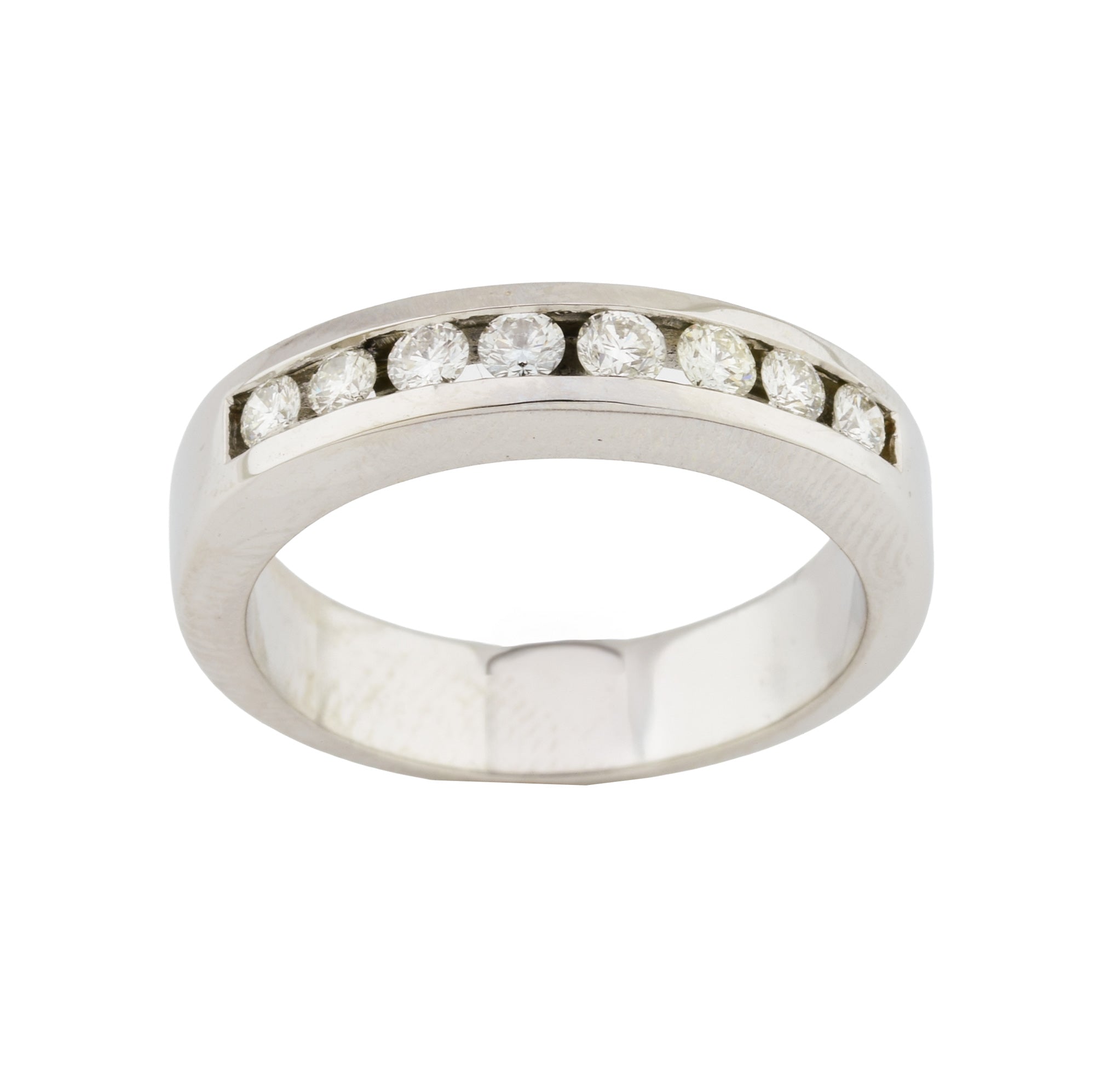 Bei dem Schmuckstück handelt es sich um einen Allianzring aus 585 Weißgold mit acht Brillanten von zusammen ca. 0,4 ct in der Qualität Weiß mit sehr, sehr kleinen Einschlüssen (W/vvs).