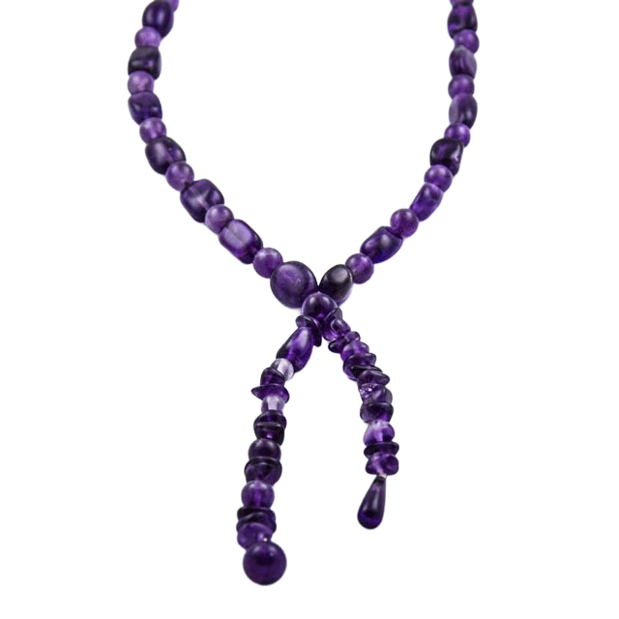 Bei dem Schmuckstück handelt es sich um eine Amethystkette. Das Schmuckstück hat eine Gesamtlänge von 75 cm.