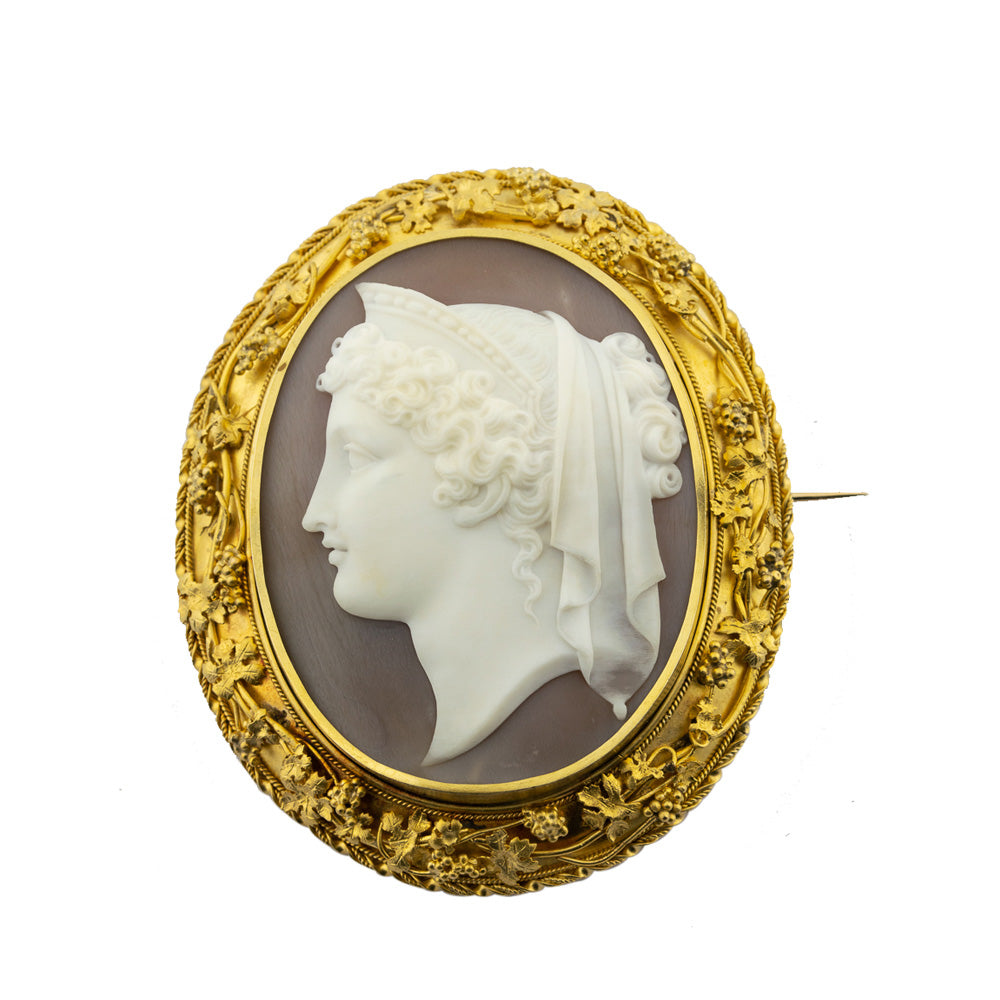 Historismus Brosche aus Gelbgold mit Kamee/Gemme