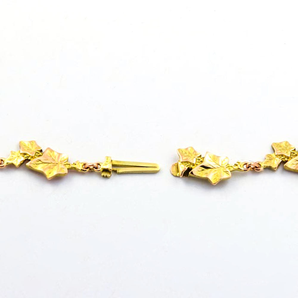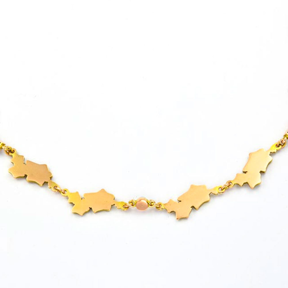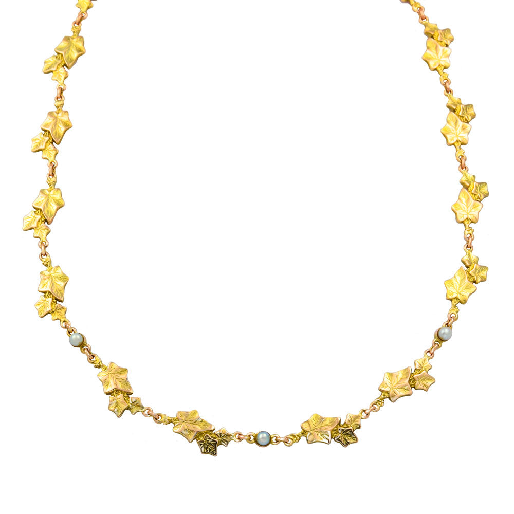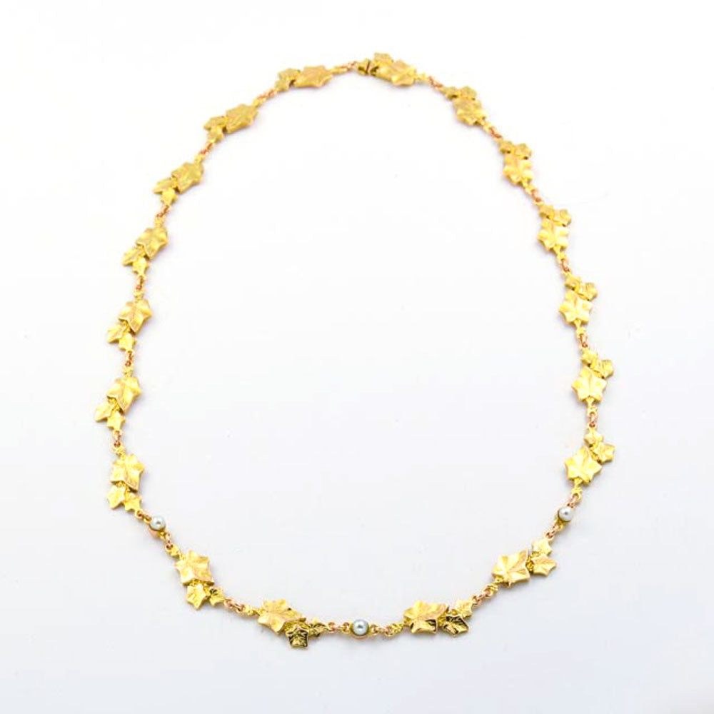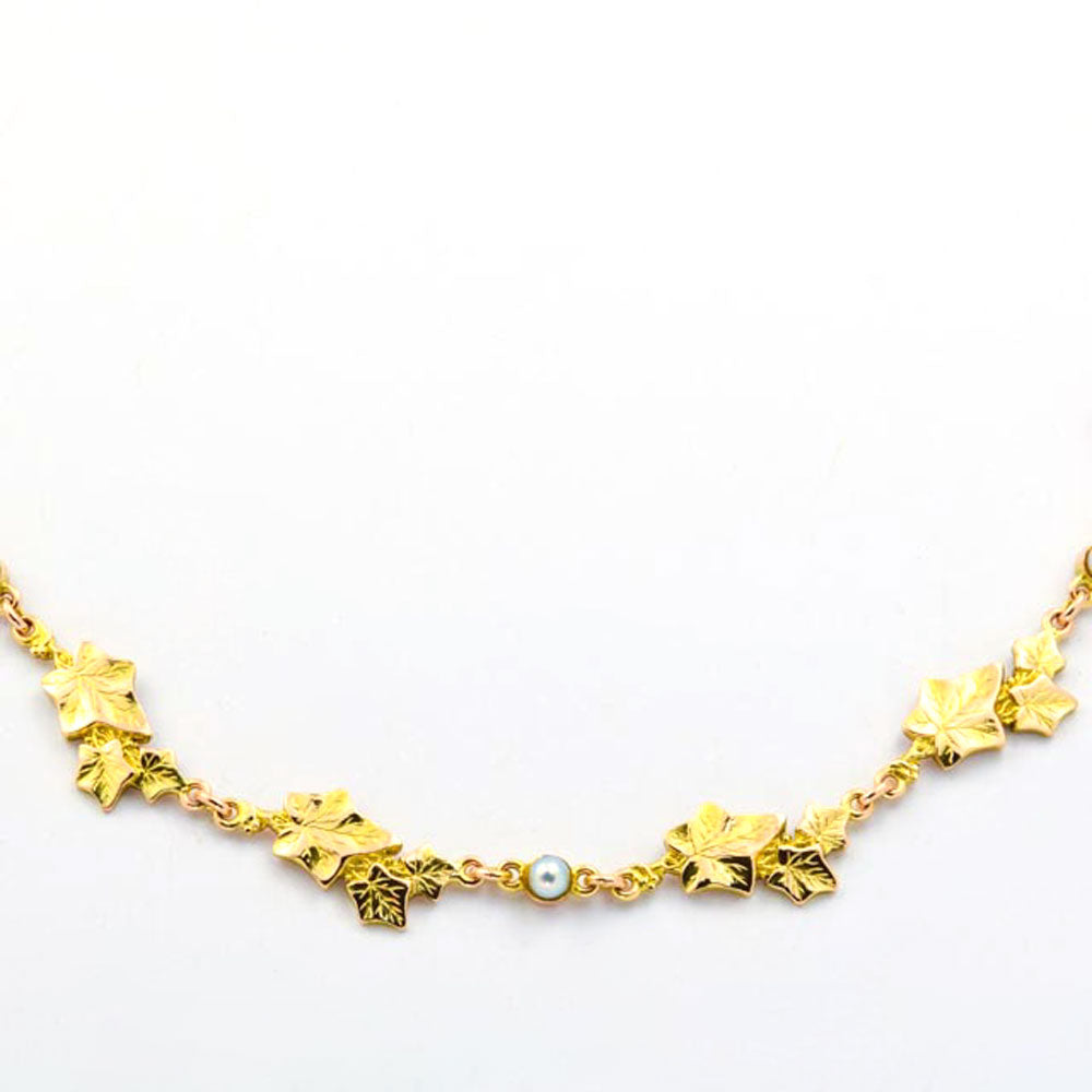 Antike Halskette Weinblätter aus Gelbgold mit Perle