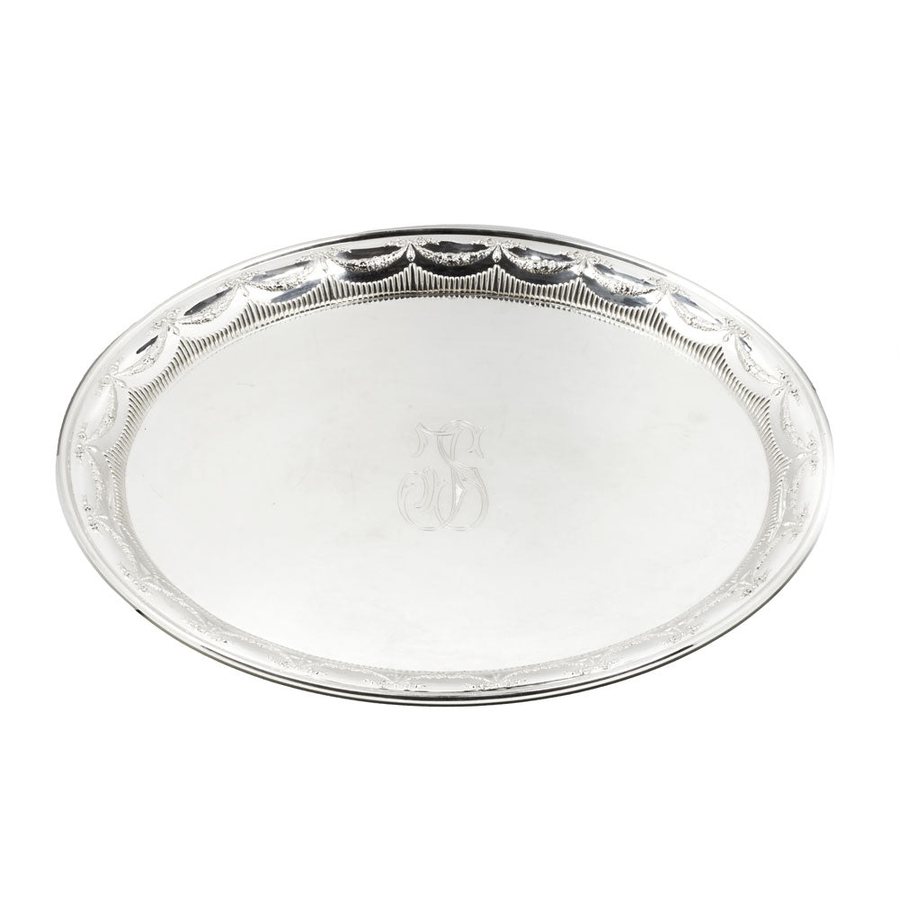 Historismus Tablett Schleifen aus Silber