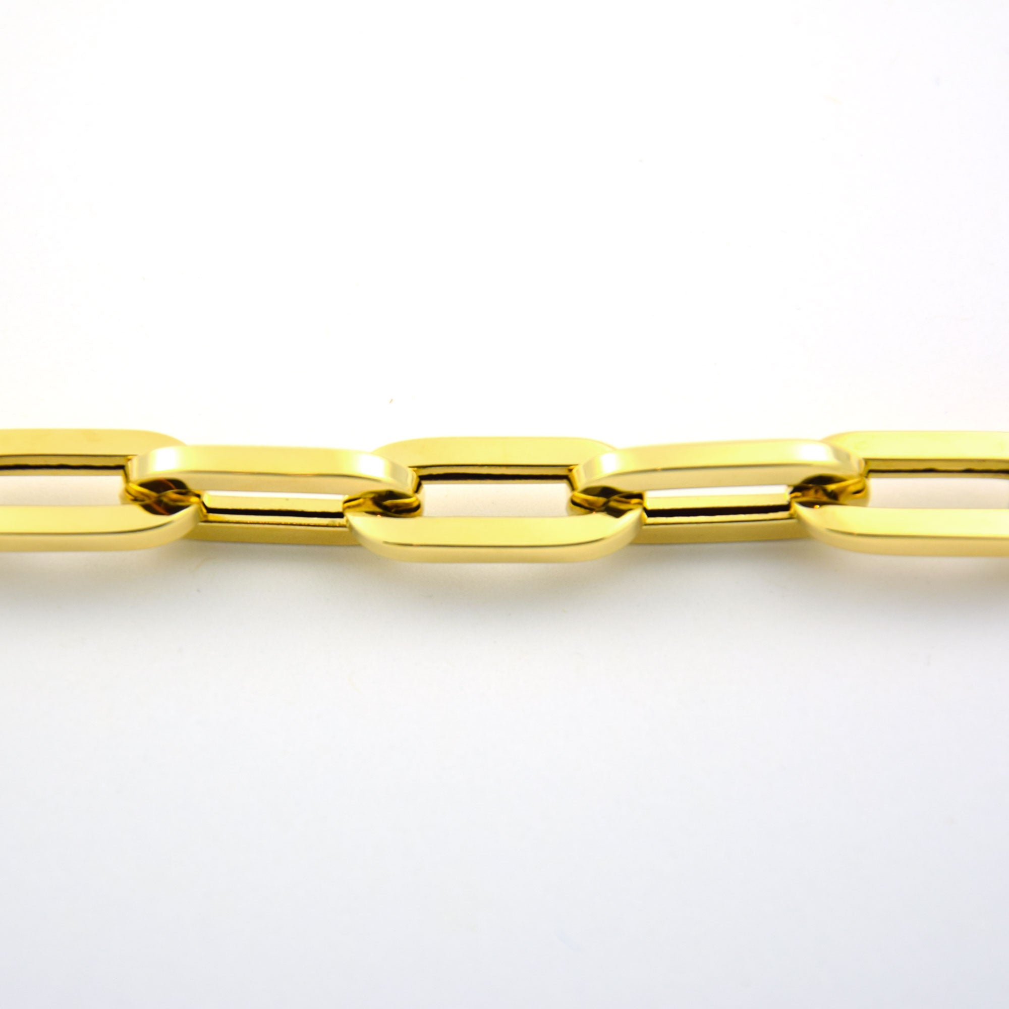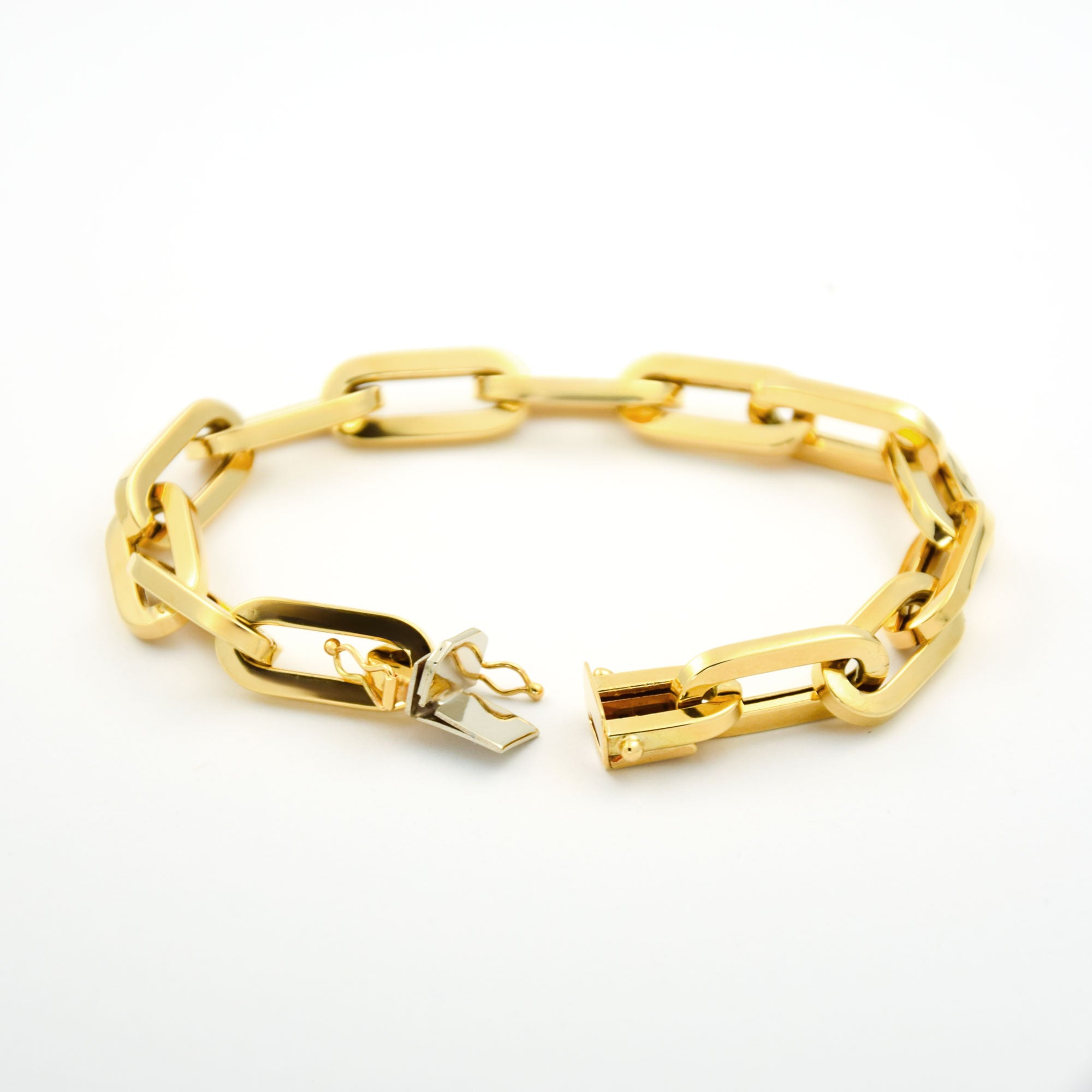 Bei dem Schmuckstück handelt es sich um ein Ankerarmband aus 585 Gelbgold. Das Schmuckstück hat eine Gesamtlänge von 21 cm.