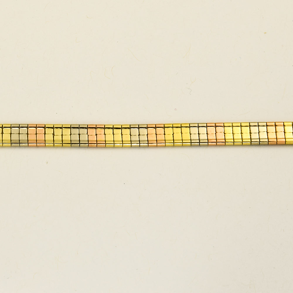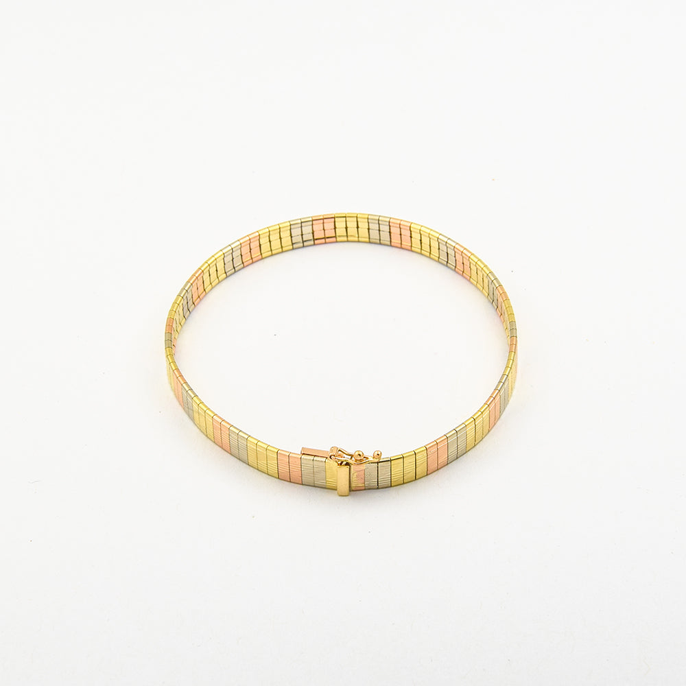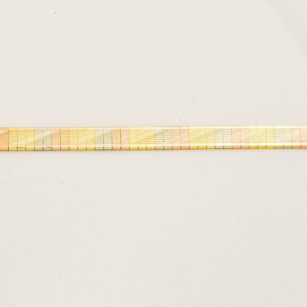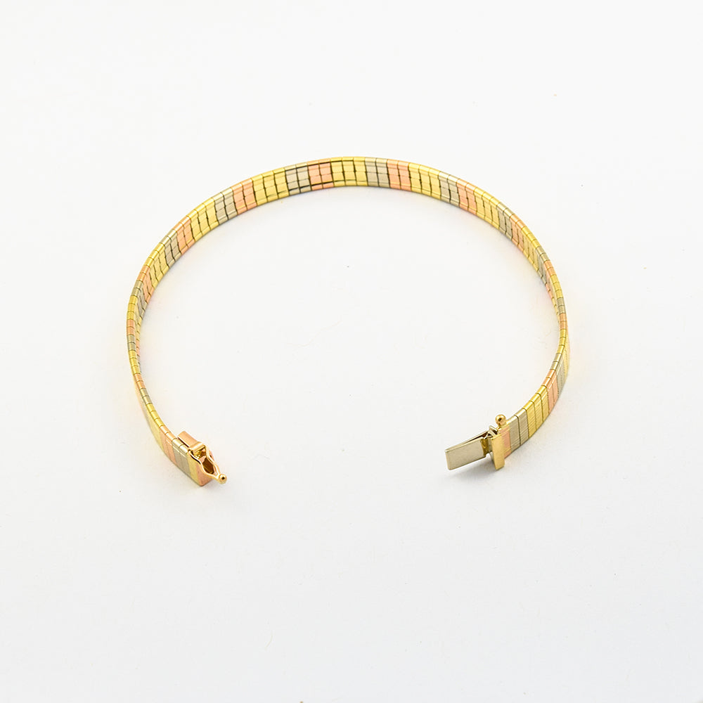 Bei dem Schmuckstück handelt es sich um ein Armband aus 585 Gelb-, Rot- und Weißgold. Das Schmuckstück hat eine Gesamtlänge von 19,5 cm.
