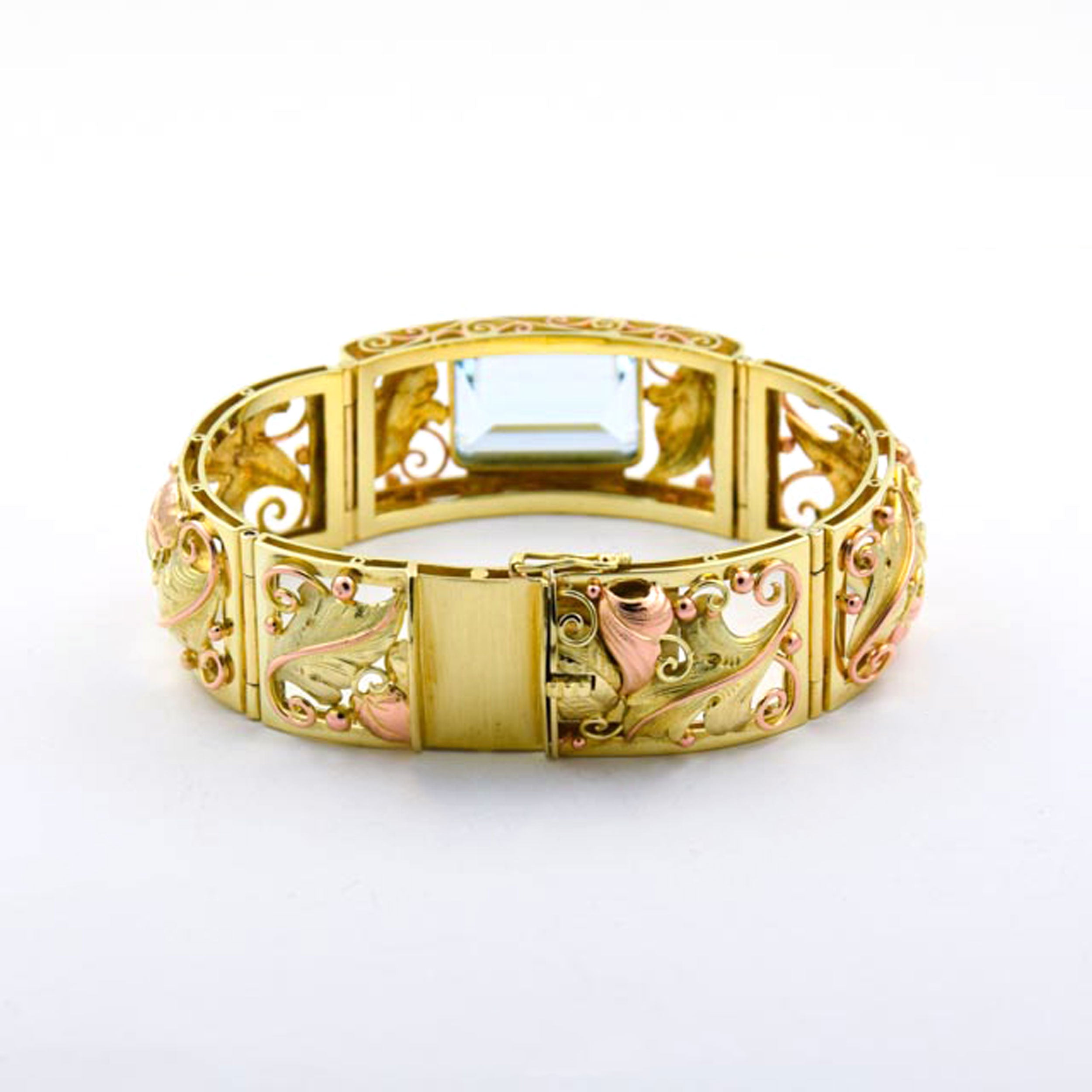 Armband aus Gelb- und Roségold mit Aquamarin, Handarbeit
