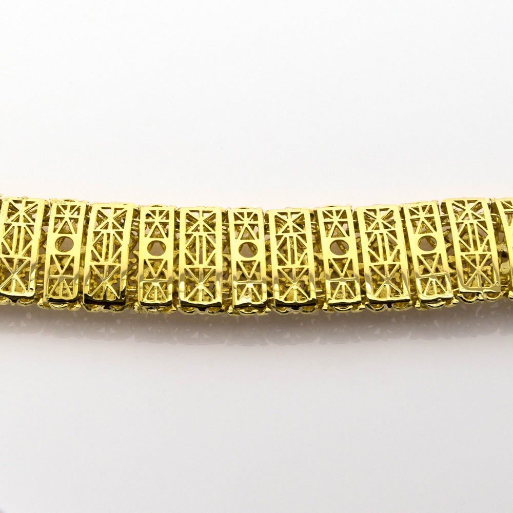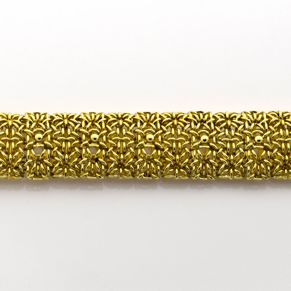 Bei dem Schmuckstück handelt es sich um ein in Handarbeit gefertigtes Armband aus 585 Gelb- und Weißgold. Das Schmuckstück hat eine Gesamtlänge von 20 cm.