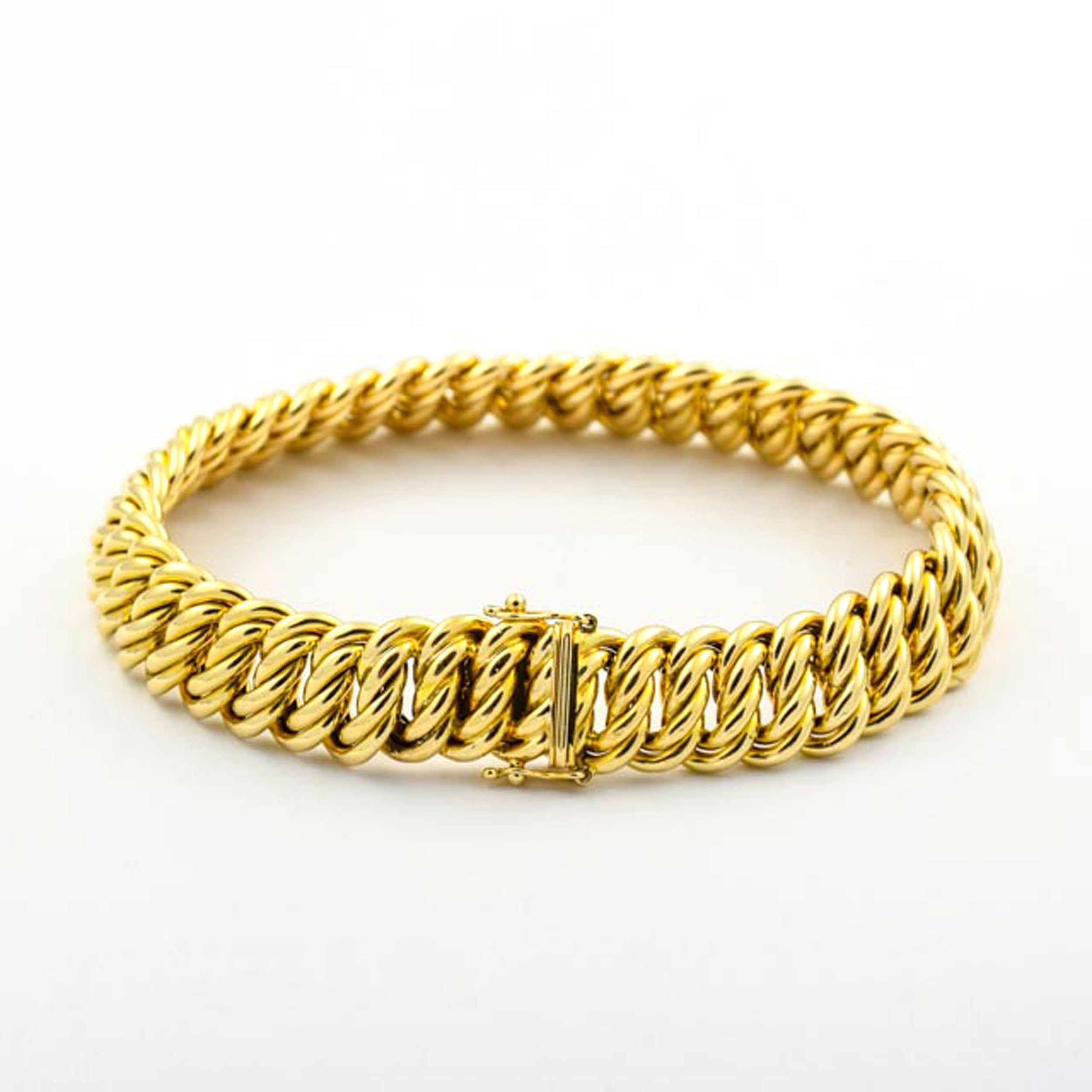 Bei dem Schmuckstück handelt es sich um ein Armband aus 585 Gelbgold. Das Schmuckstück hat eine Gesamtlänge von 20 cm.