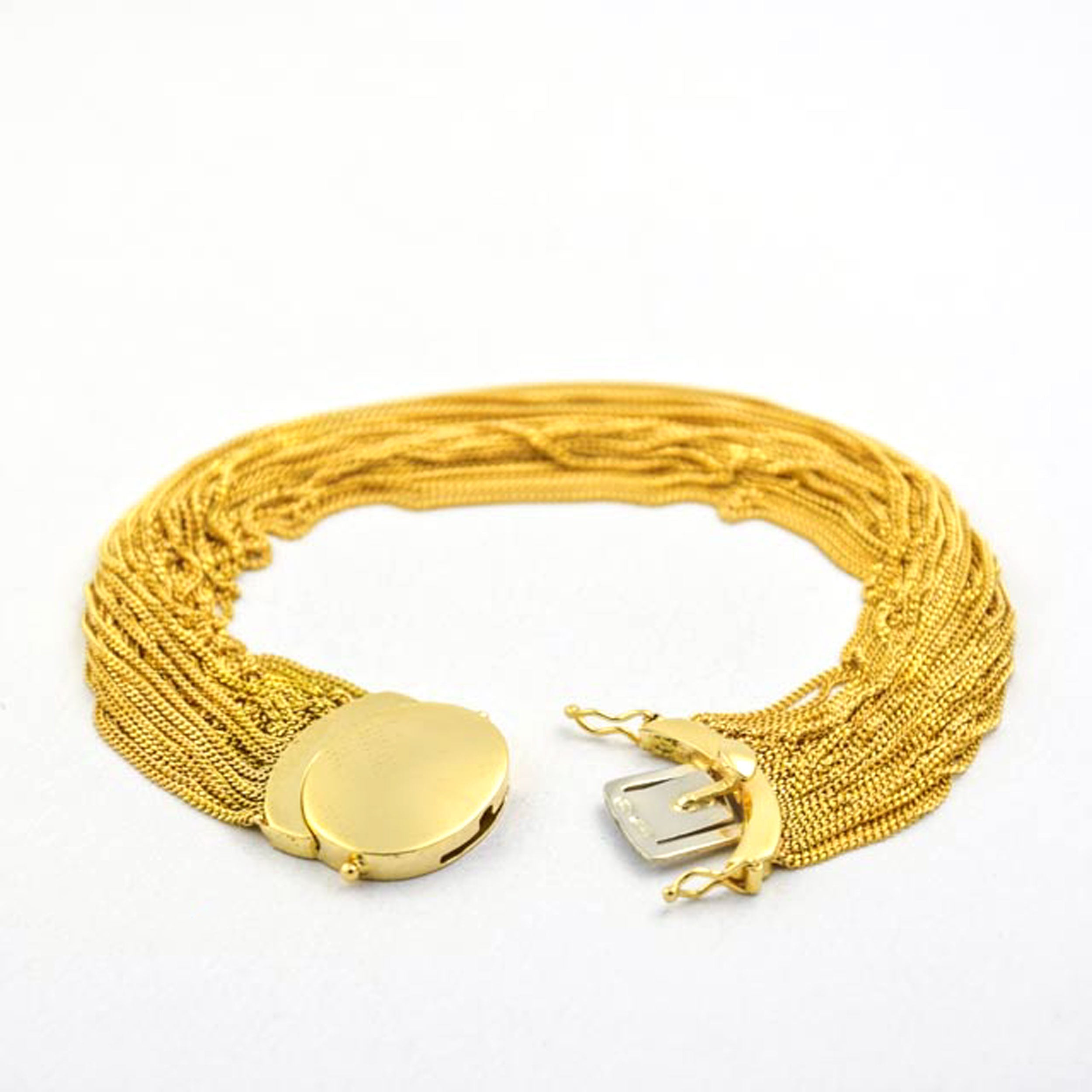 Bei dem Schmuckstück handelt es sich um ein italienisches in Handarbeit gefertigtes Armband aus 750 Gelbgold. Das Schmuckstück hat eine Gesamtlänge von 19 cm.
