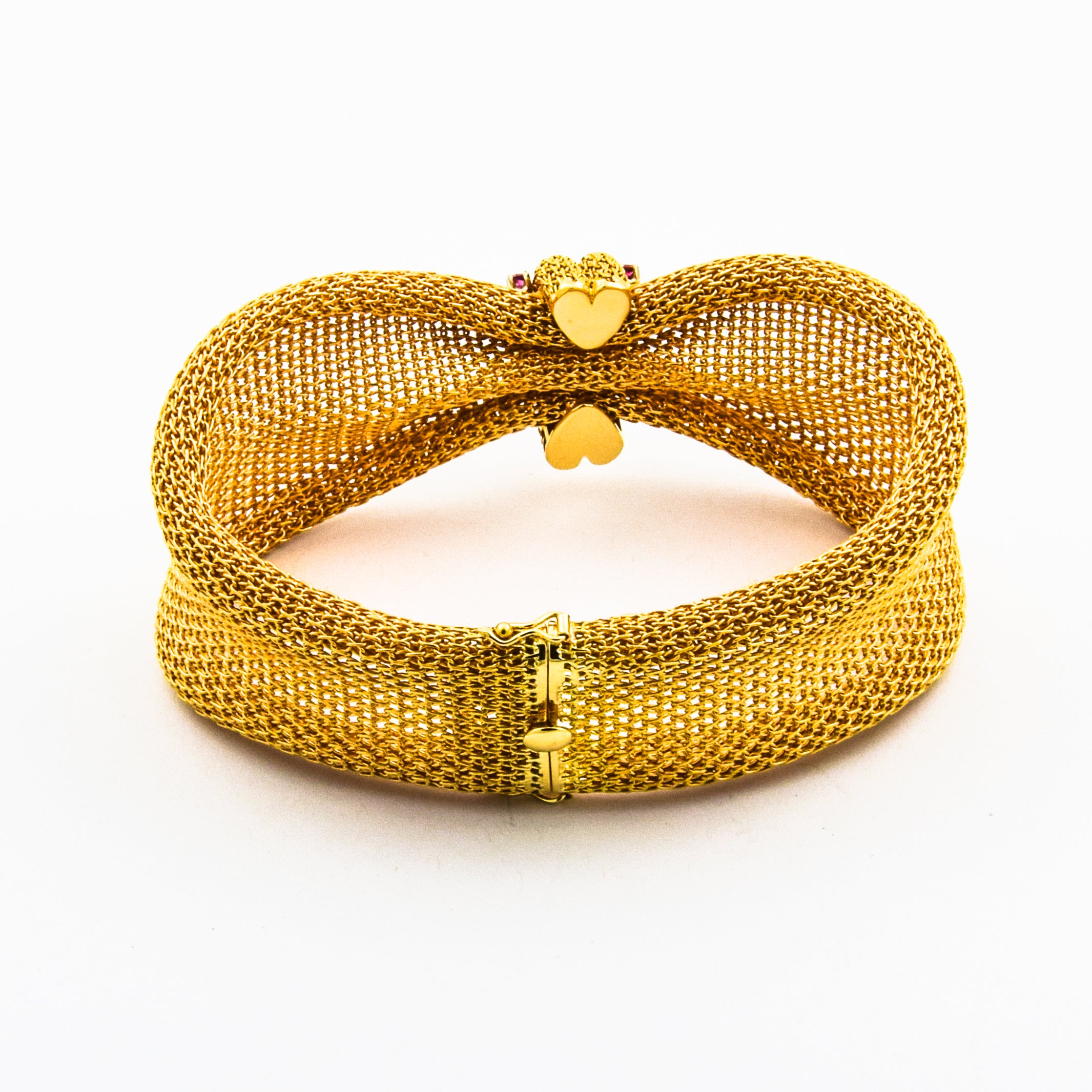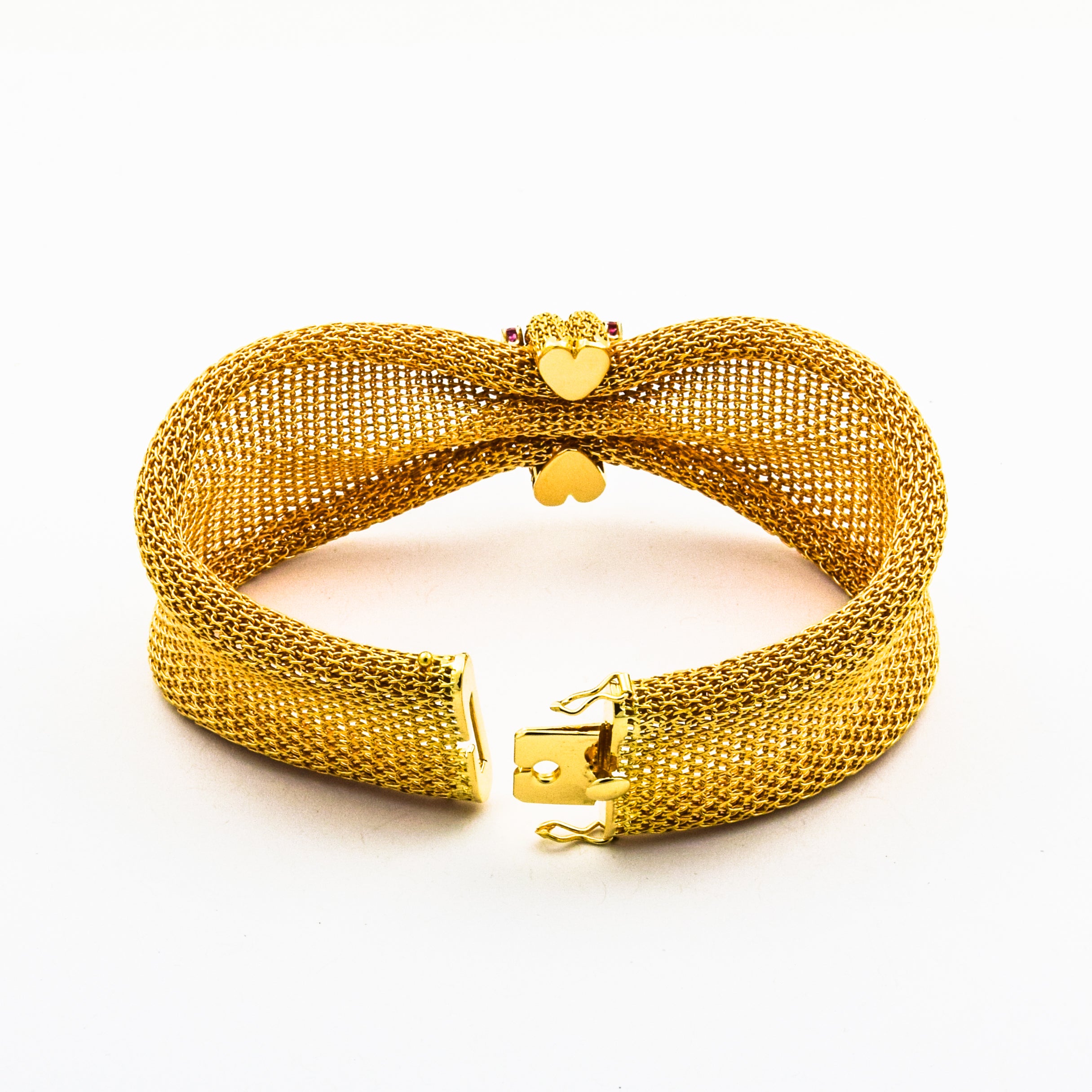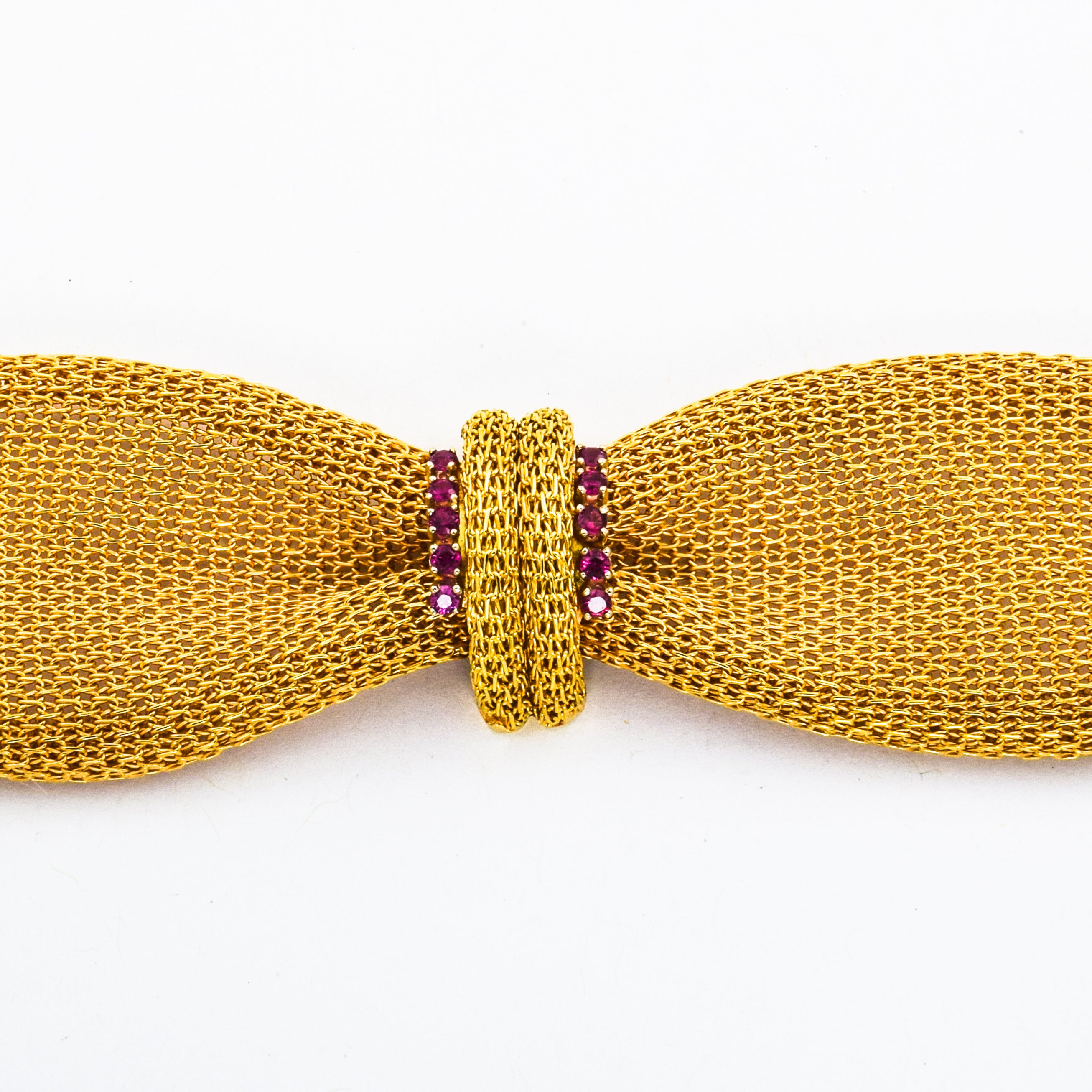 Bei dem Schmuckstück handelt es sich um ein Armband aus 750 Gelbgold mit zehn Rubinen. Das Schmuckstück hat eine Gesamtlänge von 19,5 cm.