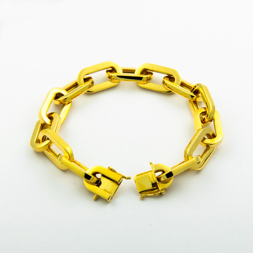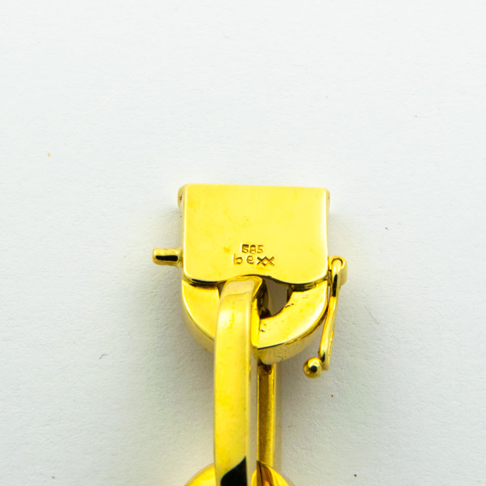 Bei dem Schmuckstück handelt es sich um ein Armband aus 585 Gelbgold. Das Schmuckstück hat eine Gesamtlänge von 21 cm.