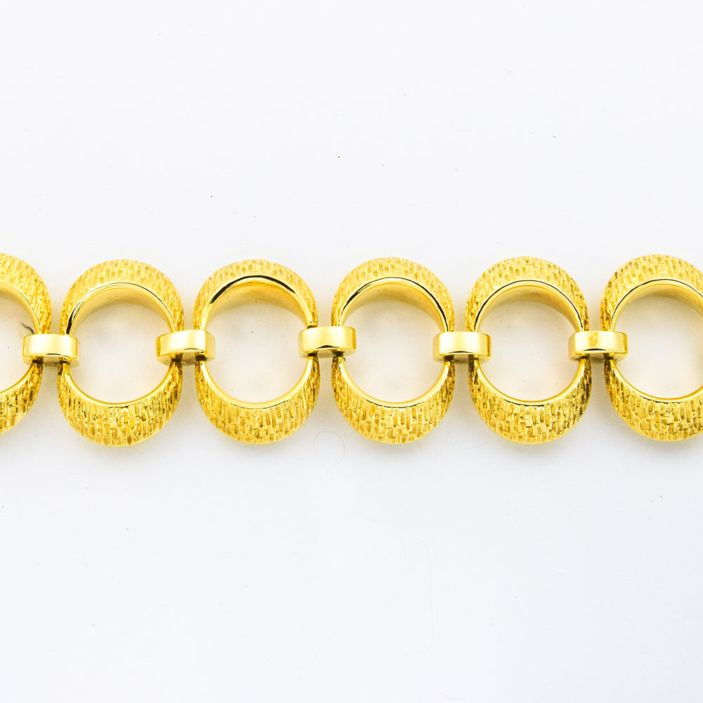 Bei dem Schmuckstück handelt es sich um ein Armband aus 585 Gelbgold. Das Schmuckstück hat eine Gesamtlänge von 20,5 cm.