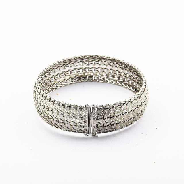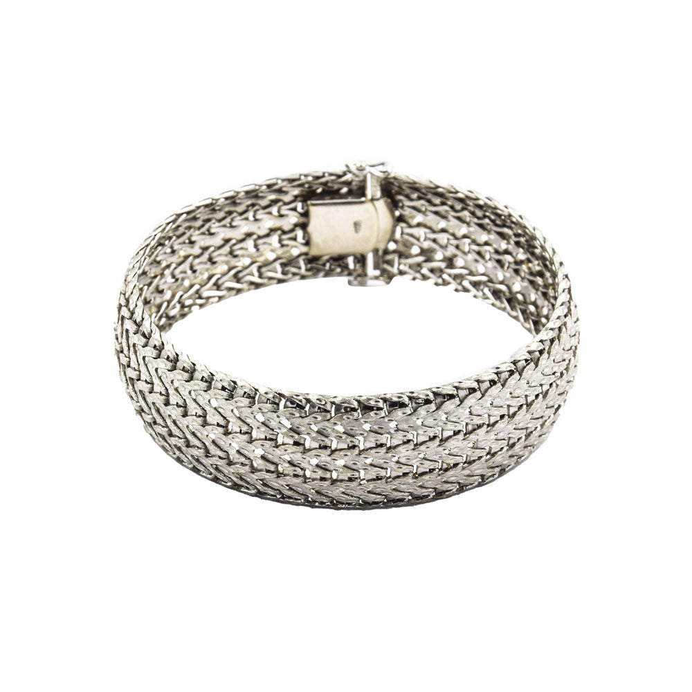 Bei dem Schmuckstück handelt es sich um ein Armband aus 585 Weißgold. Das Schmuckstück hat eine Gesamtlänge von 19 cm.