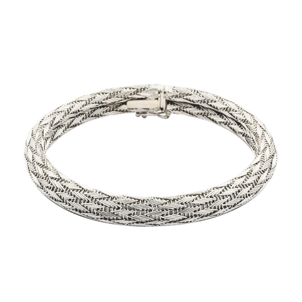 Bei dem Schmuckstück handelt es sich um ein Armband aus 750 Weißgold. Das Schmuckstück hat eine Gesamtlänge von 19 cm.