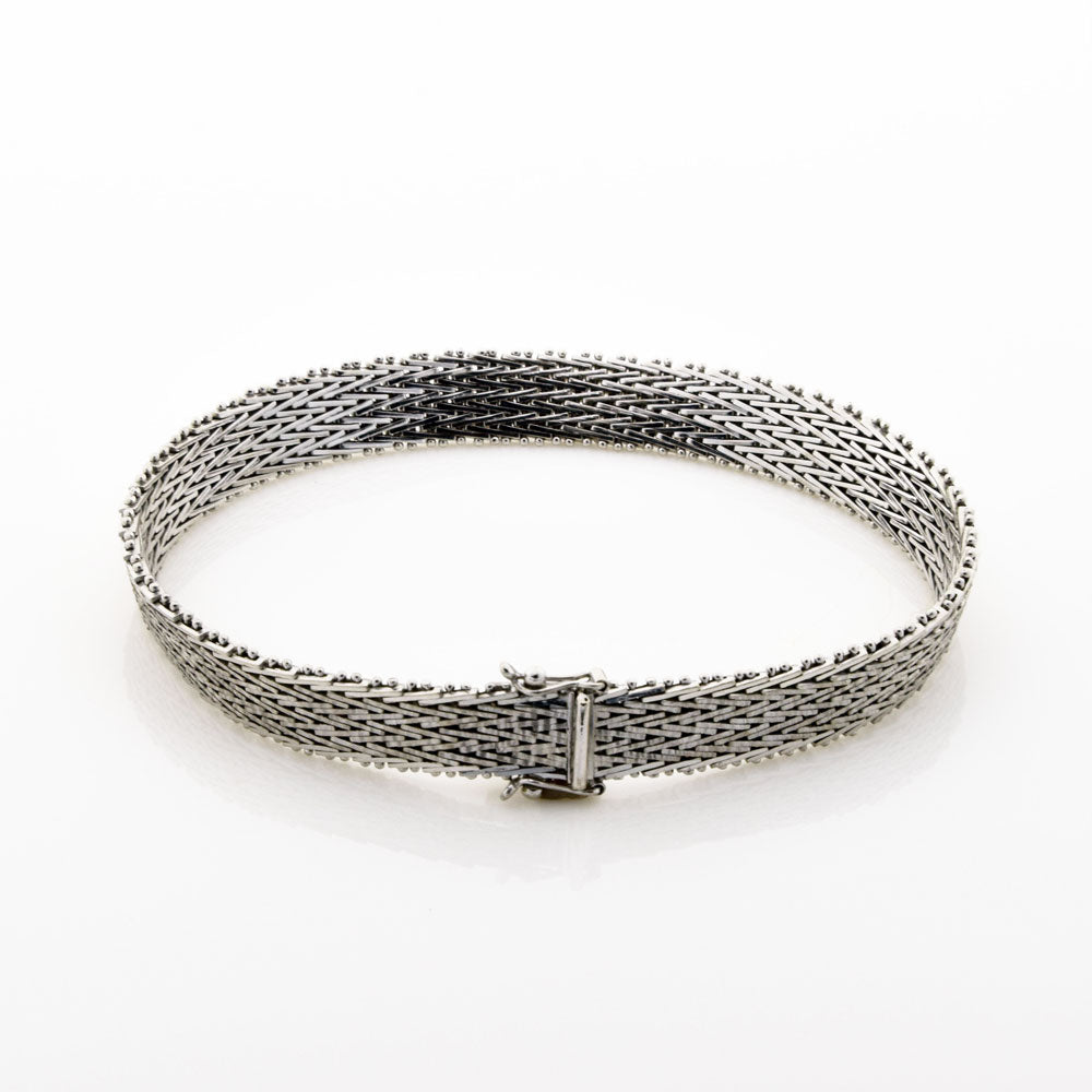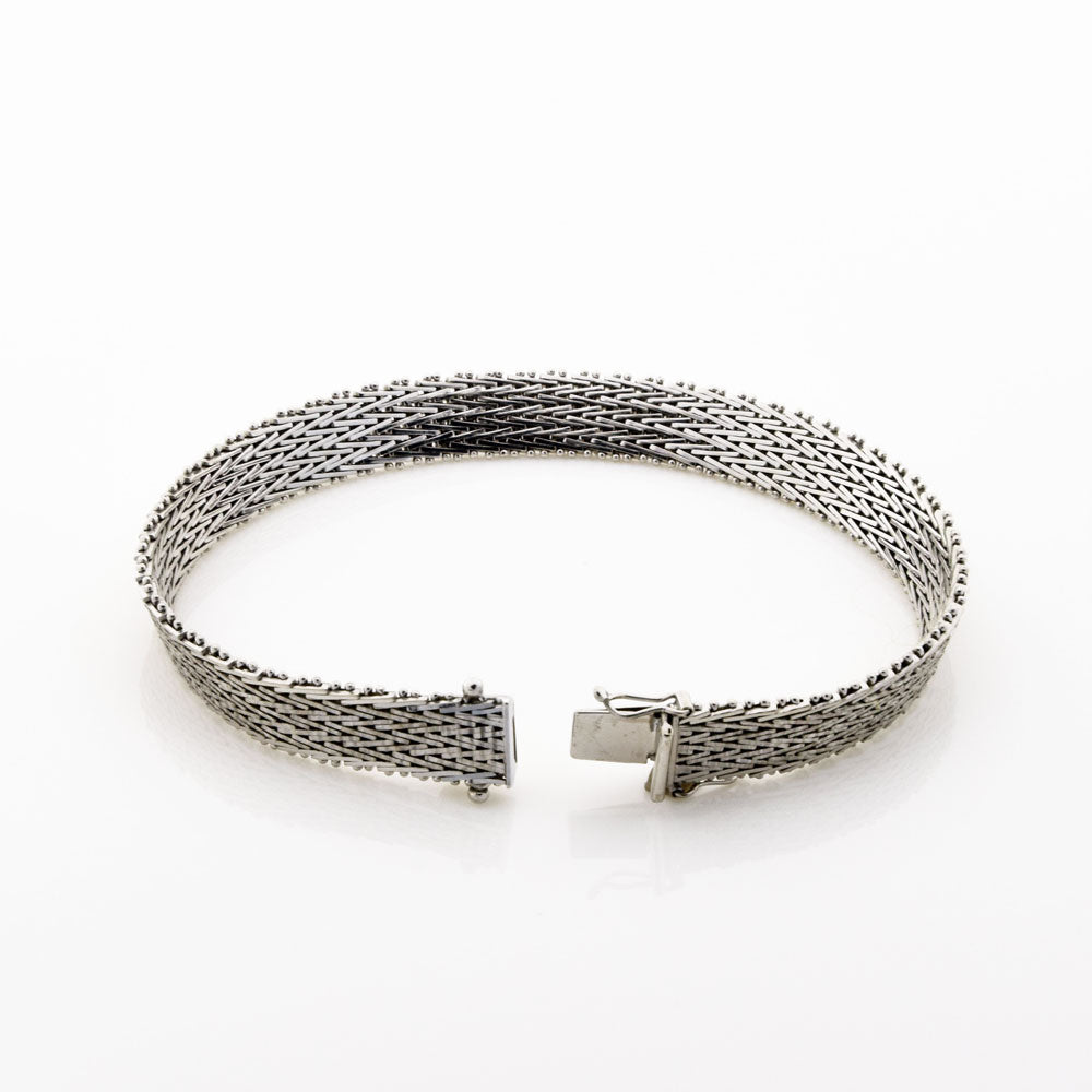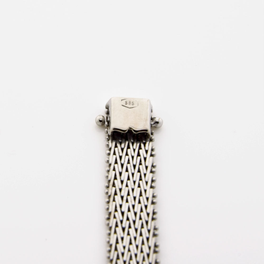 Bei dem Schmuckstück handelt es sich um ein Armband aus 585 Weißgold. Das Schmuckstück hat eine Gesamtlänge von 20,5 cm.
