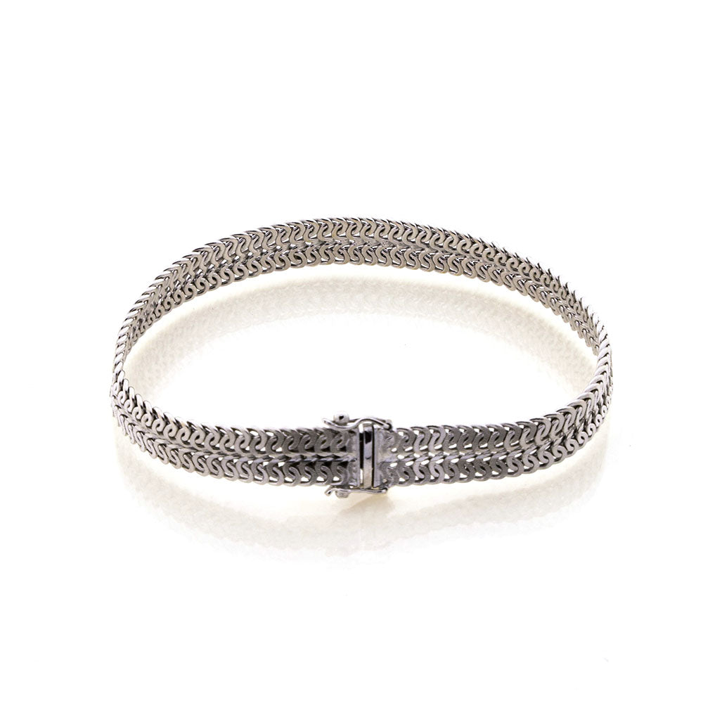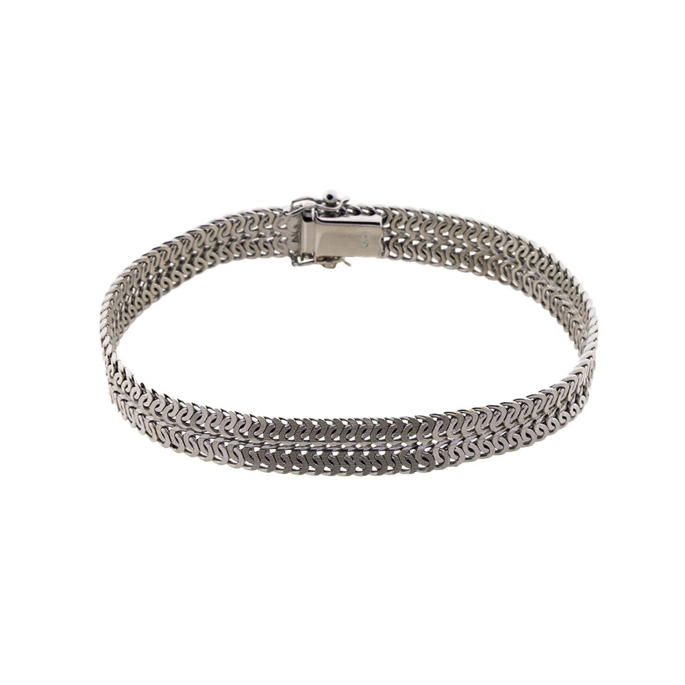 Bei dem Schmuckstück handelt es sich um ein Armband aus 750 Weißgold. Das Schmuckstück hat eine Gesamtlänge von 18,5 cm.