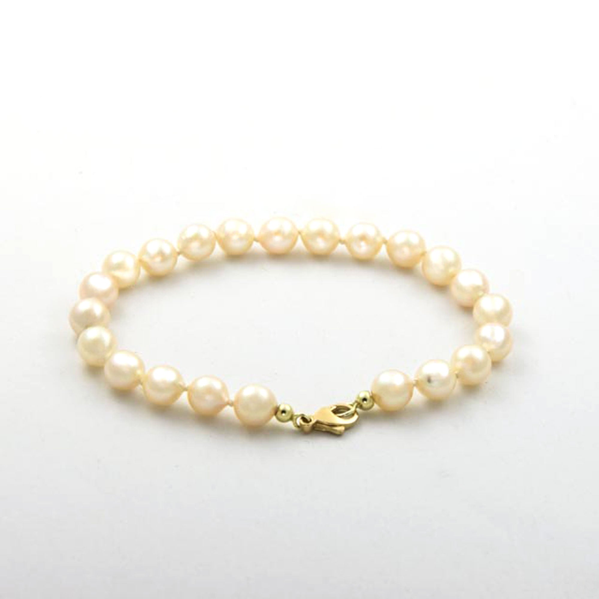 Bei dem Schmuckstück handelt es sich um ein Zuchtperlenarmband mit Schließe aus 585 Gelbgold. Das Schmuckstück hat eine Gesamtlänge von 20,5 cm.