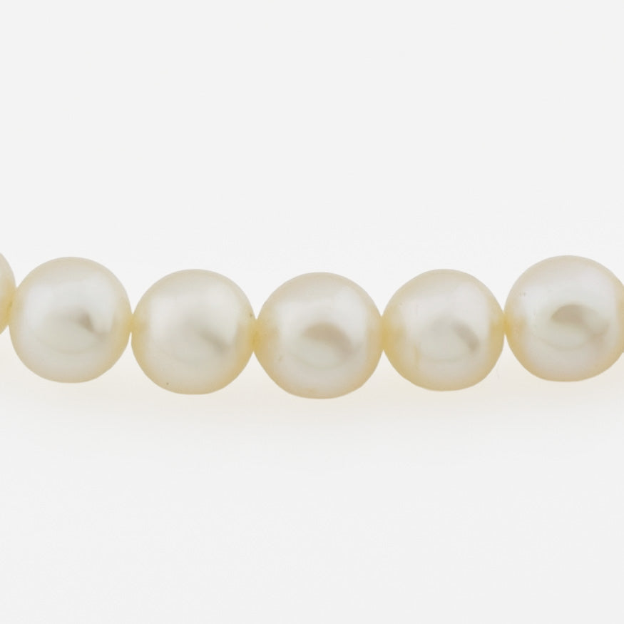 Bei dem Schmuckstück handelt es sich um ein Armband aus Akoyazuchtperlen. Das Schmuckstück ist endlos und hat eine Gesamtlänge von 18 cm.