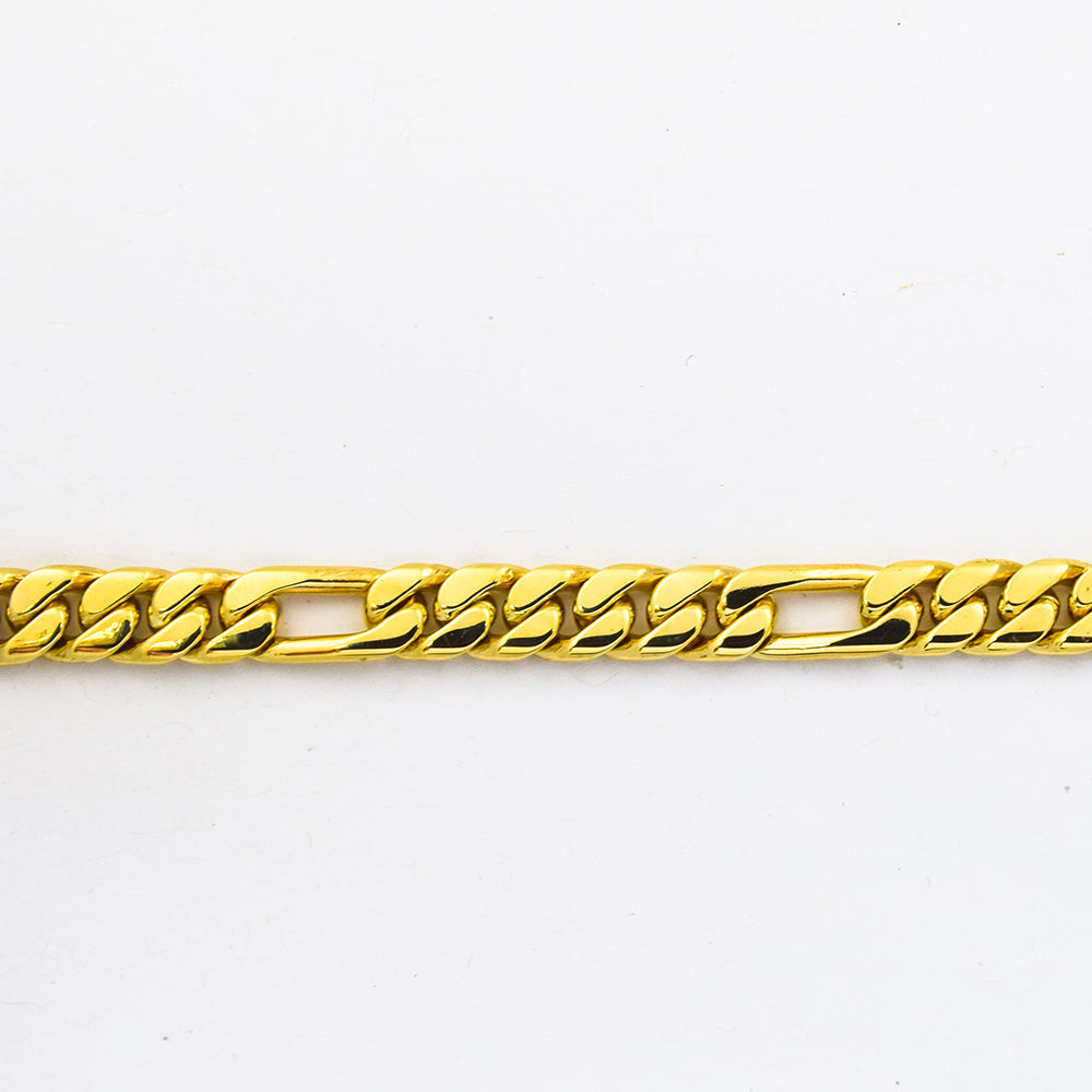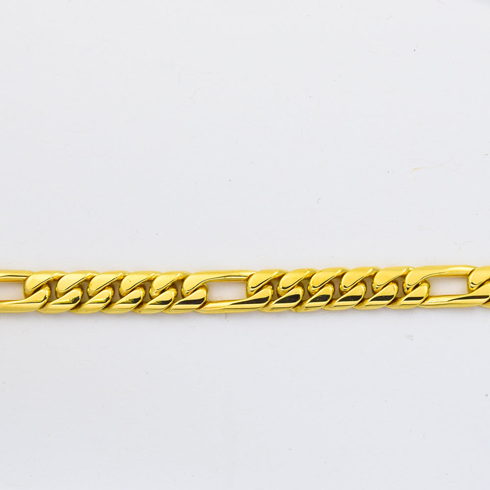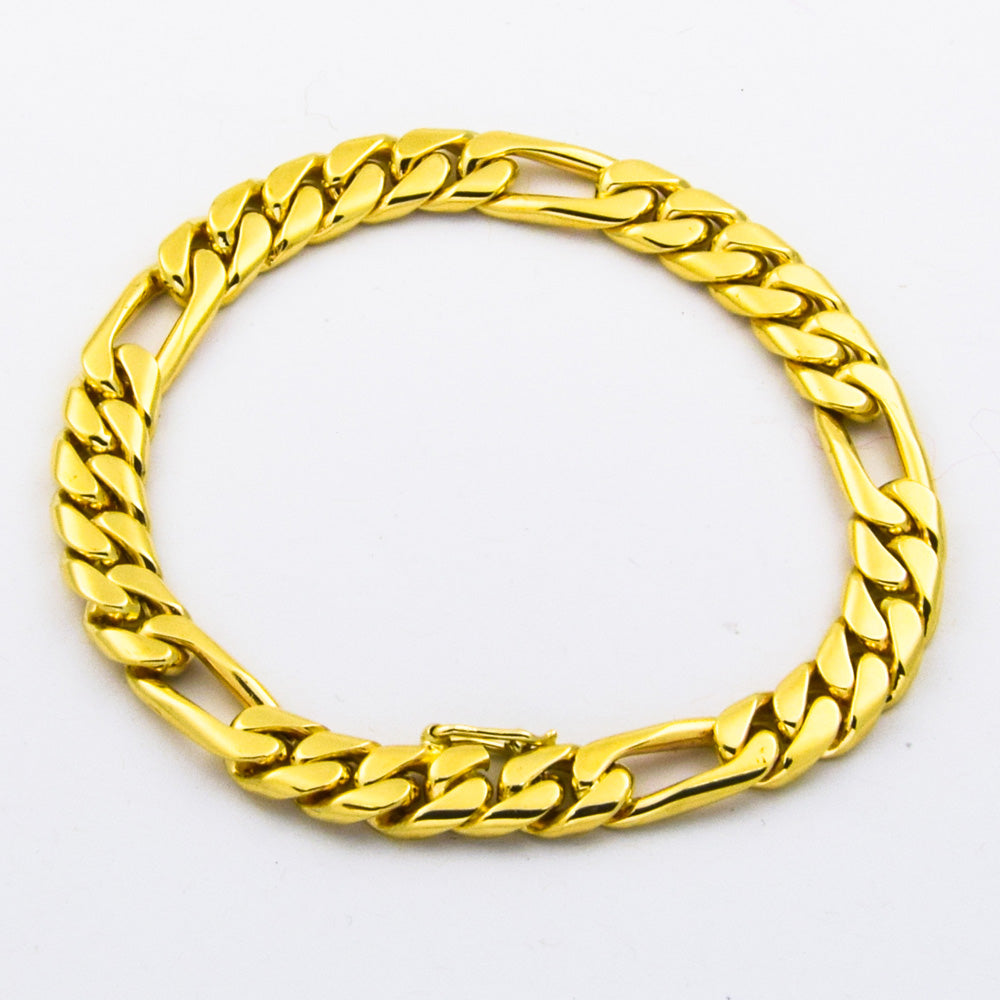 Bei dem Schmuckstück handelt es sich um ein Figaroarmband aus 585 Gelbgold. Das Schmuckstück hat eine Gesamtlänge von 20 cm.