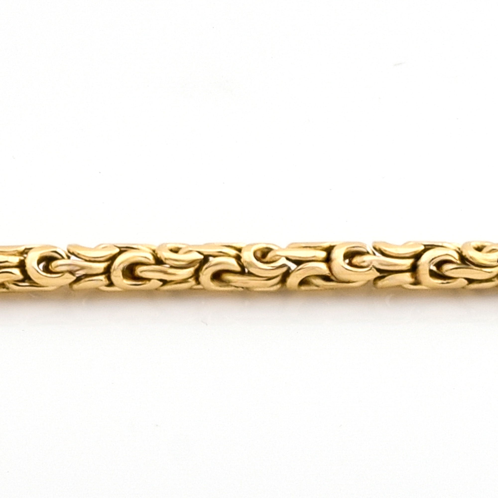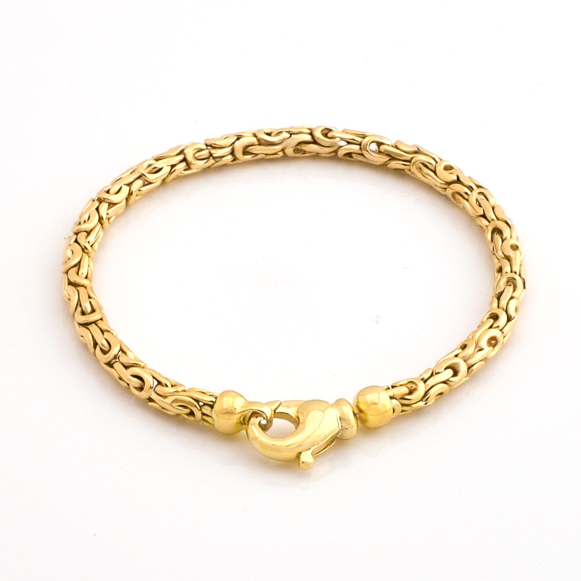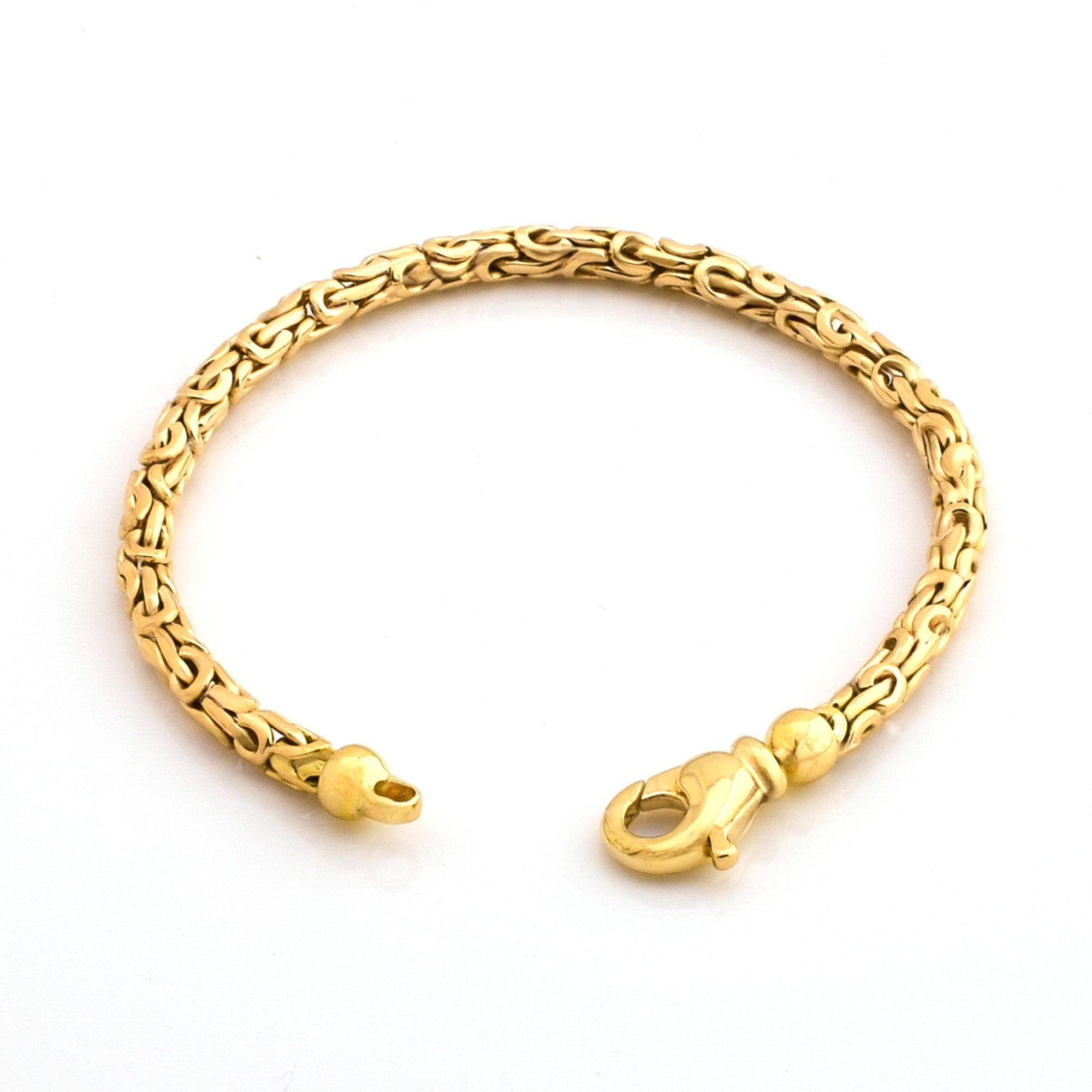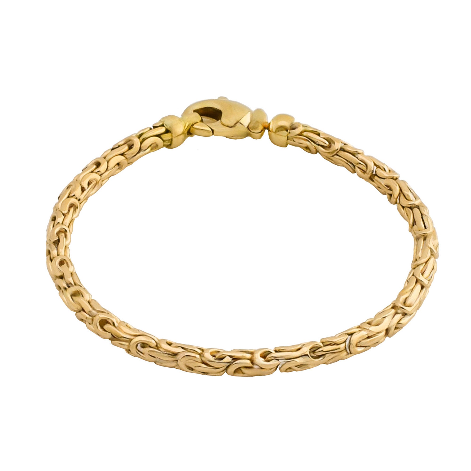 Bei dem Schmuckstück handelt es sich um ein Königsarmband aus 750 Gelbgold. Das Schmuckstück hat eine Gesamtlänge von 19,5 cm.