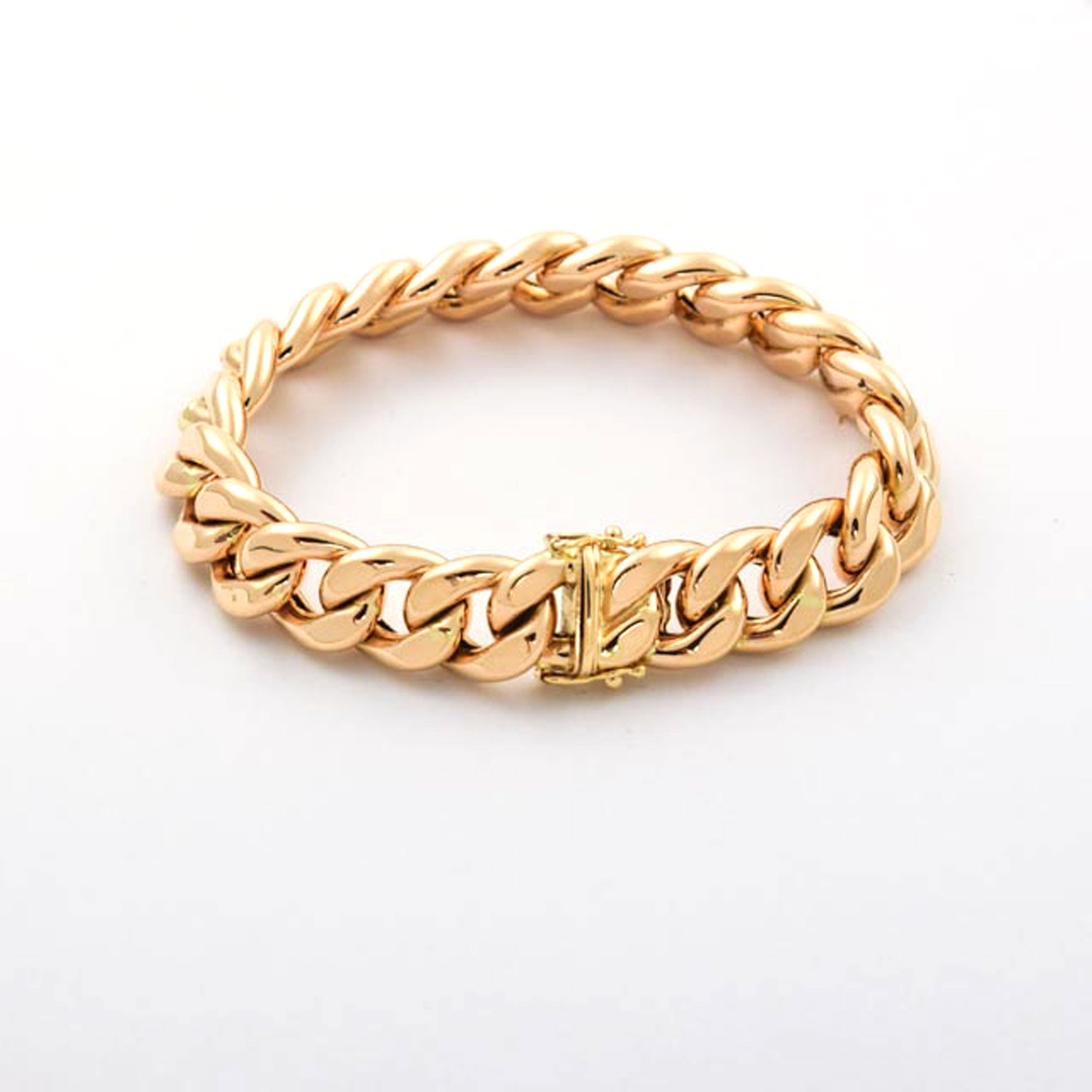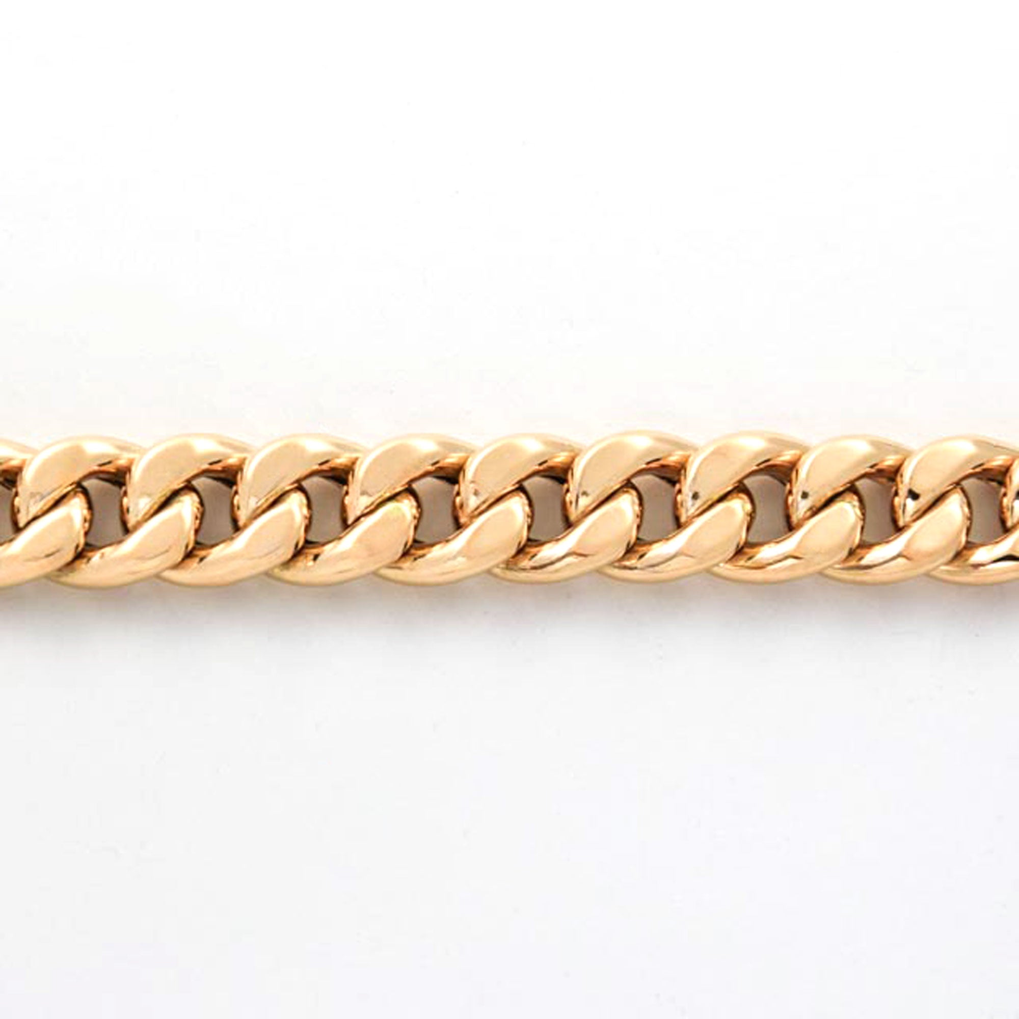 Bei dem Schmuckstück handelt es sich um ein Panzerarmband aus 750 Rosegold. Das Schmuckstück hat eine Gesamtlänge von 19 cm.