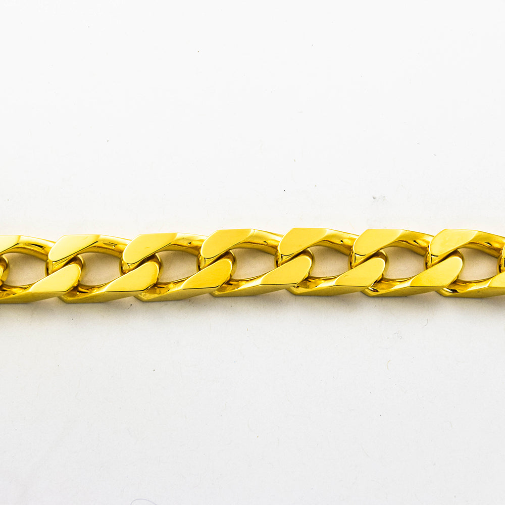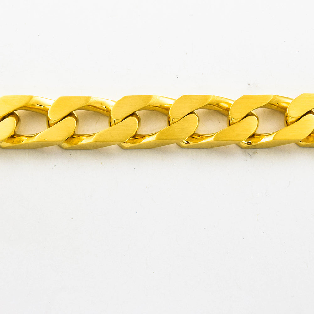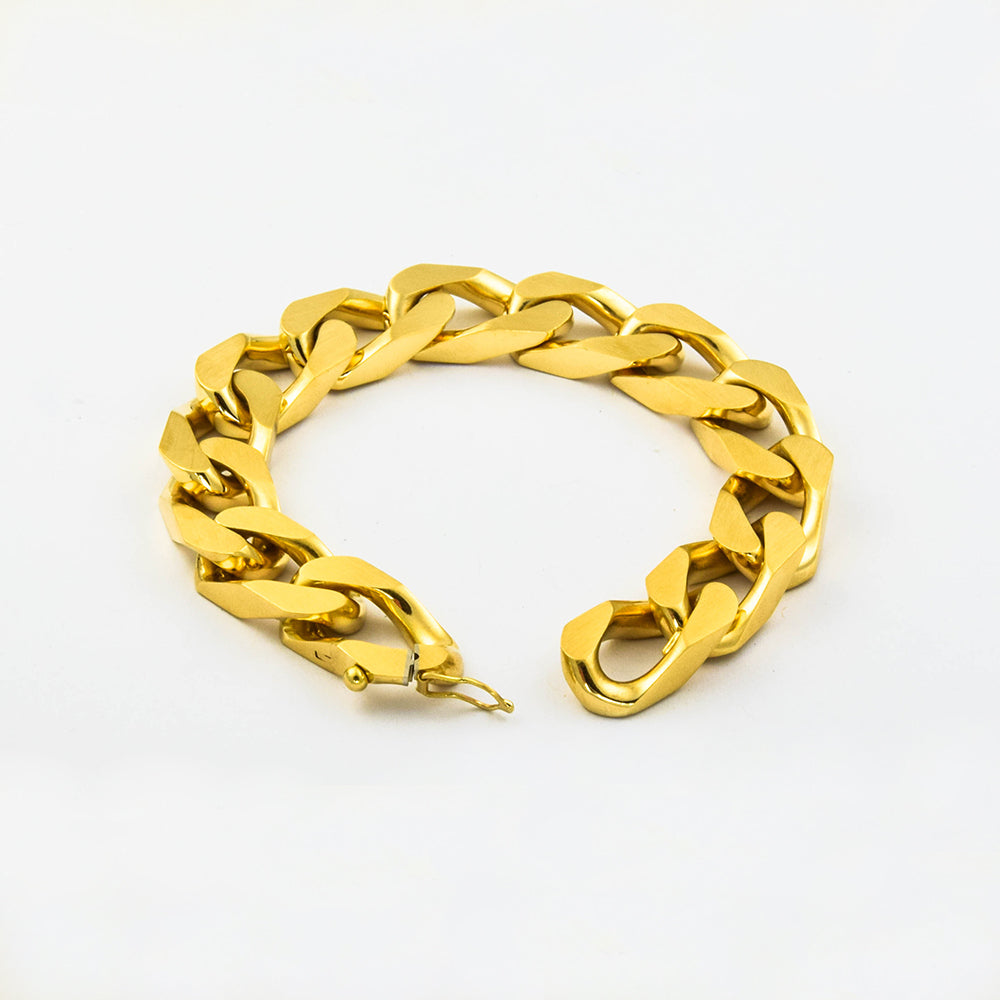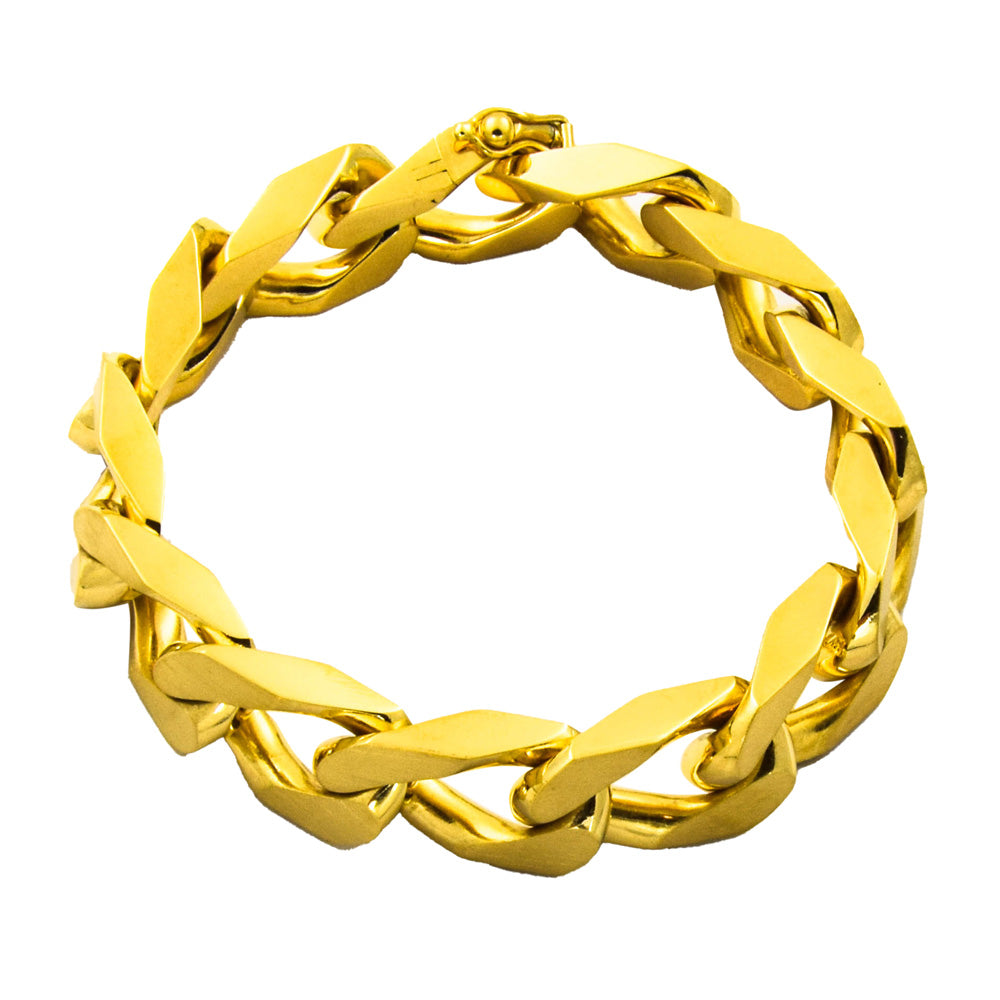 Bei dem Schmuckstück handelt es sich um ein Panzerarmband aus 750 Gelbgold. Das Schmuckstück hat eine Gesamtlänge von 20,5 cm.