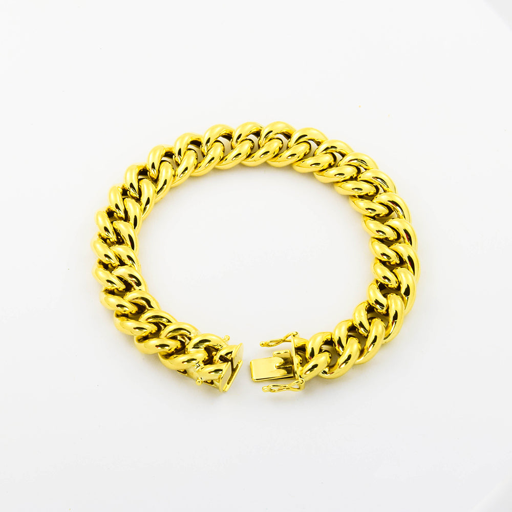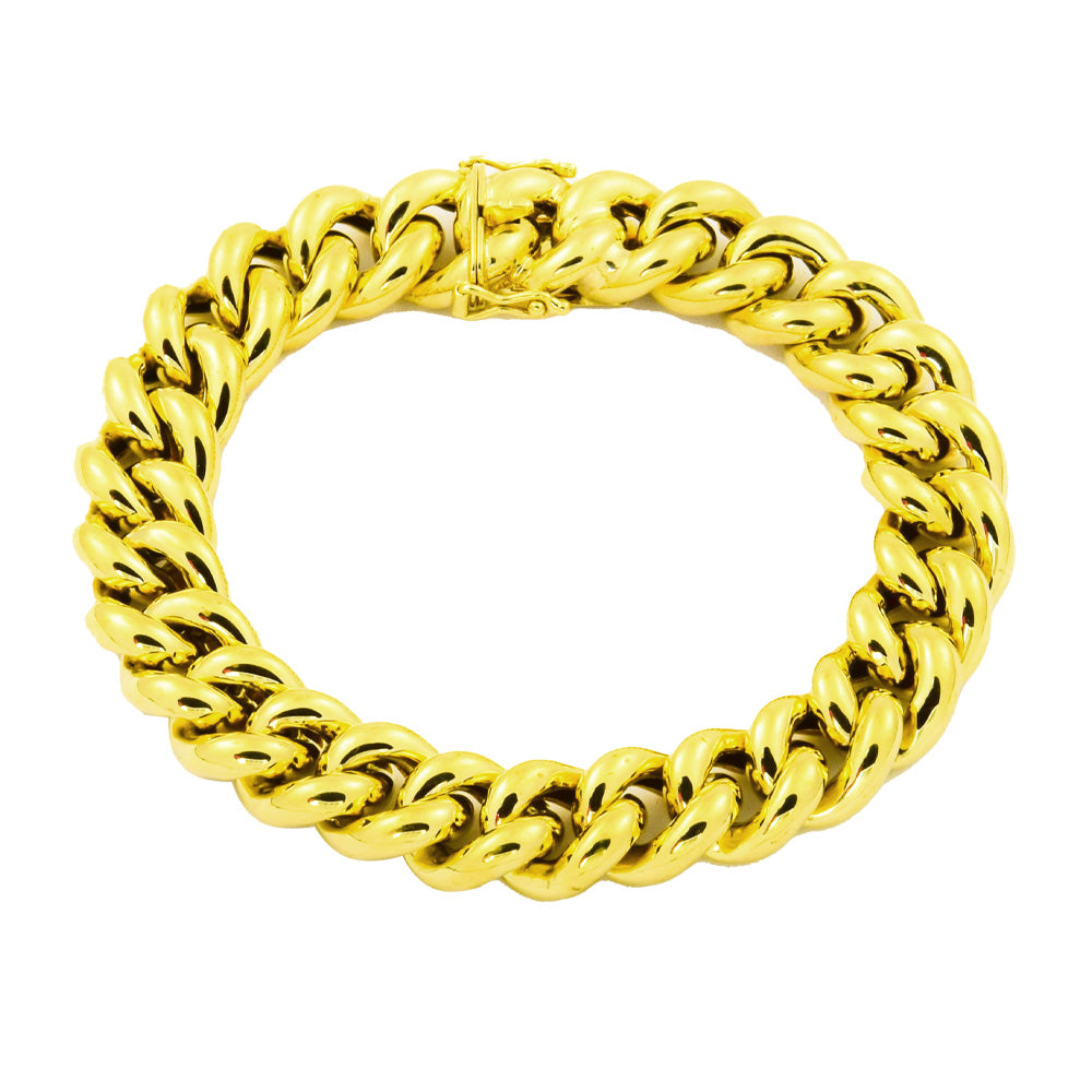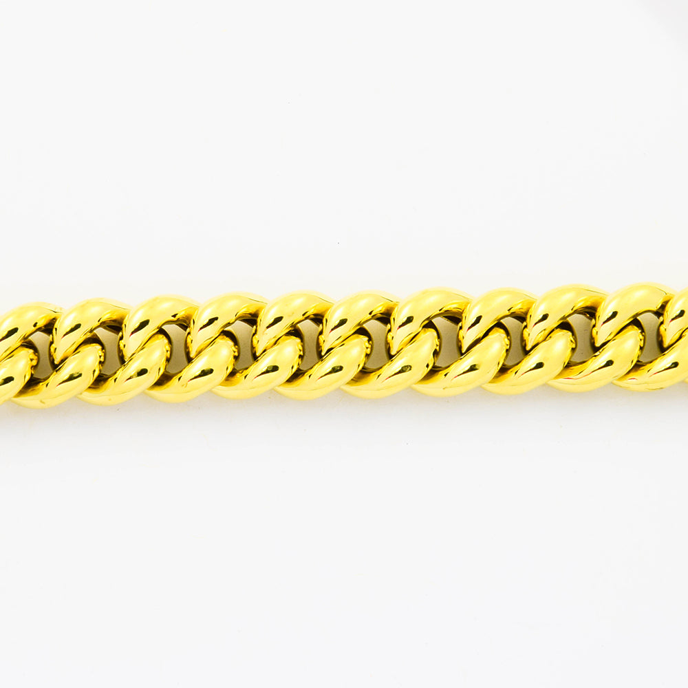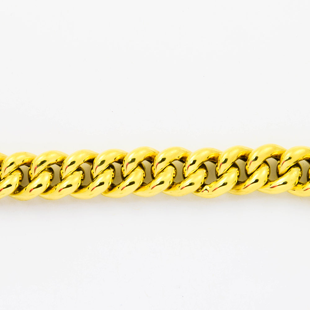 Bei dem Schmuckstück handelt es sich um ein Panzerarmband aus 585 Gelbgold. Das Schmuckstück hat eine Gesamtlänge von 19,5 cm.