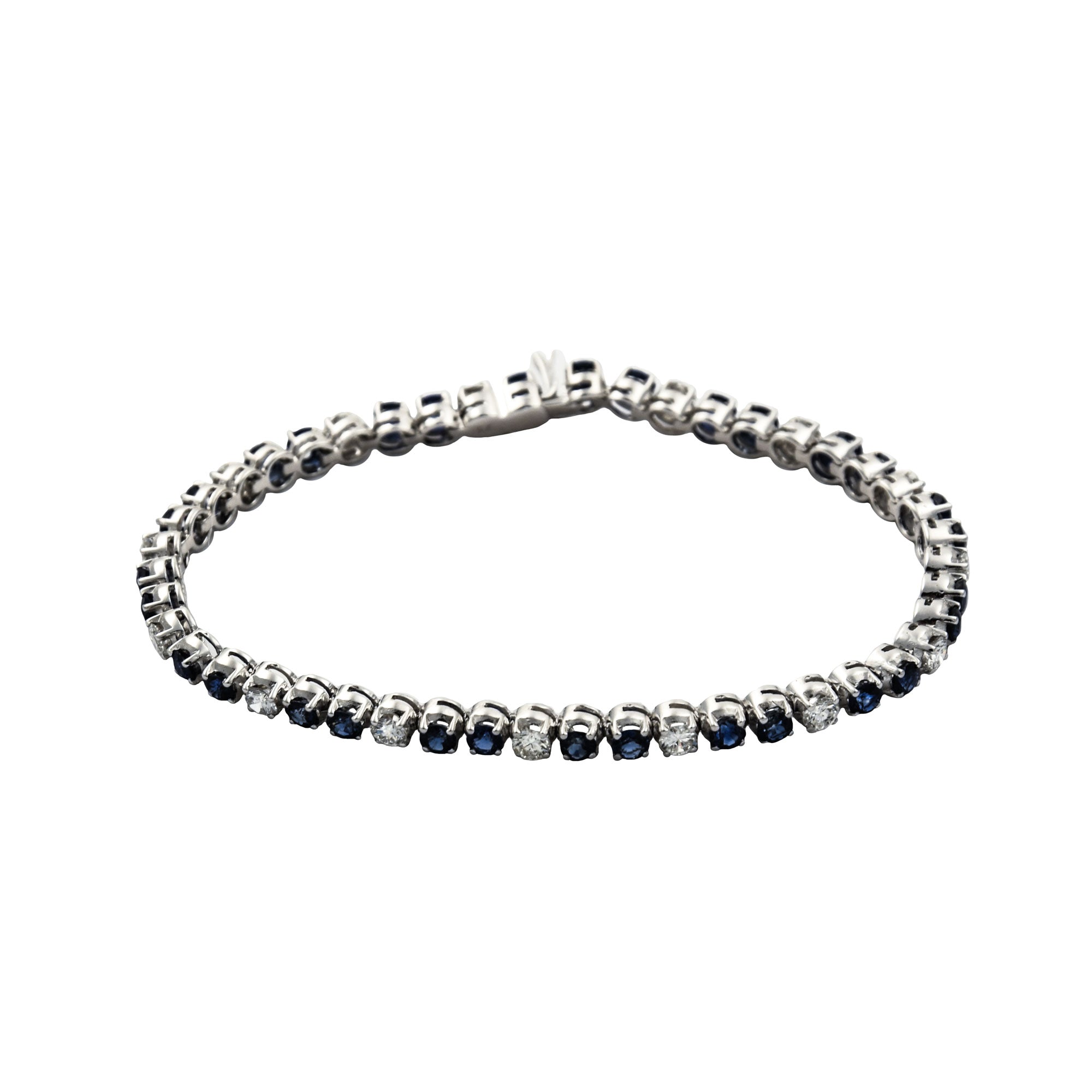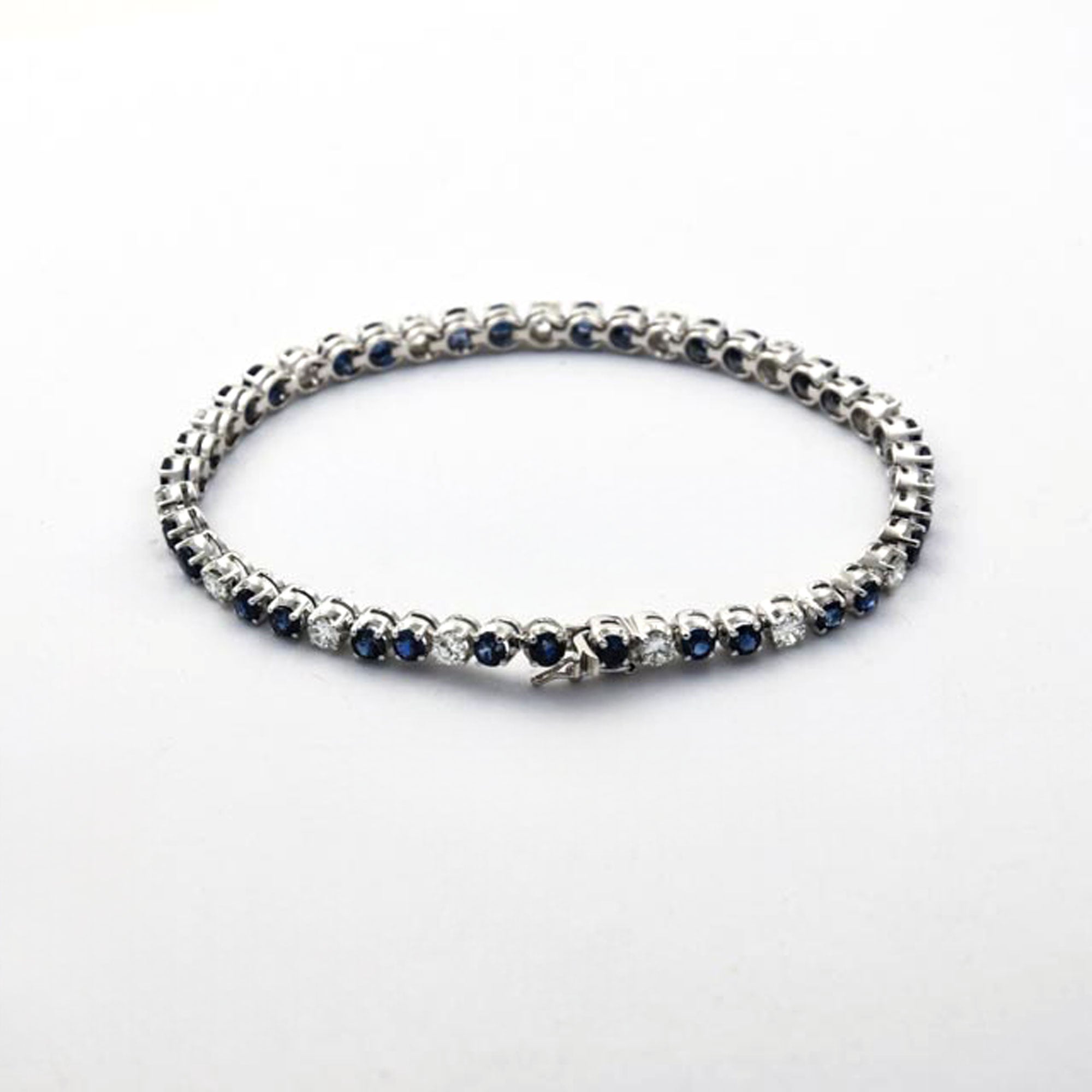 Rivièrearmband aus Weißgold mit Saphir und Brillant