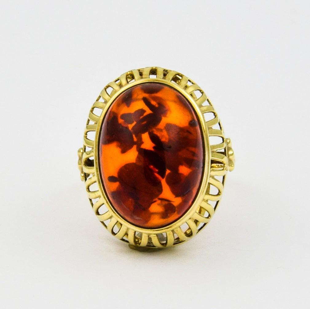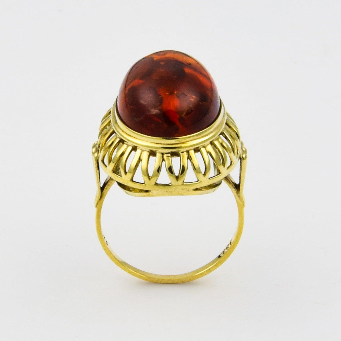 Ring aus Gelbgold mit Bernstein, 1980er Jahre
