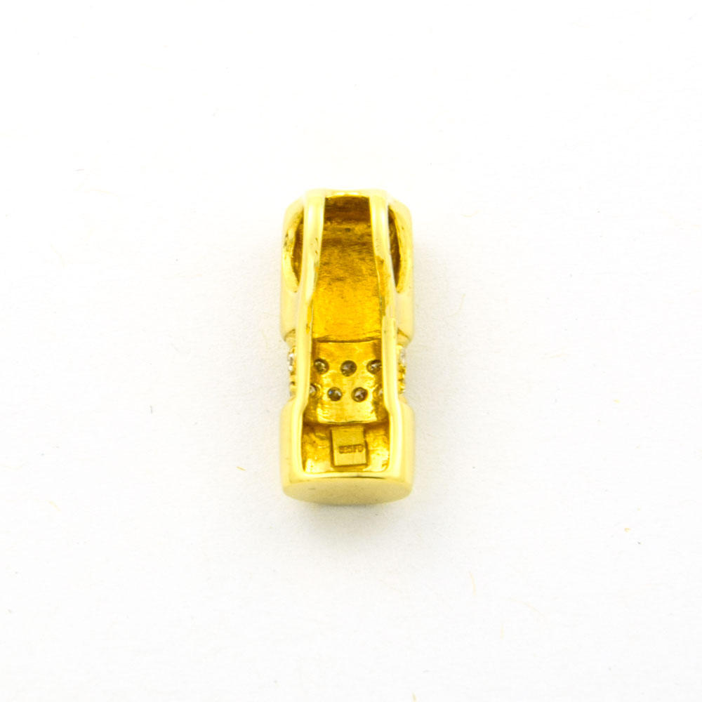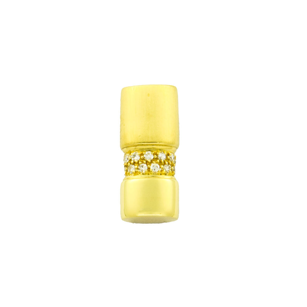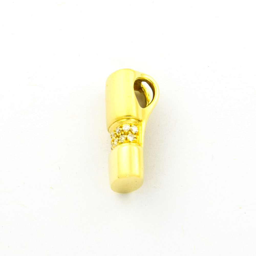 Bei dem Schmuckstück handelt es sich um einen Anhänger aus 585 Gelbgold mit 13 Diamanten im 8/8 Schliff von zusammen ca. 0,13 ct in der Qualität feines Weiß mit sehr kleinen Einschlüssen (TW/vs).