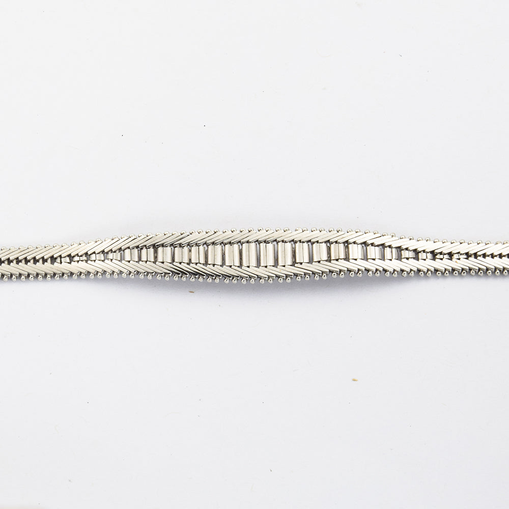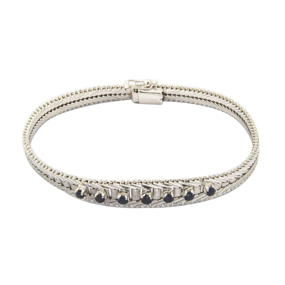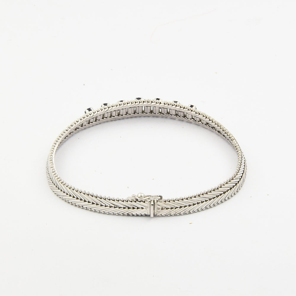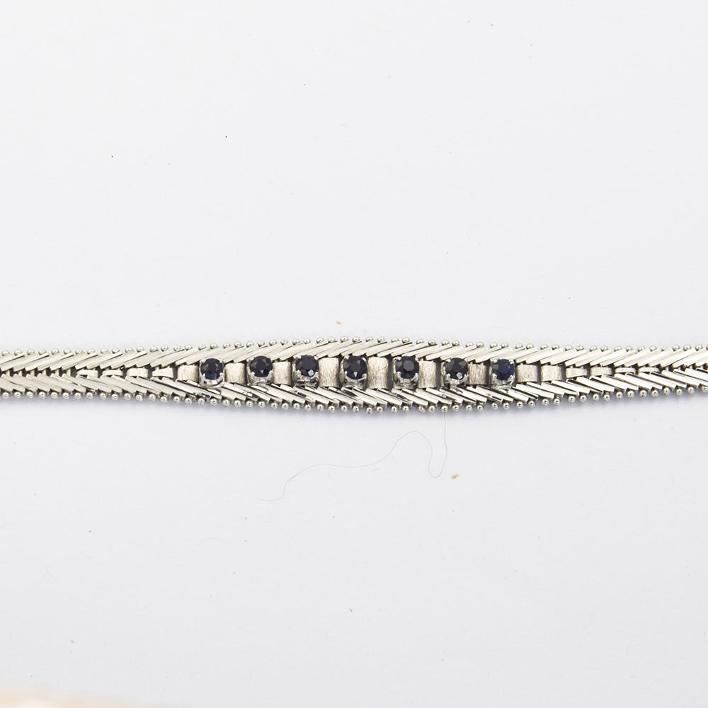 Bei dem Schmuckstück handelt es sich um ein Armband aus 585 Weißgold mit sieben Saphiren. Das Schmuckstück hat eine Gesamtlänge von 19,5 cm.