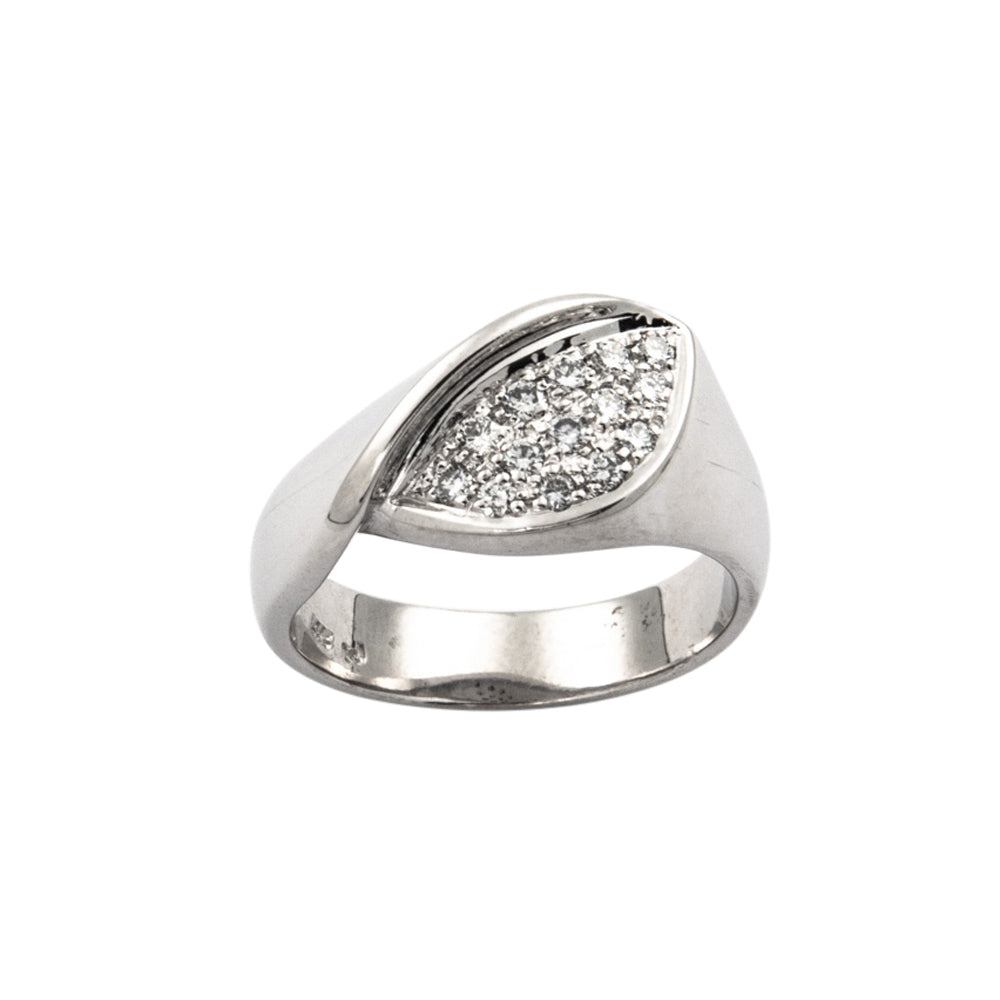 Bei dem Schmuckstück handelt es sich um einen Ring aus 585 Weißgold mit 14 Brillanten von zusammen ca. 0,14 ct in der Qualität Weiß mit sehr kleinen Einschlüssen (W/vs).