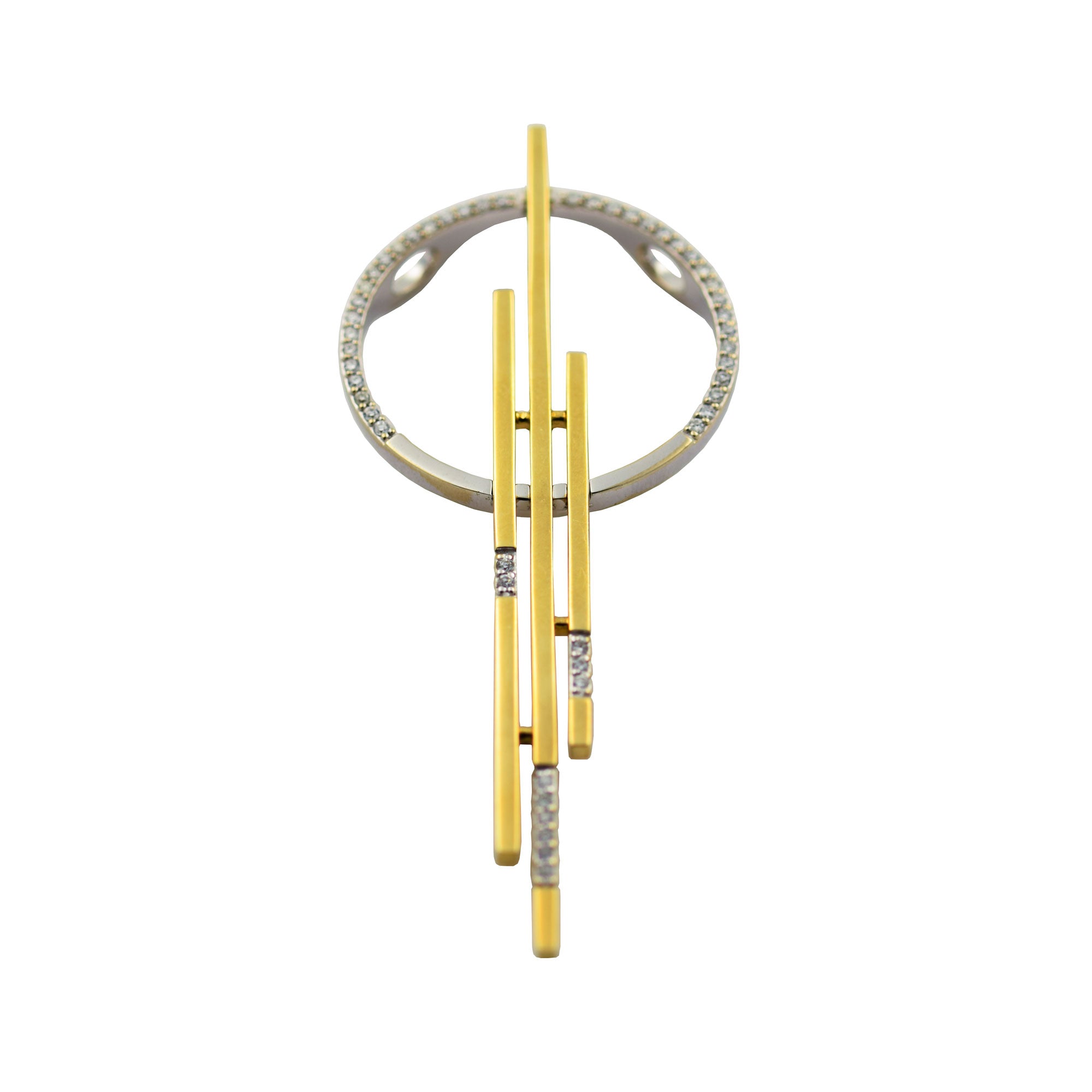 Bei dem Schmuckstück handelt es sich um einen Anhänger aus 585 Gelb- und Weißgold mit 49 Brillanten von zusammen ca. 0,245 ct in der Qualität Weiß mit kleinen Einschlüssen (W/si).