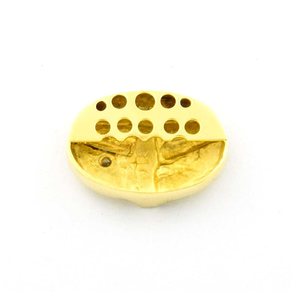 Bei dem Schmuckstück handelt es sich um einen Anhänger aus 585 Gelbgold mit einem Brillanten von ca. 0,07 ct in der Qualität Weiß mit sehr kleinen Einschlüssen (W/vs).
