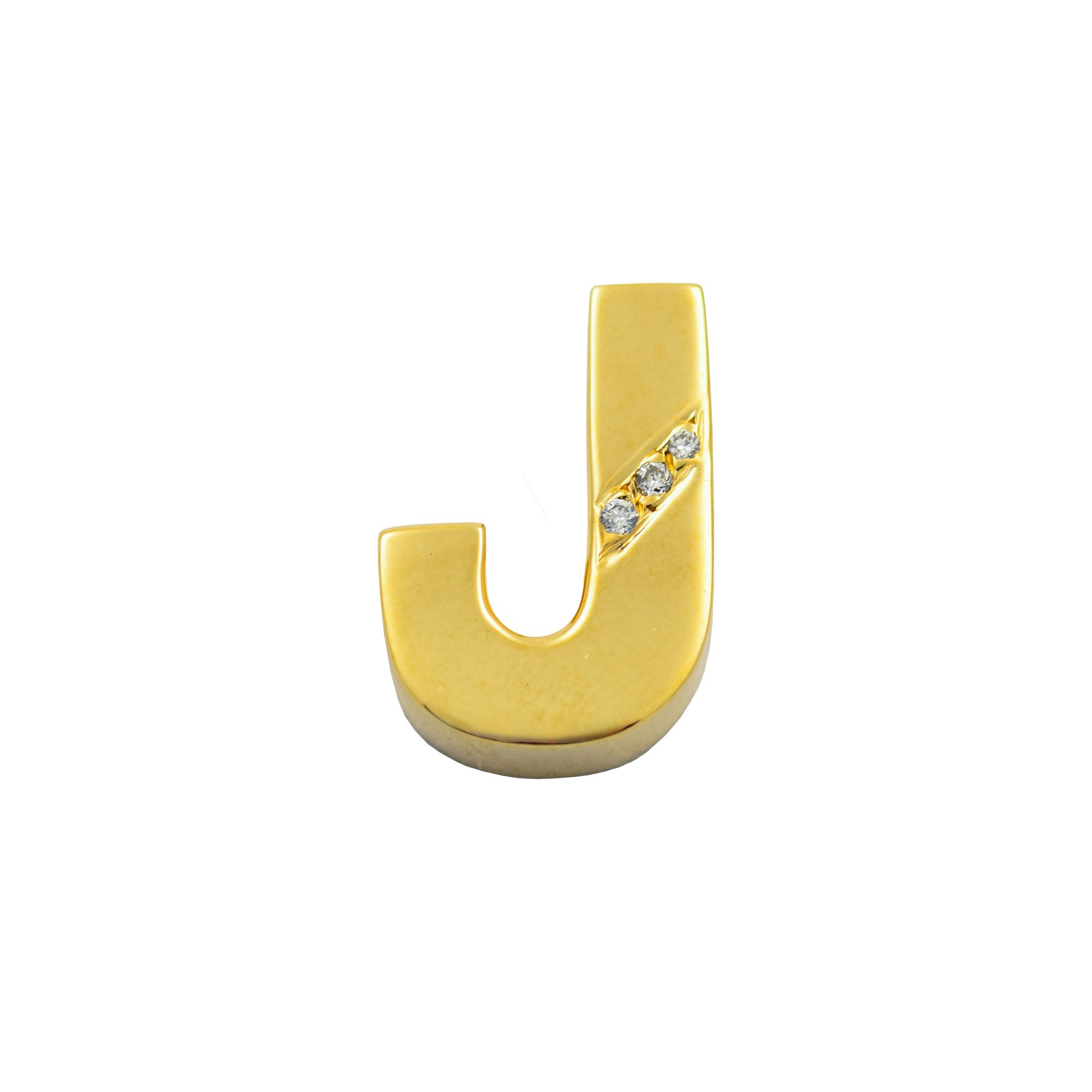 Bei dem Schmuckstück handelt es sich um einen Anhänger "J" aus 585 Gelbgold mit drei Diamanten von zusammen ca. 0,03 ct in der Qualität Weiß und piqué 1 (W/p 1).