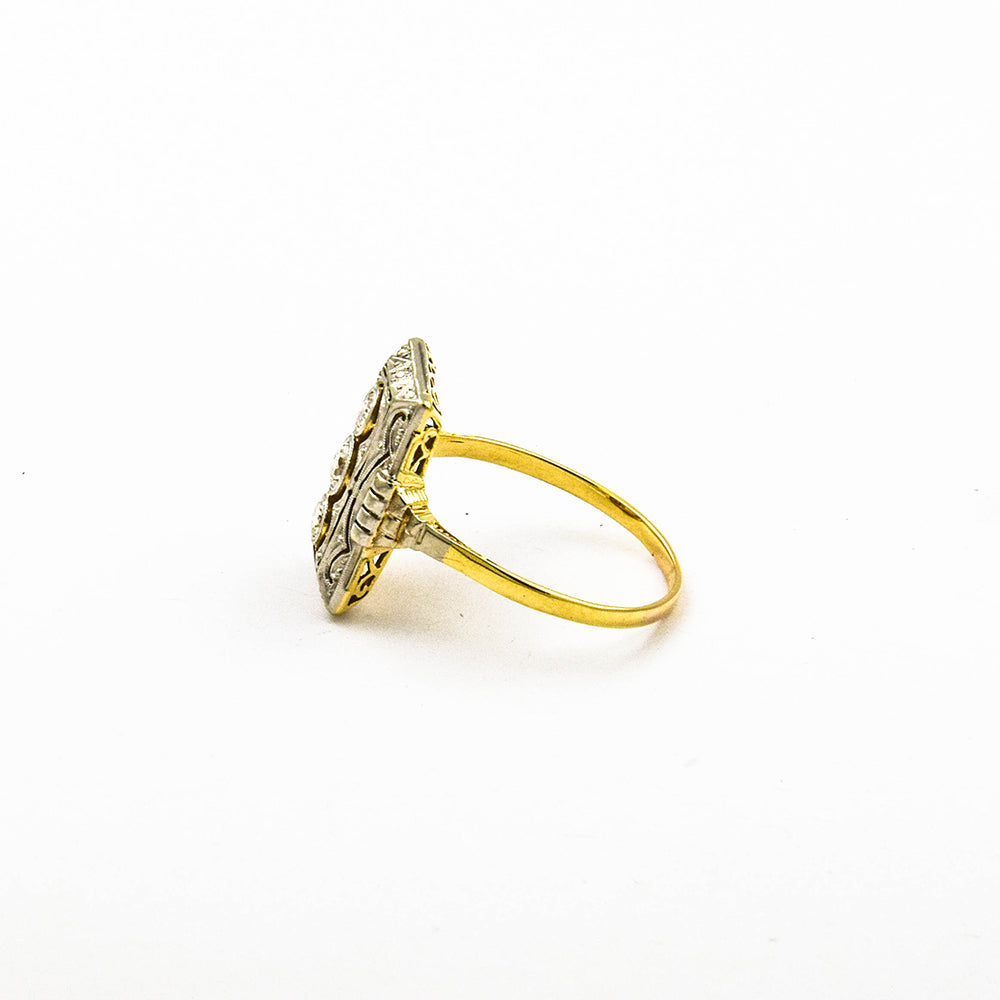Art Déco Brillantring aus Gelb- und Weißgold