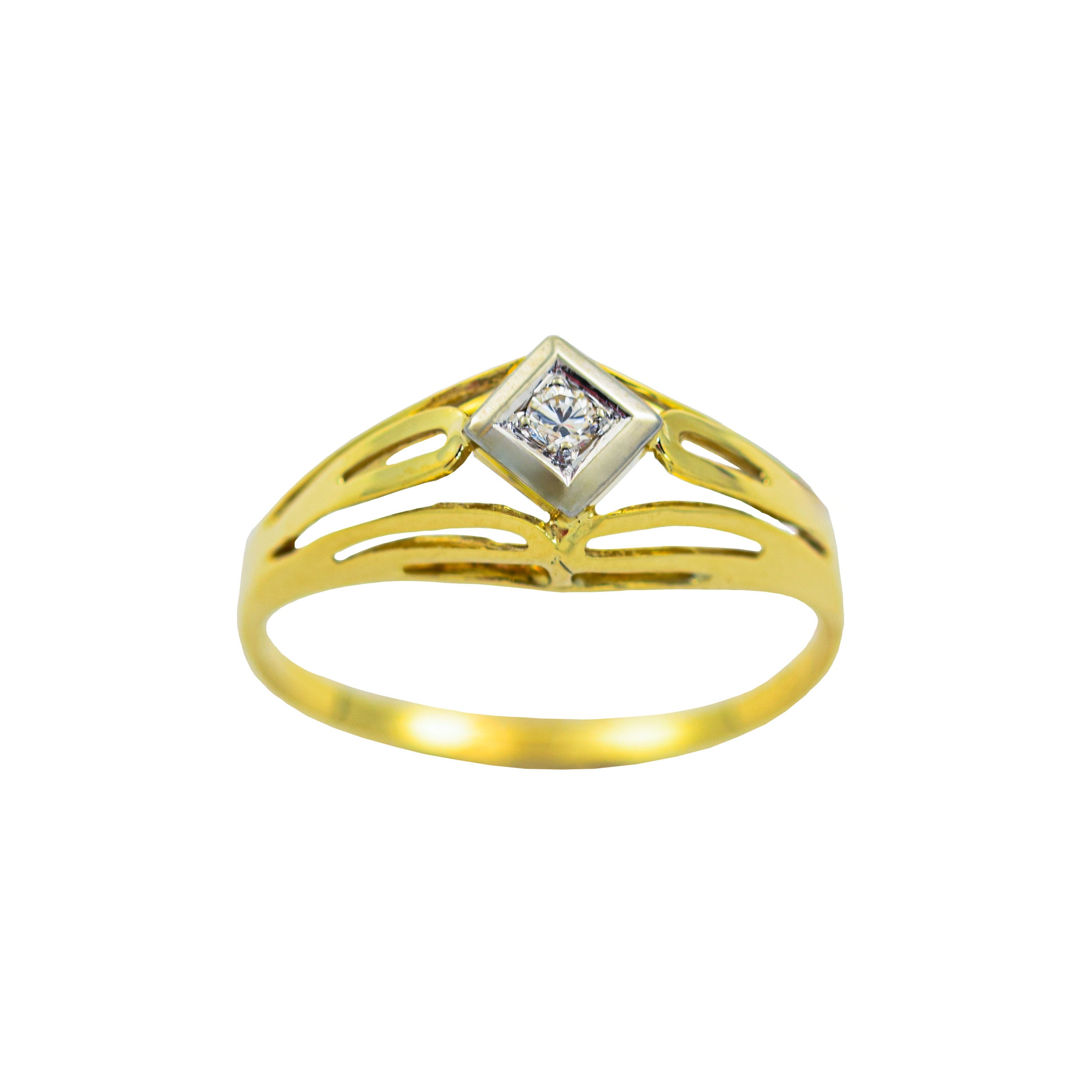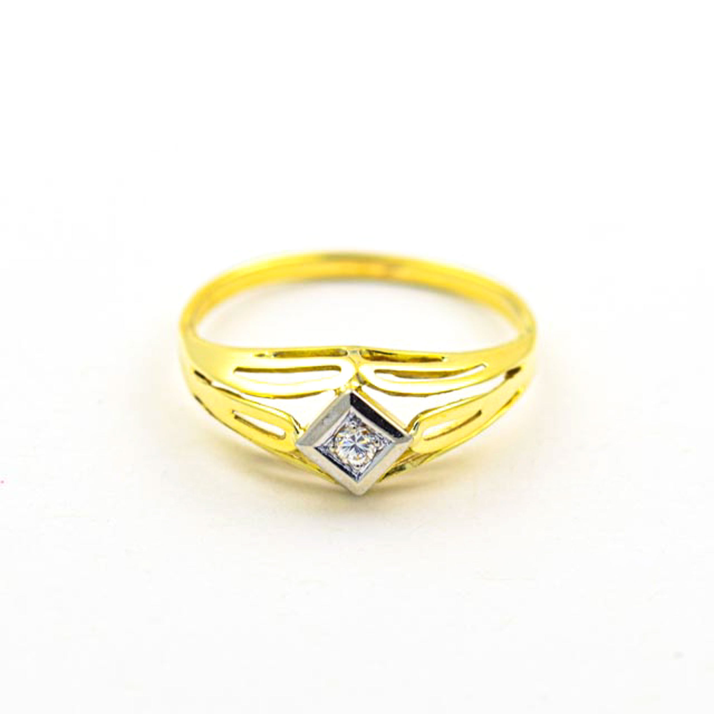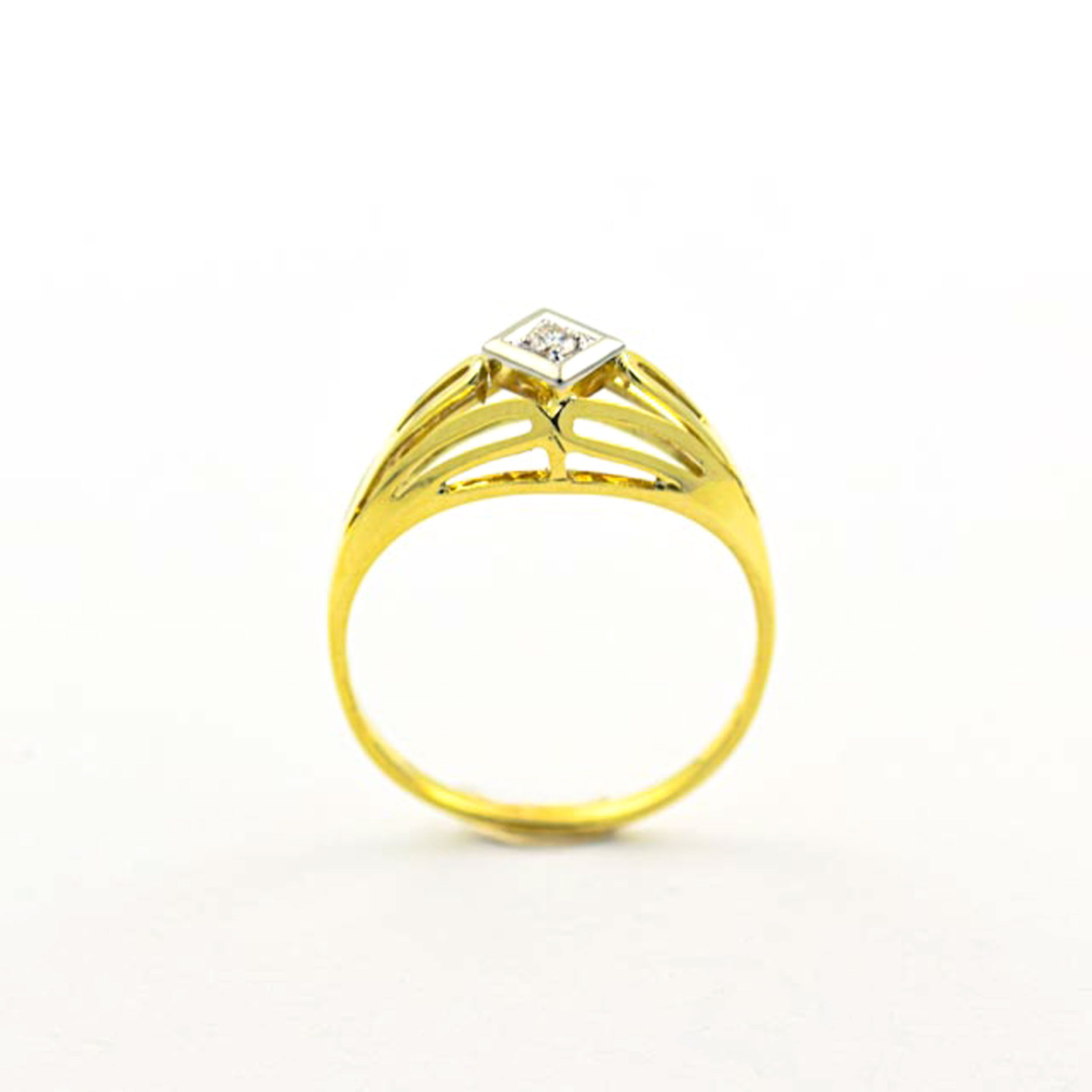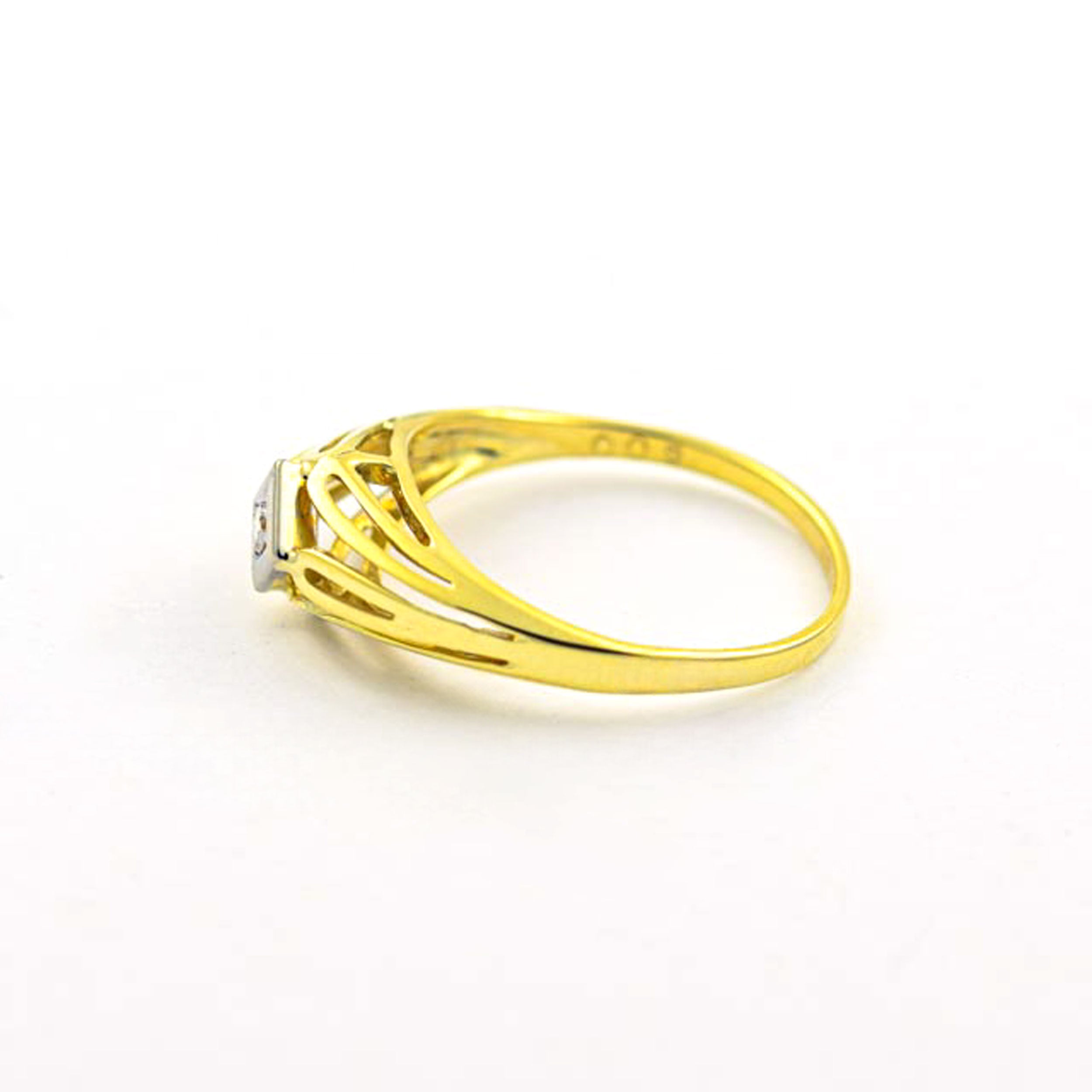 Bei dem Schmuckstück handelt es sich um einen Ring aus 585 Gelb- und Weißgold mit einem Brillanten von ca. 0,05 ct in der Qualität Weiß mit kleinen Einschlüssen (W/si).