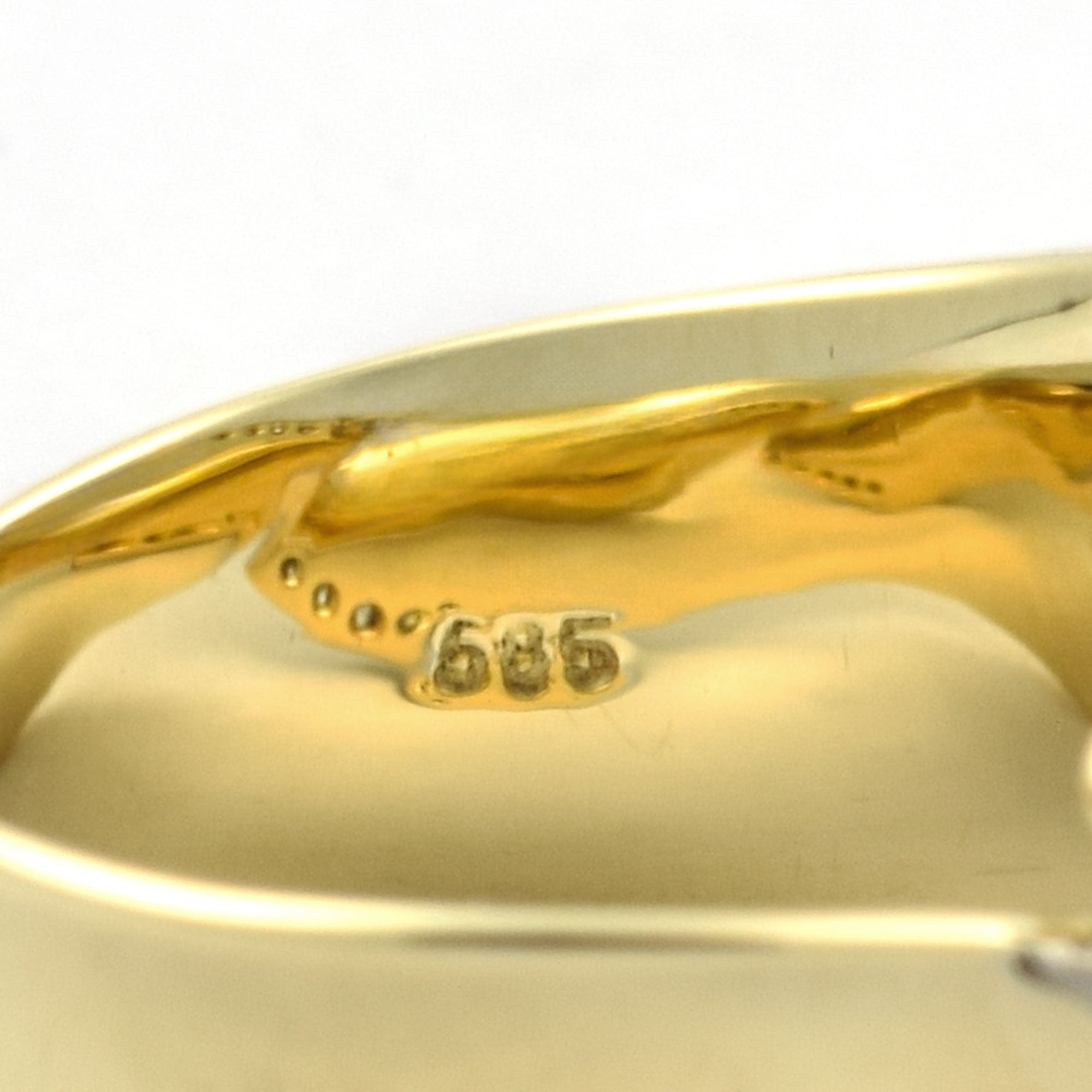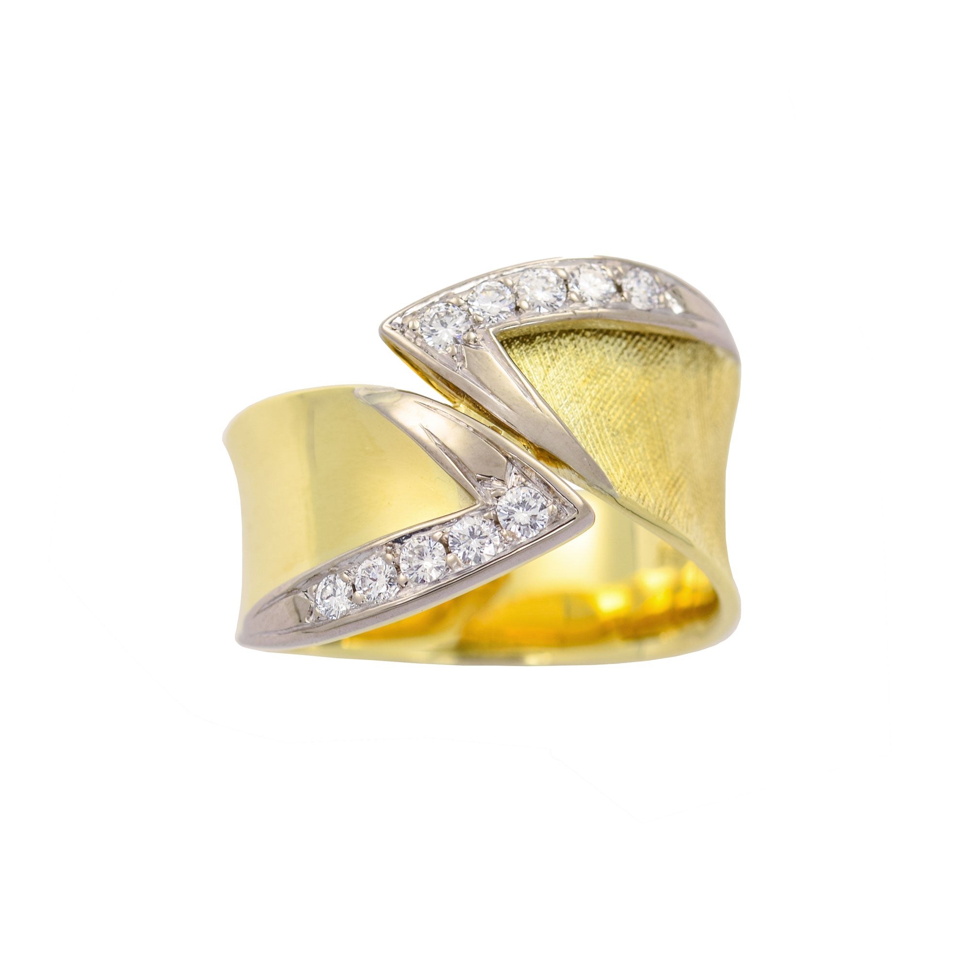 Bei dem Schmuckstück handelt es sich um einen Ring aus 585 Gelb- und Weißgold mit zehn Brillanten von zusammen ca. 0,3 ct in der Qualität Weiß mit kleinen Einschlüssen (W/si).