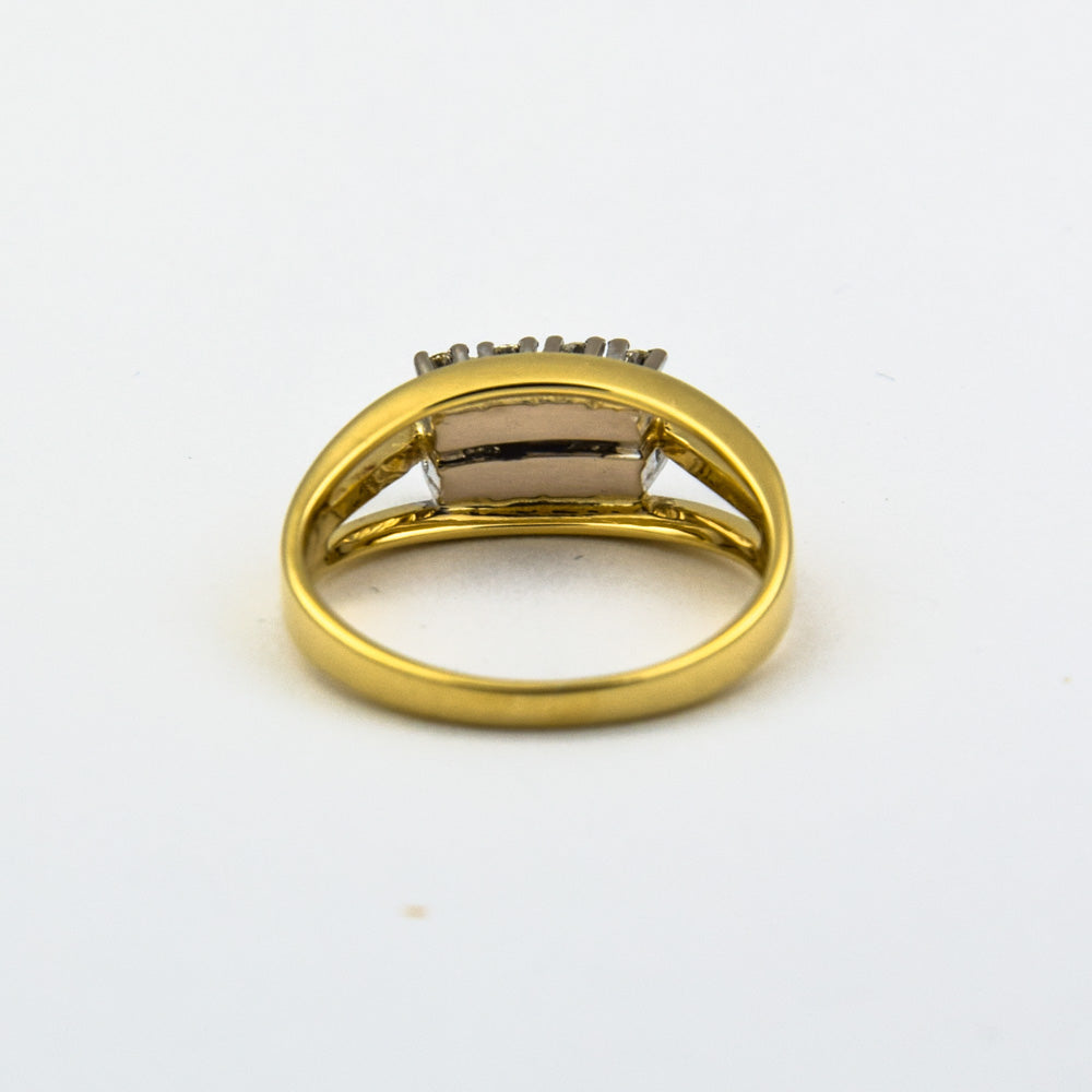 Bei dem Schmuckstück handelt es sich um einen Ring aus 585 Gelb- und Weißgold mit achat Brillanten von zusammen ca. 0,24 ct in der Qualität Weiß mit kleinen Einschlüssen (W/si).