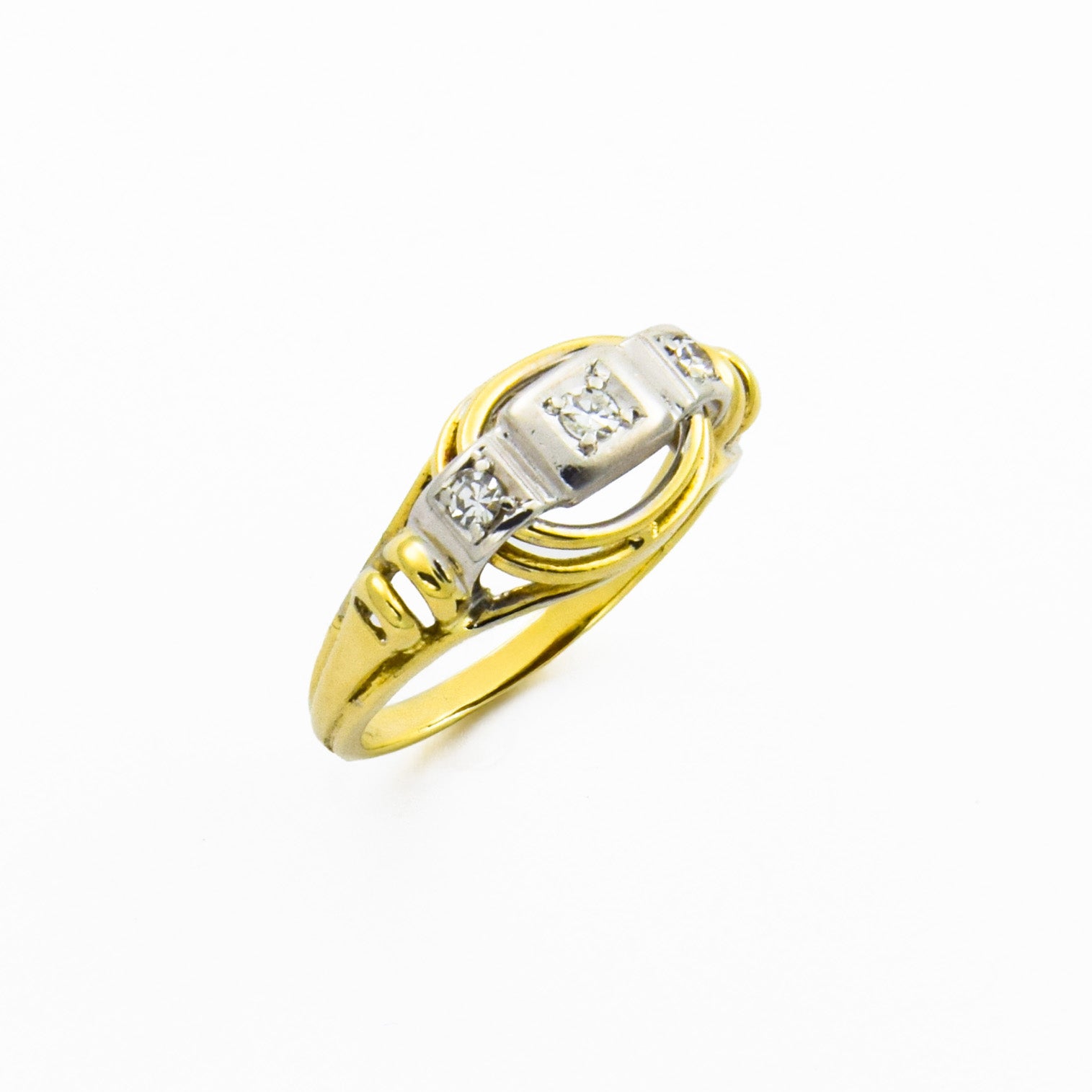 Vintage Brillantring aus Gelb- und Weißgold