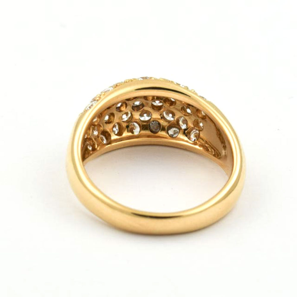 Bei dem Schmuckstück handelt es sich um einen Ring aus 750 Gelbgold mit 34 Brillanten von zusammen ca. 1,29 ct in der Qualität feines Weiß mit sehr kleinen Einschlüssen (TW/vs).