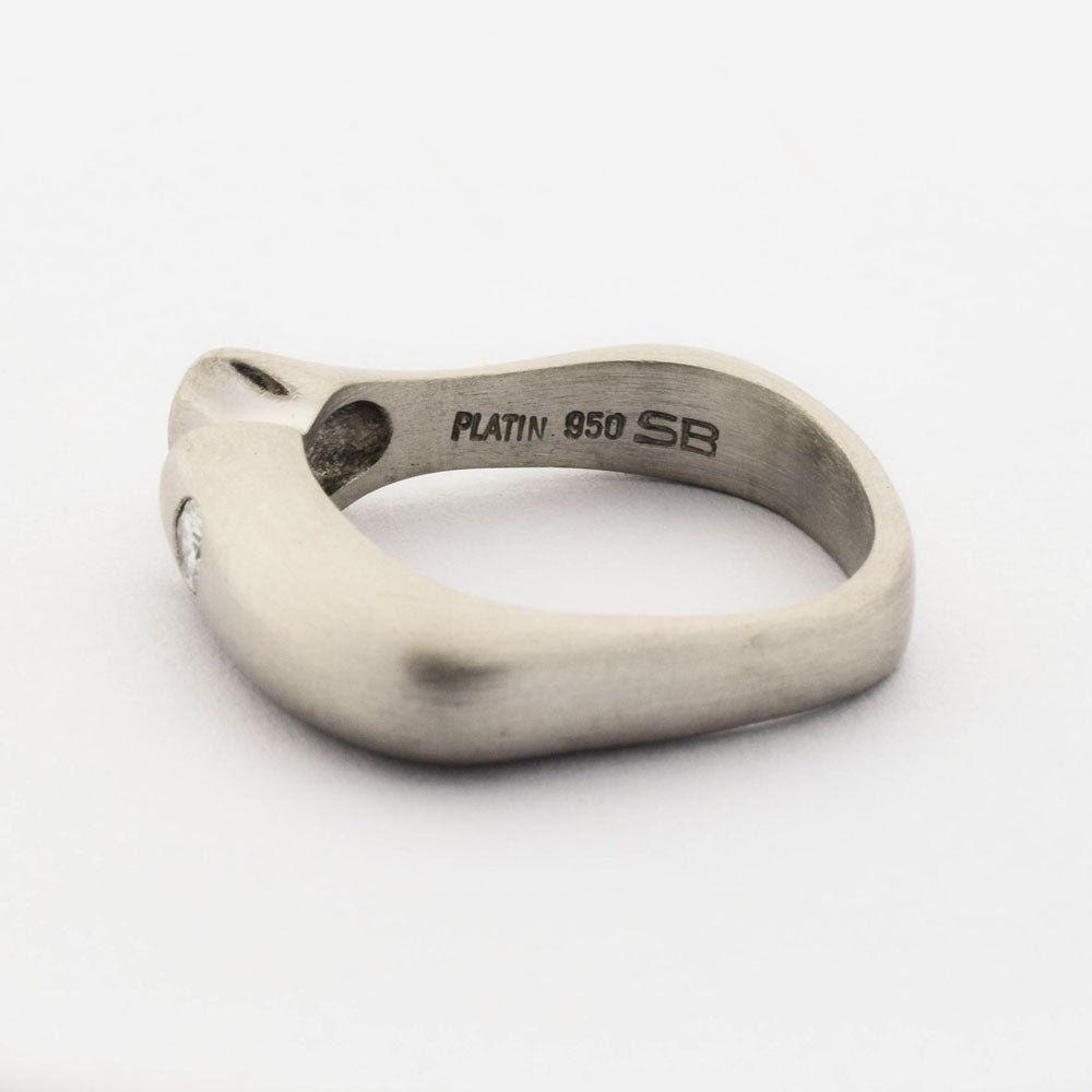 Bei dem Schmuckstück handelt es sich um einen Ring aus 950 Platin mit einem Brillanten von ca. 0,09 ct in der Qualität Weiß mit kleinen Einschlüssen (W/si).