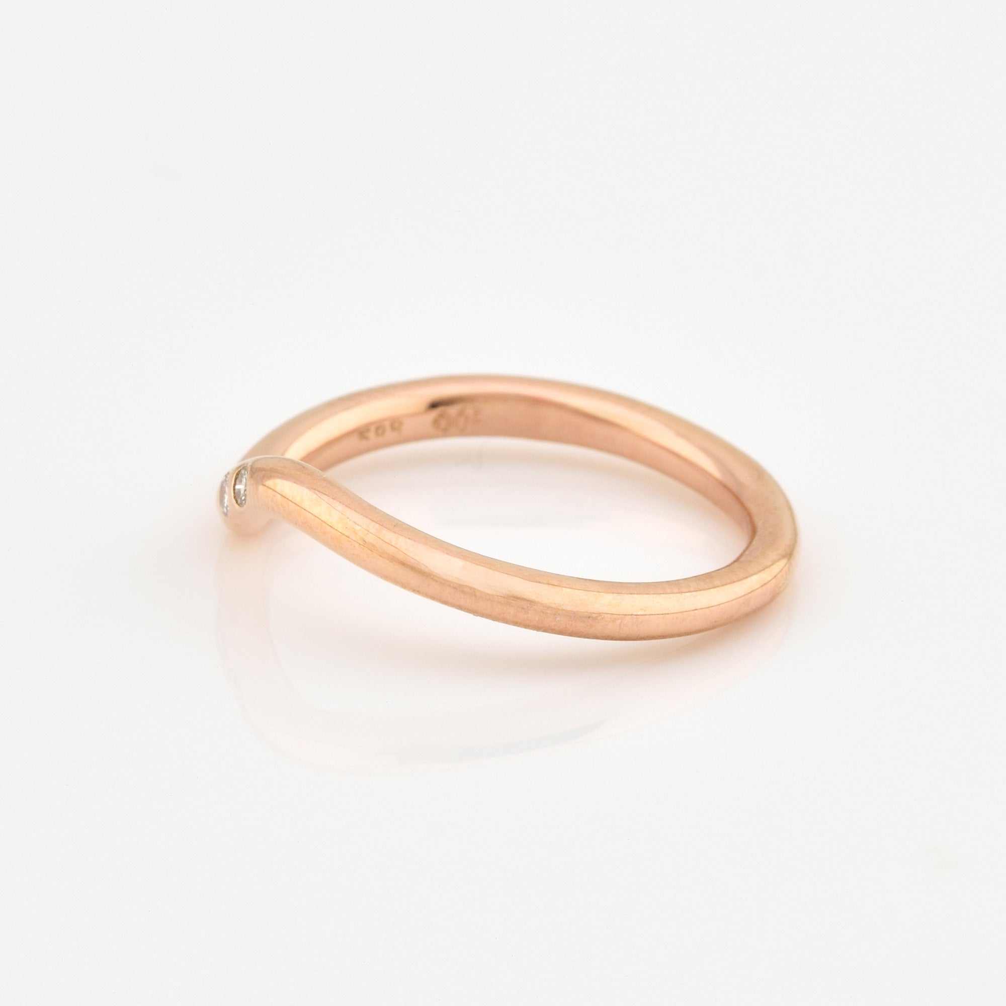 Bei dem Schmuckstück handelt es sich um einen Ring aus 585 Rotgold mit drei Brillanten von zusammen ca. 0,05 ct in der Qualität Weiß mit kleinen Einschlüssen (W/si).
