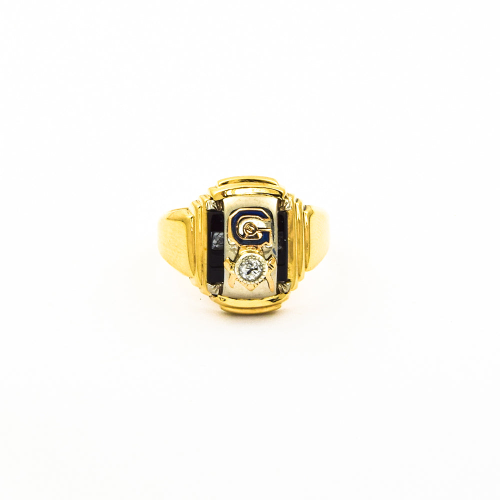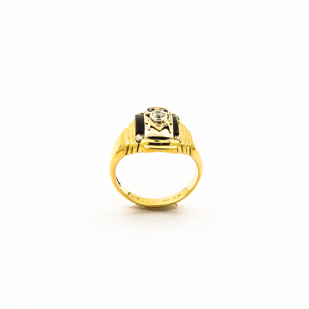 Antiker Ring Freimaurer aus Gold/Silber mit Diamant