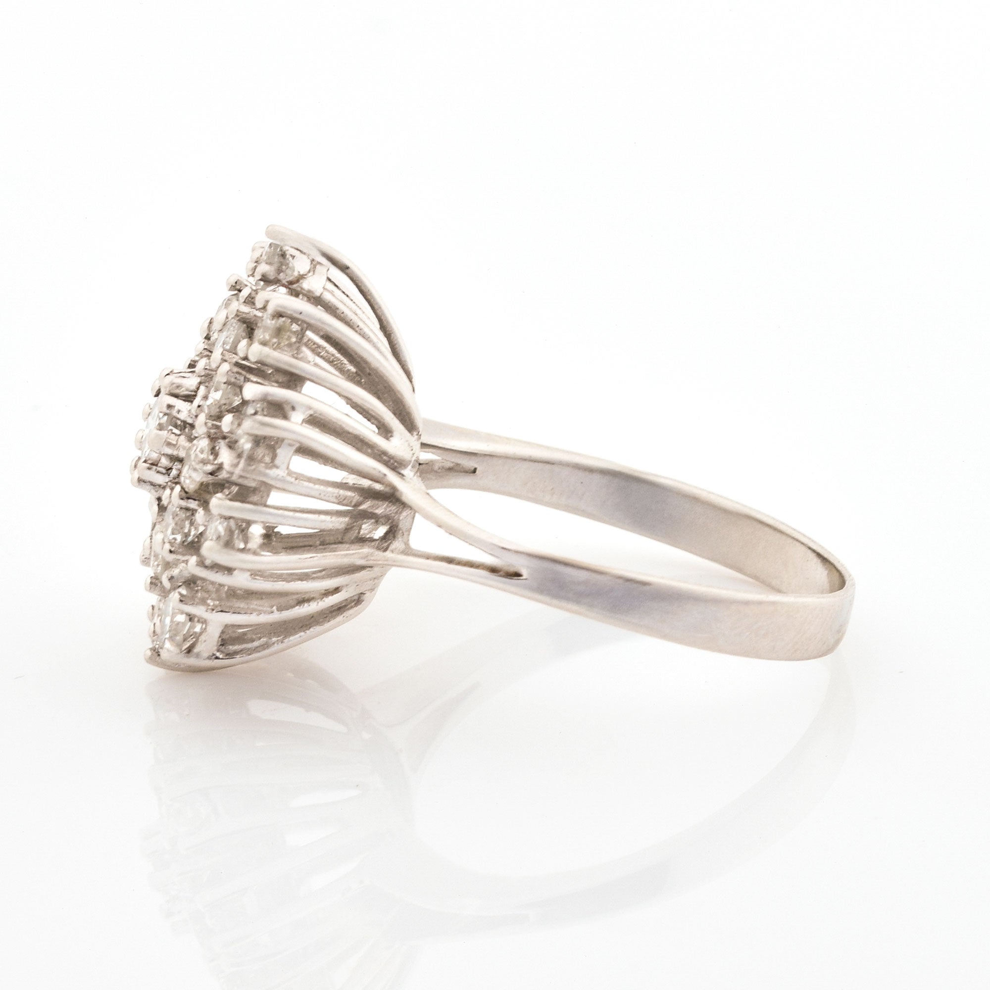 Bei dem Schmuckstück handelt es sich um einen Ring "Schneeflocke" aus 585 Weißgold mit 21 Brillanten von zusammen ca. 1,26 ct in der Qualität Weiß und piqué 1 (W/p 1).