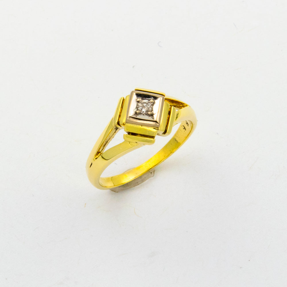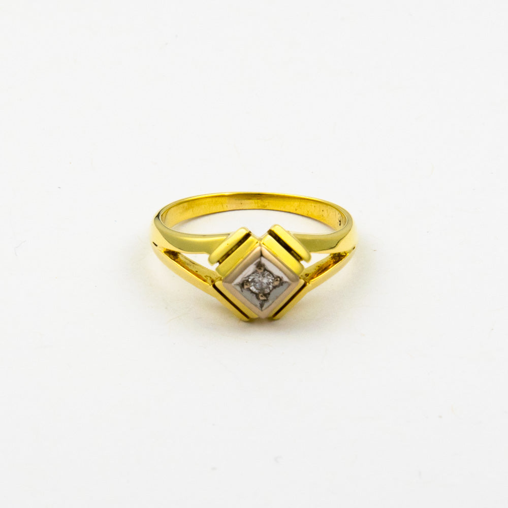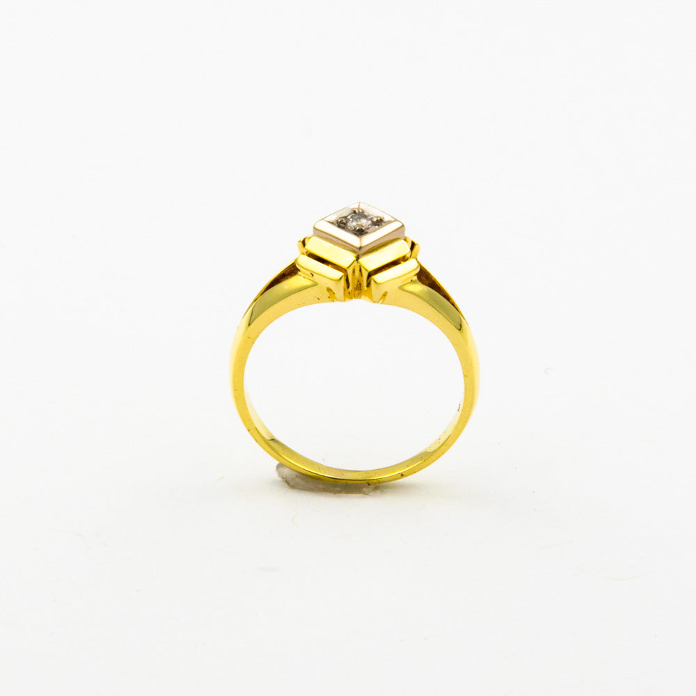 Bei dem Schmuckstück handelt es sich um einen Ring aus 585 Gelb- und Weißgold mit einem Brillanten von ca. 0,04 ct in der Qualität Weiß mit kleinen Einschlüssen (W/si).