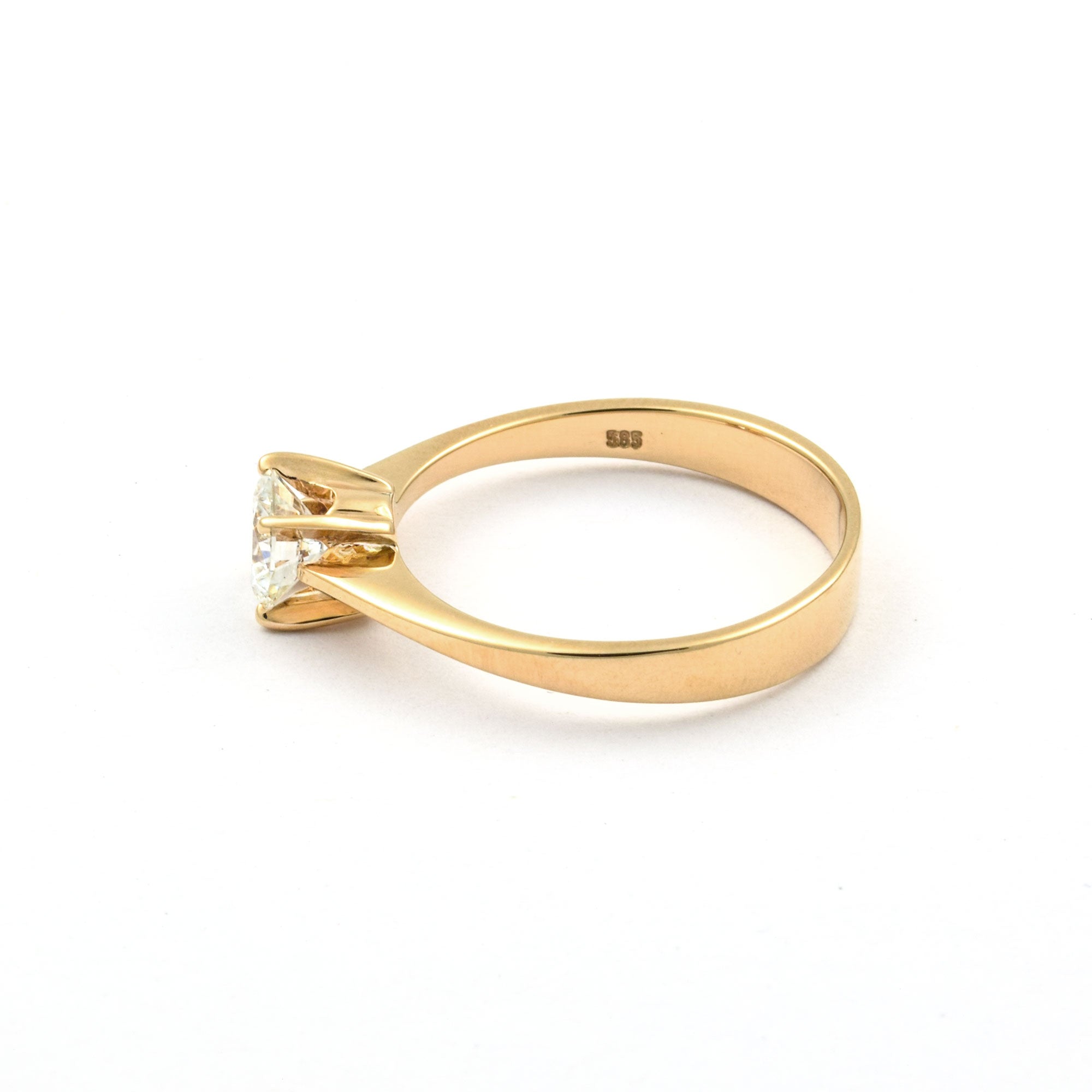 Bei dem Schmuckstück handelt es sich um einen Ring aus 585 Gelbgold mit einem Brillanten von ca. 0,52 ct in der Qualität Weiß mit sehr kleinen Einschlüssen (W/vs)