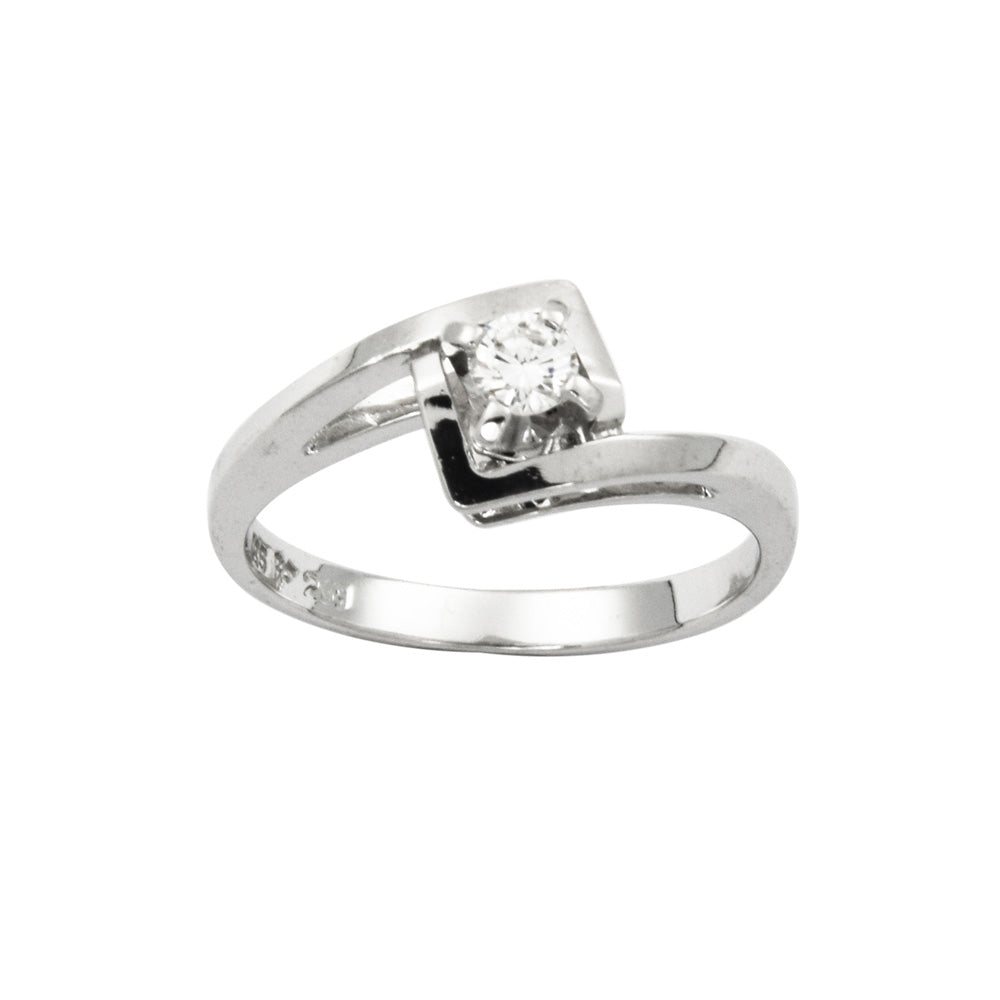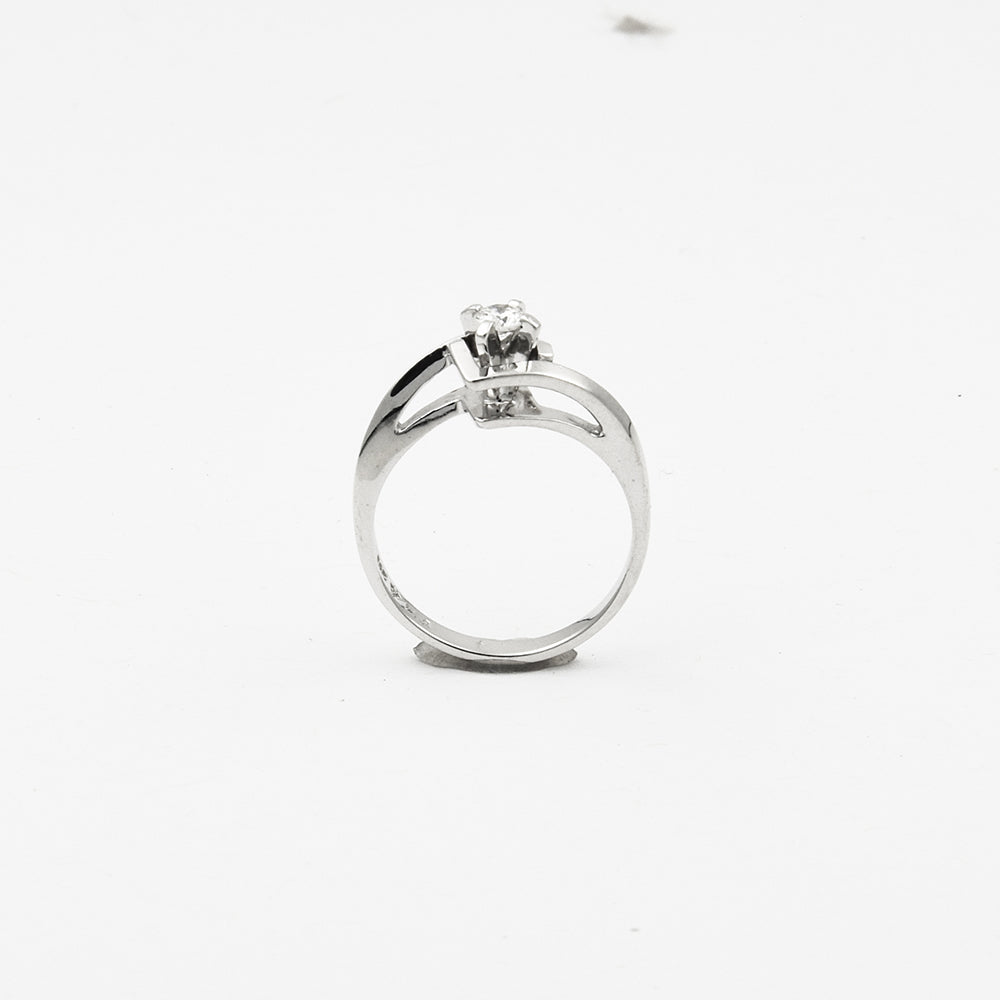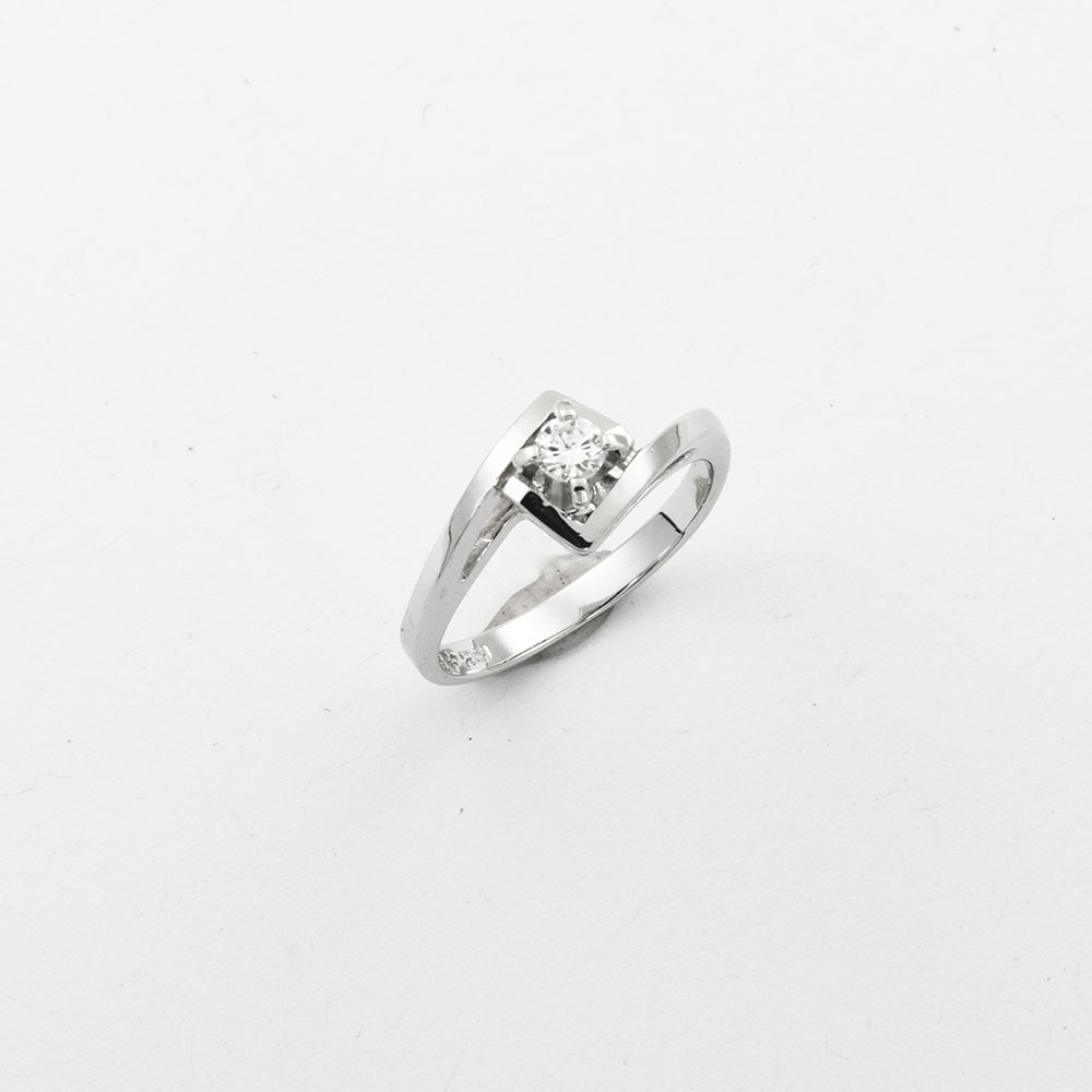 Bei dem Schmuckstück handelt es sich um einen Solitärring aus 585 Weißgold mit einem Brillanten von ca. 0,17 ct in der Qualität feines Weiß mit sehr kleinen Einschlüssen (TW/vs).
