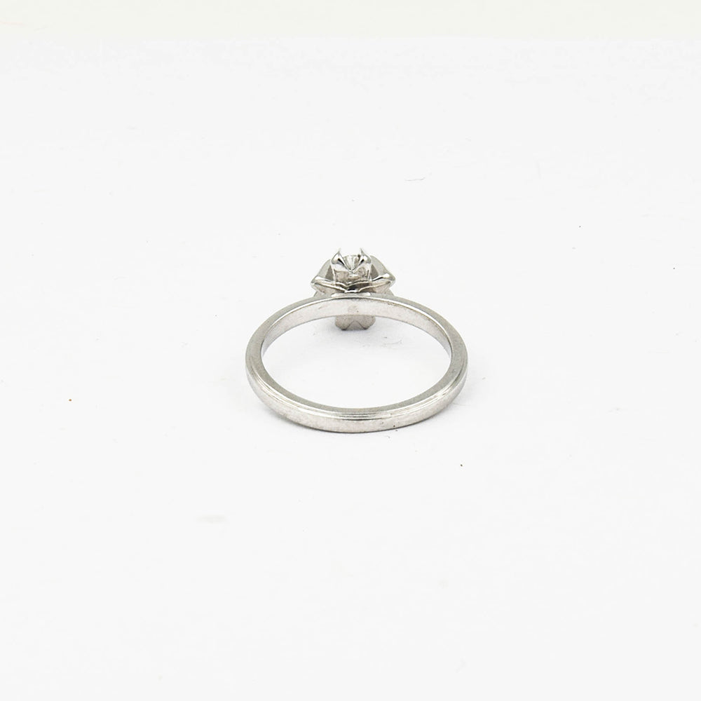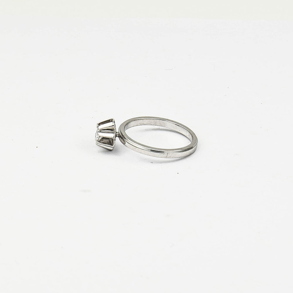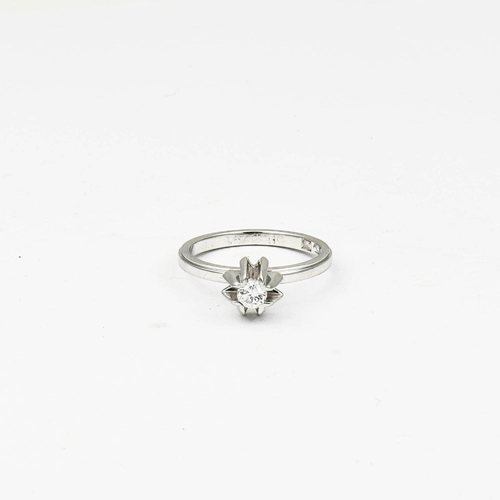 Bei dem Schmuckstück handelt es sich um einen Solitärring aus 585 Weißgold mit einem Brillanten von ca. 0,15 ct in der Qualität feines Weiß und piqué 1 (TW/p 1).