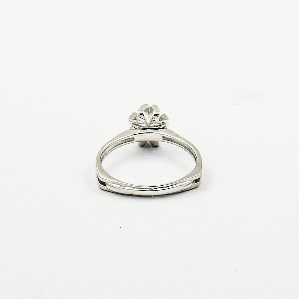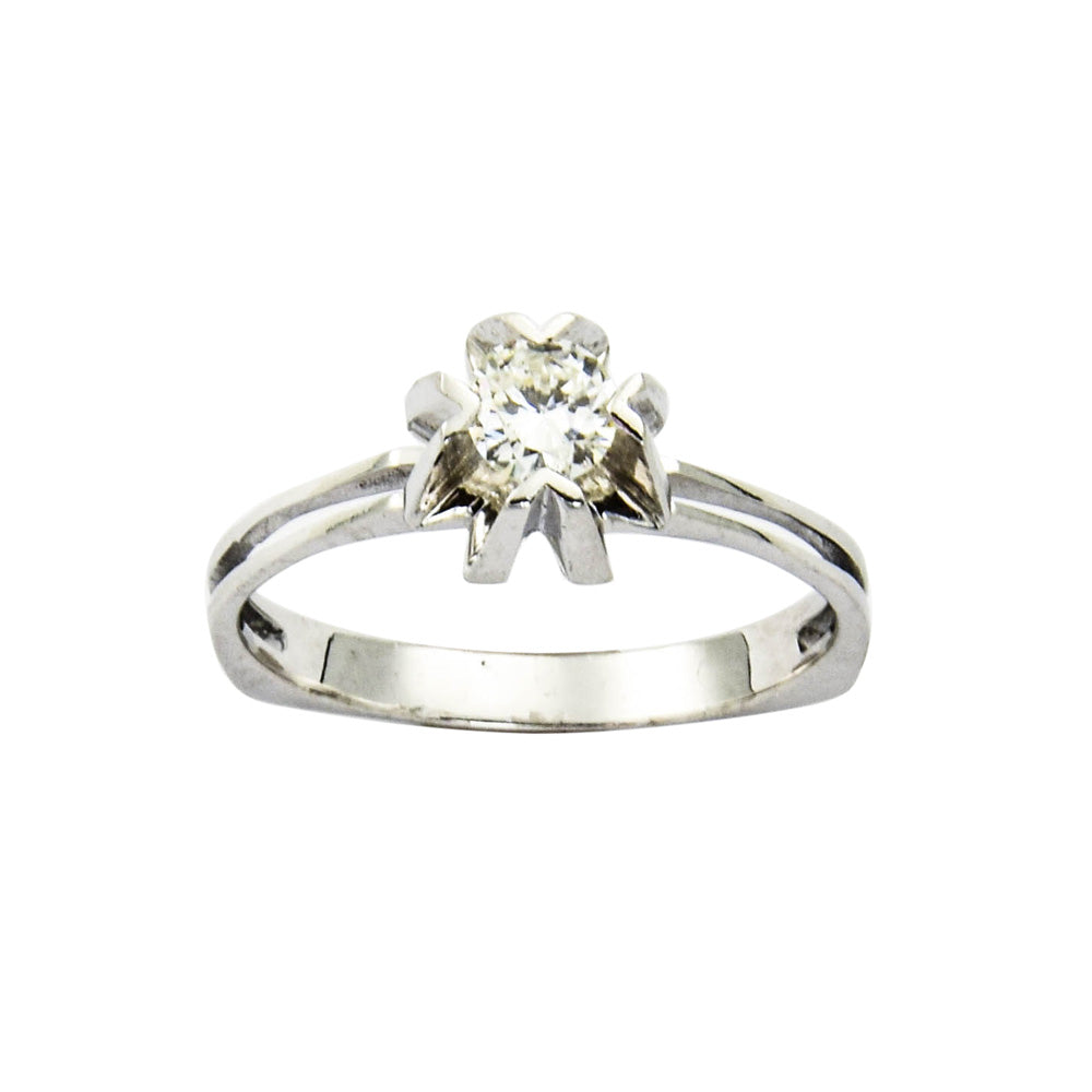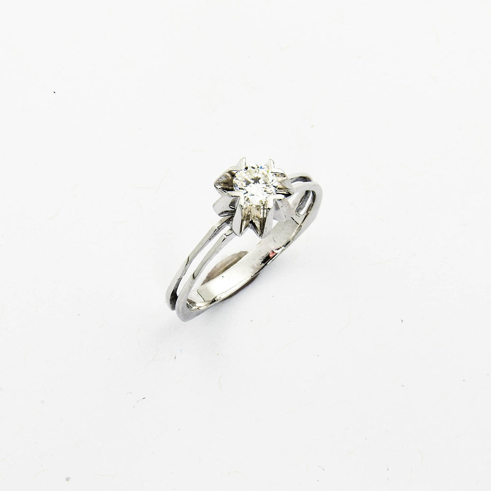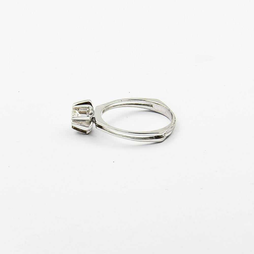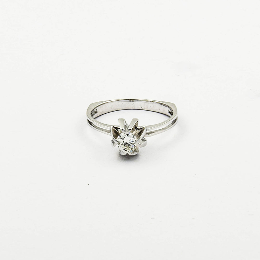 Bei dem Schmuckstück handelt es sich um einen Solitärring aus 585 Weißgold mit einem Brillanten von ca. 0,38 ct in der Qualität Weiß mit sehr kleinen Einschlüssen (W/vs).
